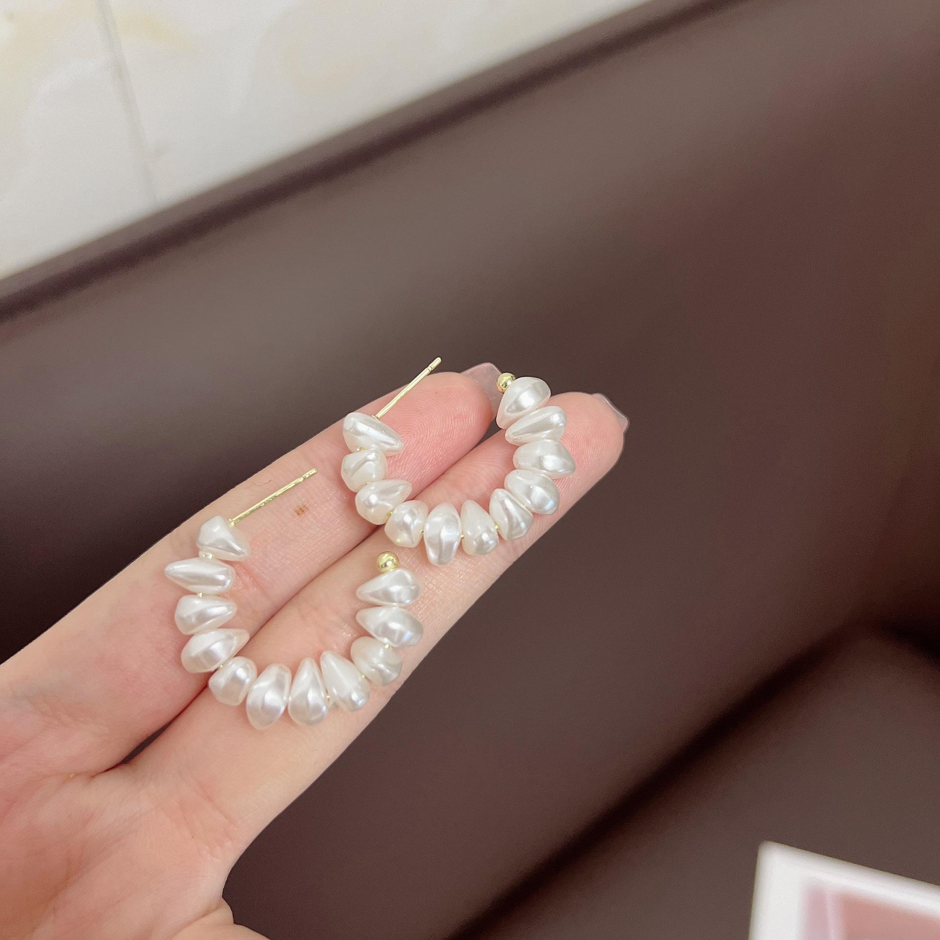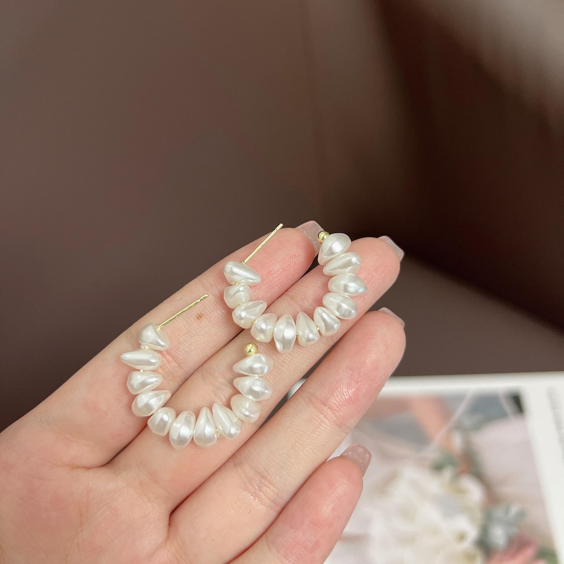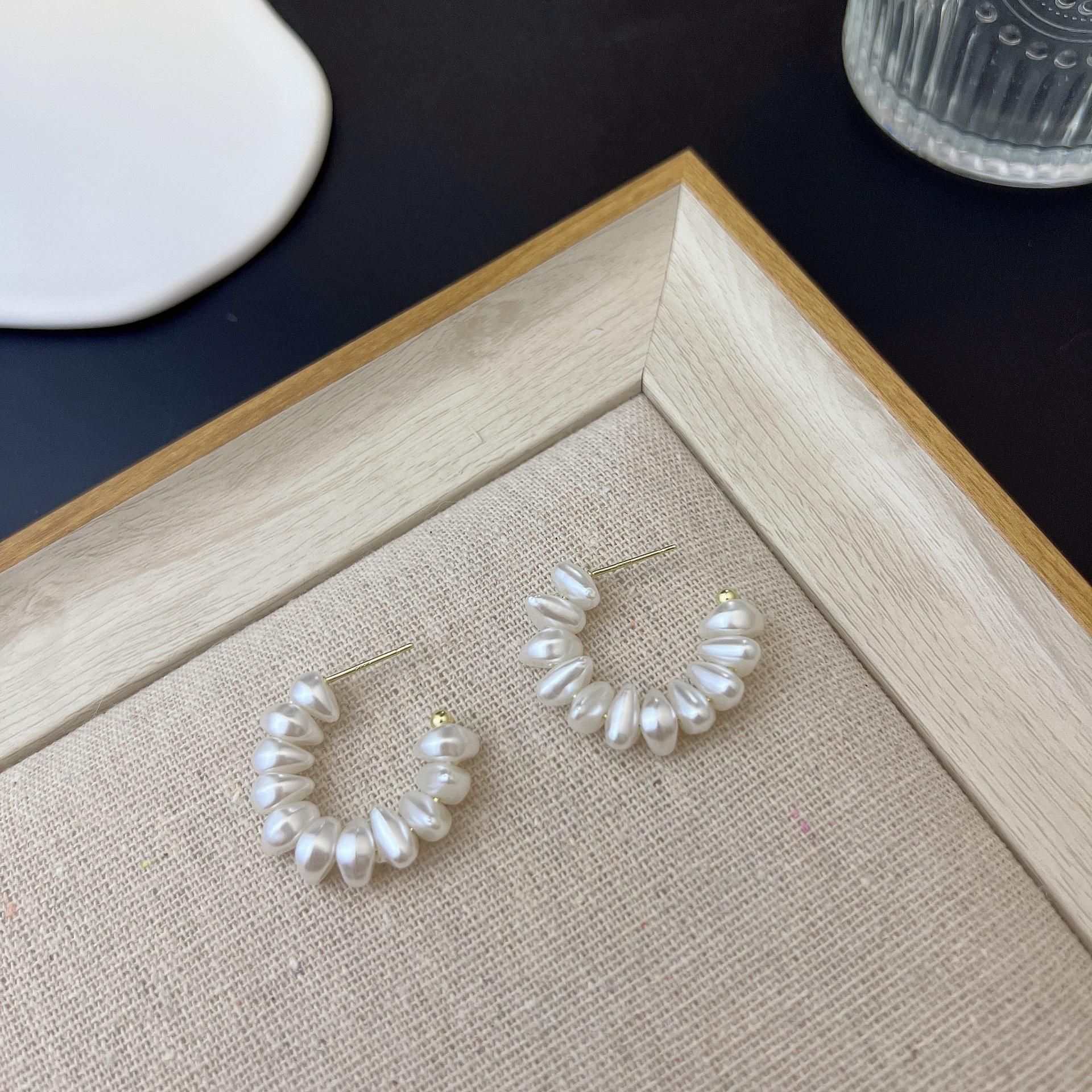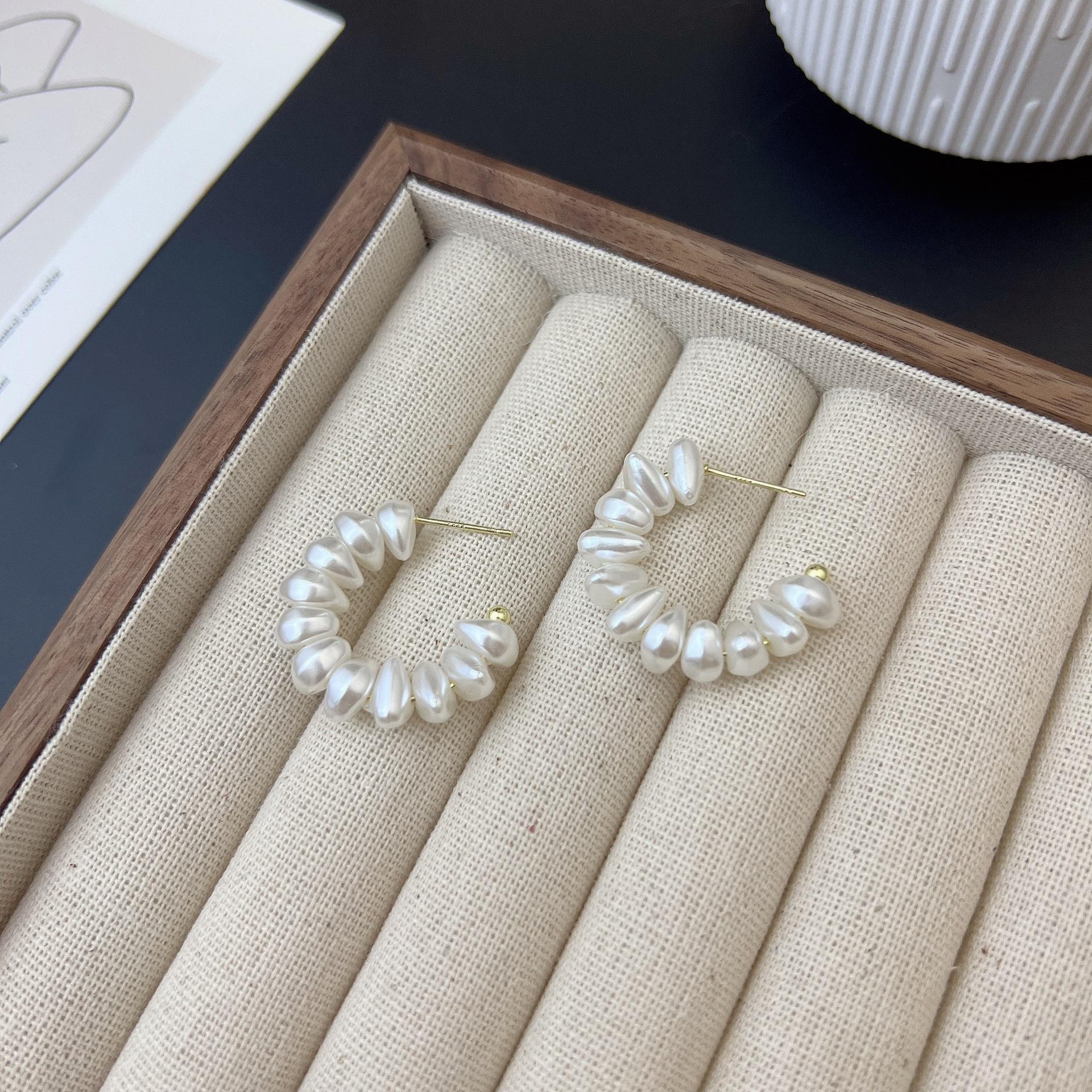 Aretes de Aro S925 Aguja de Plata 2024 Nueva Marea Aretes en Forma de C Aretes de Perlas Diseño Nicho para Mujer Estilo Frío de Alta Gama