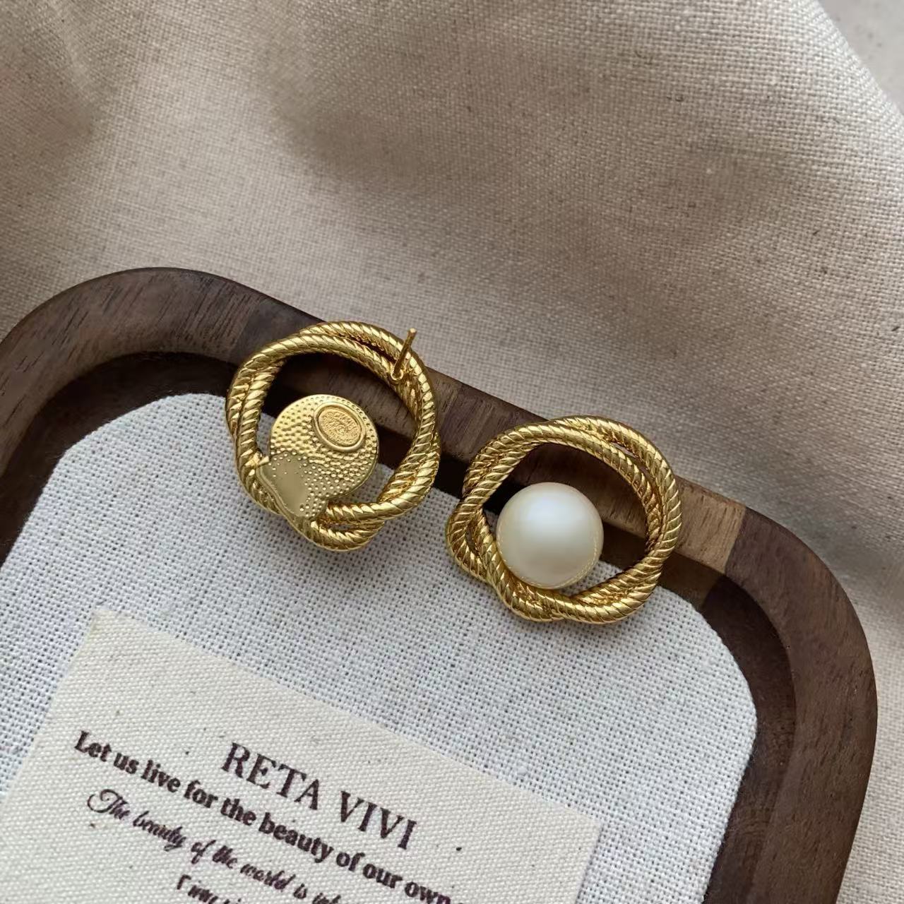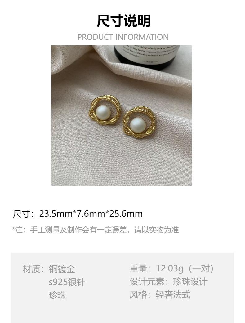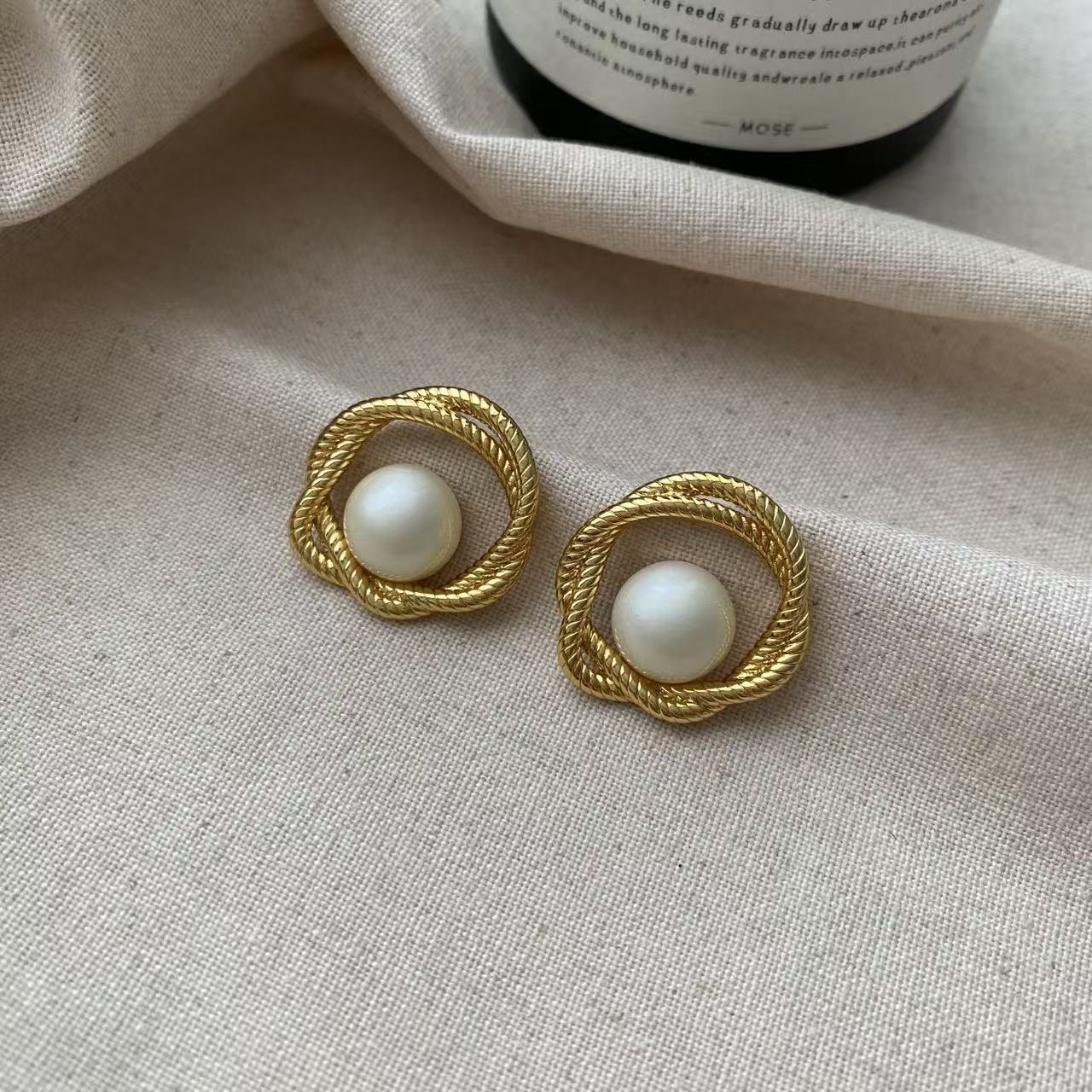 Aretes de Tuerca de Perla Envueltos en Metal Torcido Temperamental Retro Francés Elegante Creativo Versátil Único Aretes de Moda
