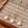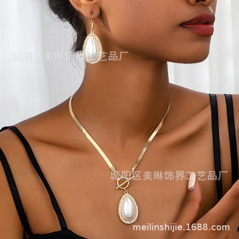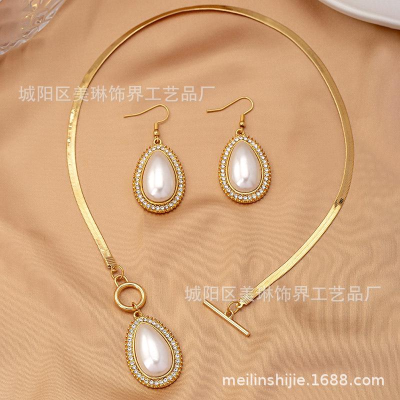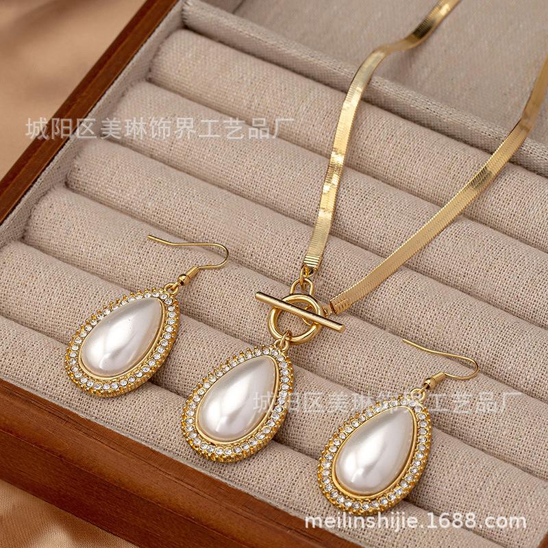Traje de Pendientes y Collar con Colgante de Perla y Diamante en Forma de Gota de Moda de Tres Piezas para Mujer, Varios Banquetes, Combinación con Todo, Regalo