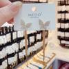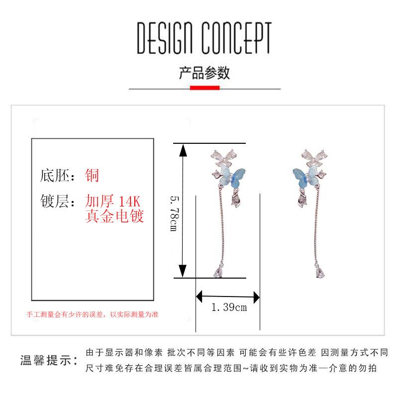 Blue butterfly long tassel earrings (thick real gold plating)