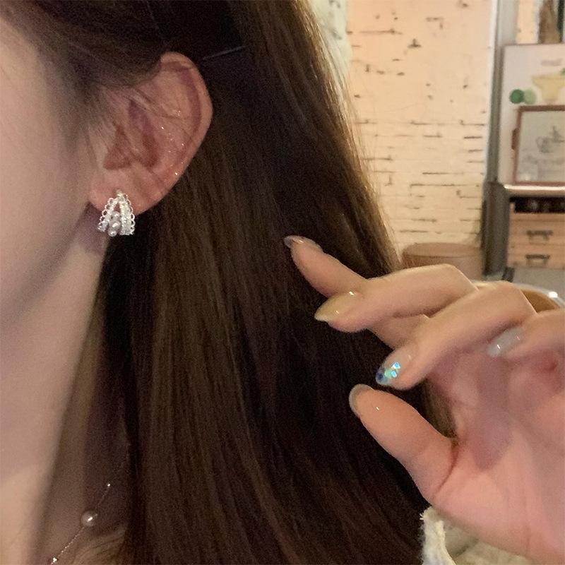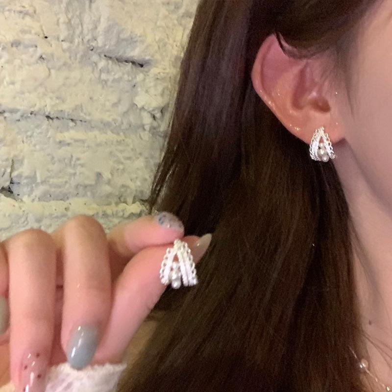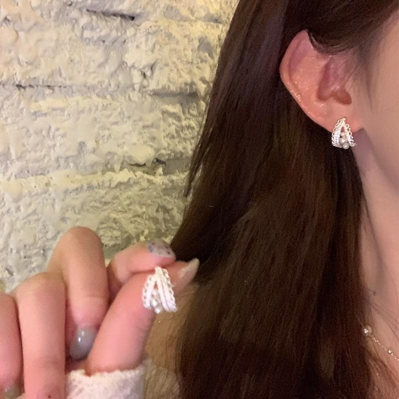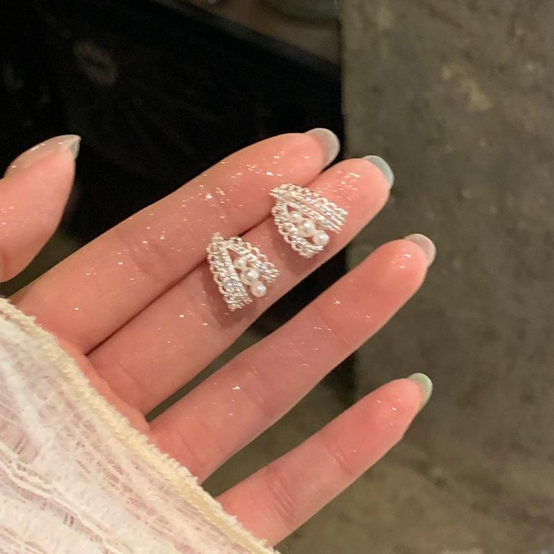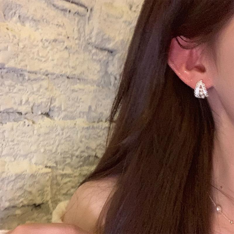 Aretes Triangulares Geométricos de Diamantes Incrustados Aguja de Plata Nicho Francés Dulces Exquisitos Aretes de Botón Personalidad Moda Aretes Versátiles