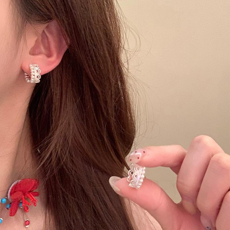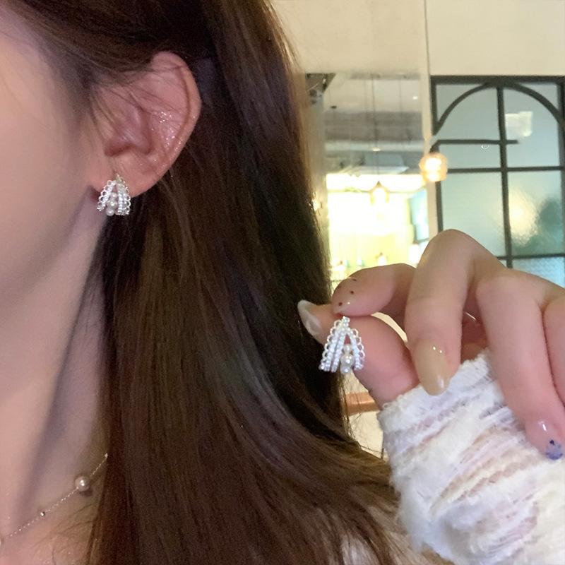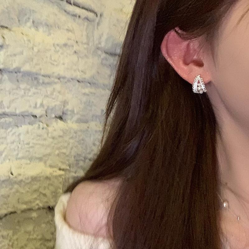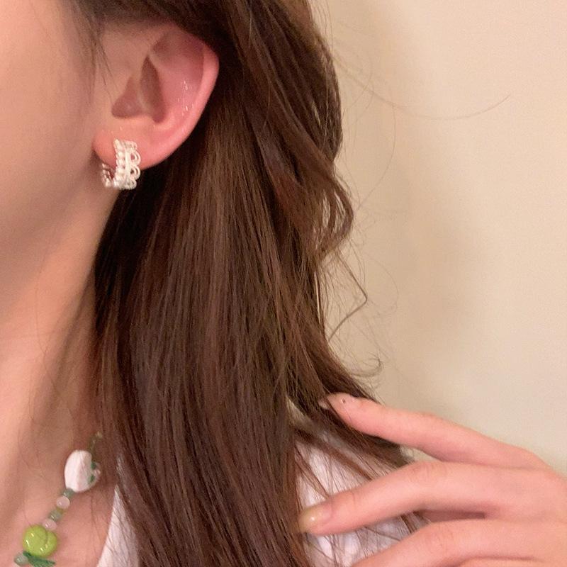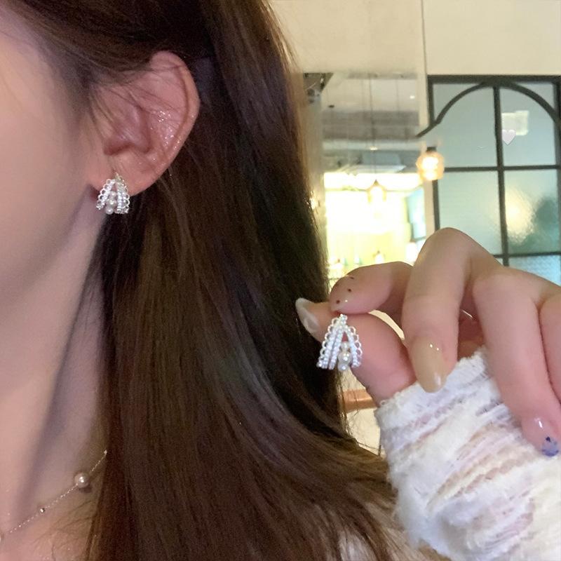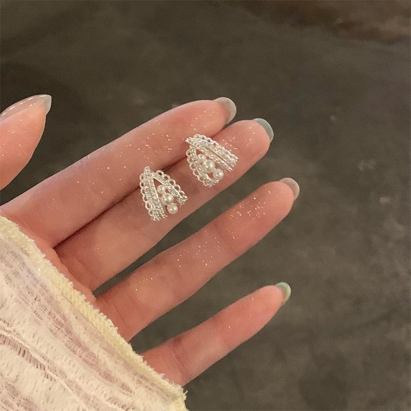 Aretes Triangulares Geométricos de Diamantes Incrustados Aguja de Plata Nicho Francés Dulces Exquisitos Aretes de Botón Personalidad Moda Aretes Versátiles