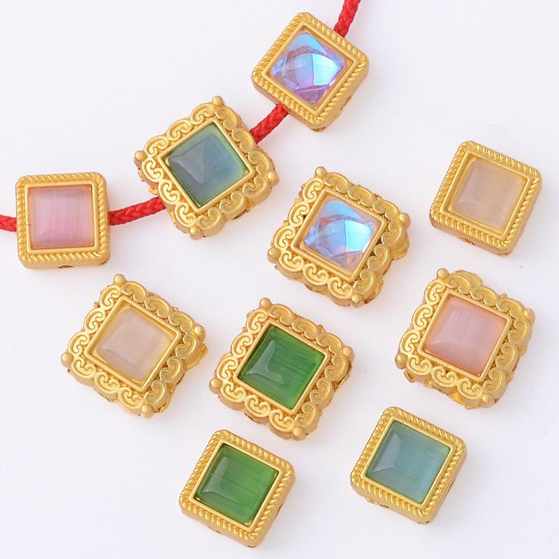 Pulsera de Cuerda Roja Tejida Estilo Chino Materiales DIY Método Antiguo Pulsera Sub-Oro Cuentas Espaciadoras Cuadradas Accesorios de Aleación con Conservación de Color Venta Directa