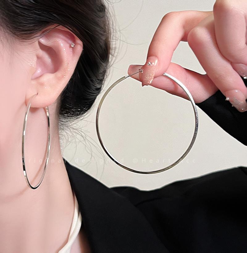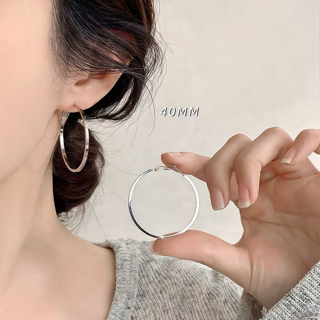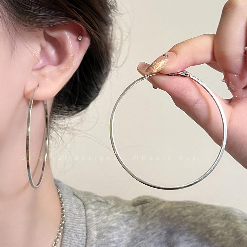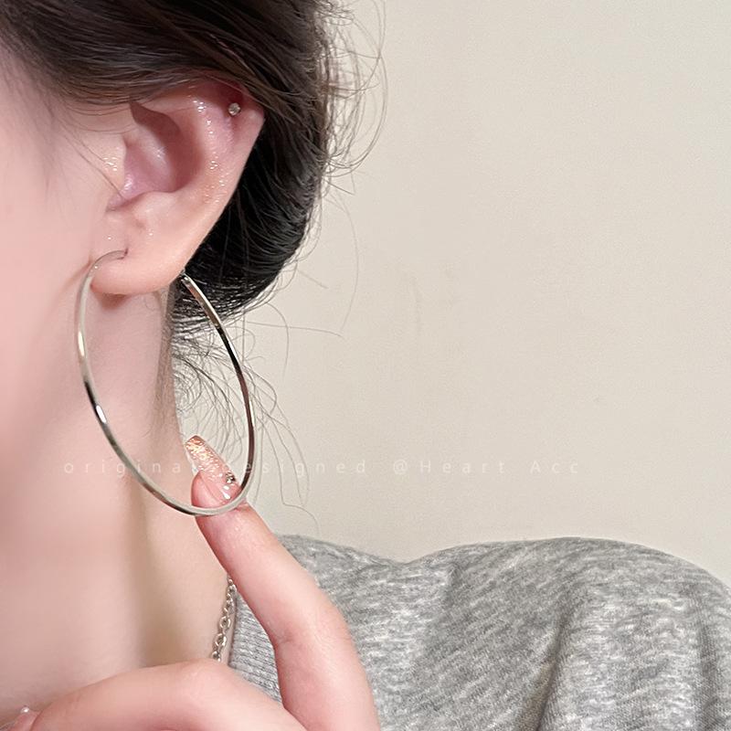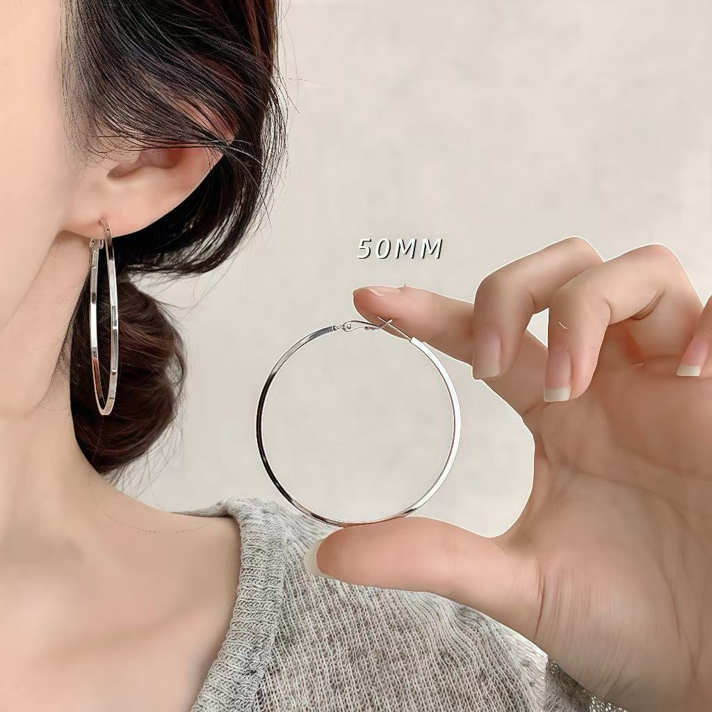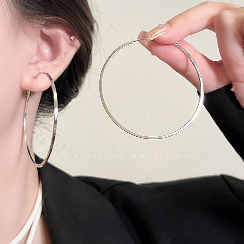 Aretes de Círculo Cuadrado Brillante 2025 Estilo Caliente Lujo Ligero de Alta Gama Círculo Liso Moda Versátil para Mujer Aretes de Aro Grandes para Mujer