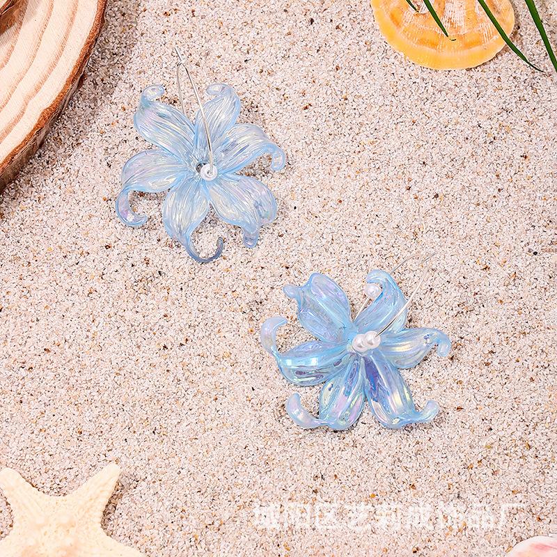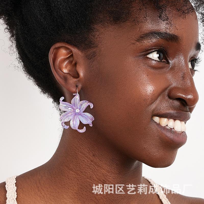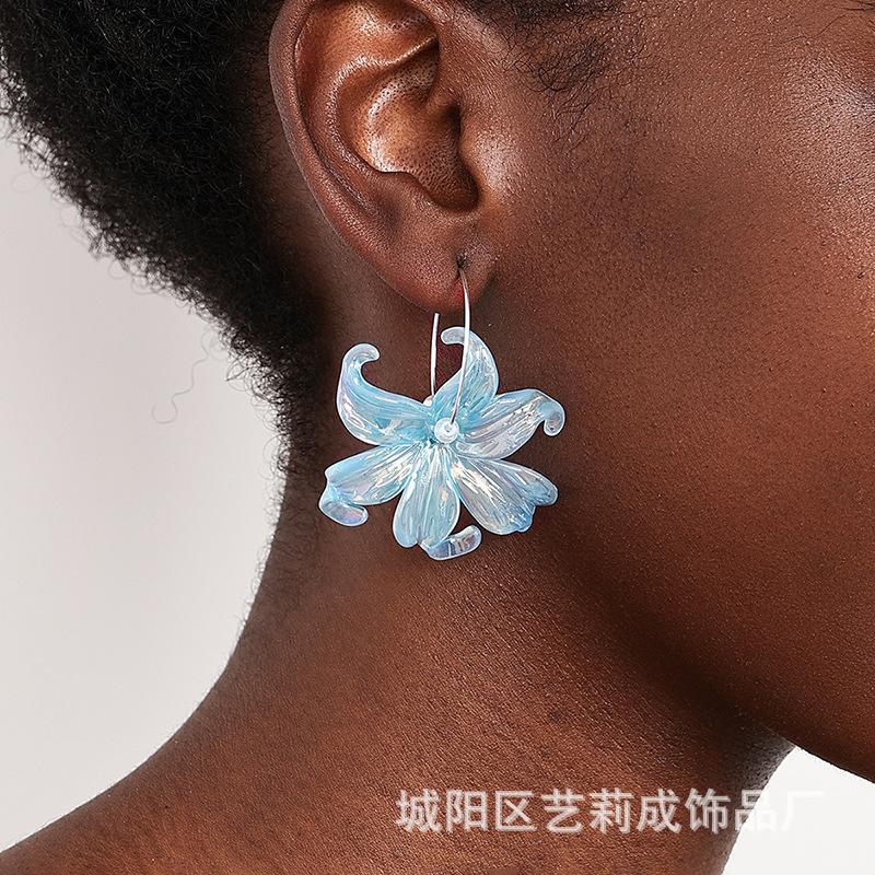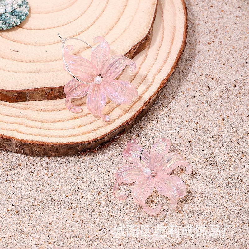 Aretes de flores acrílicas transparentes de moda de personalidad simple transfronteriza para mujer, aretes de personalidad europeos y americanos, dulces, lindos y modernos