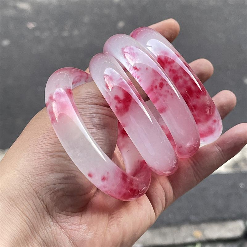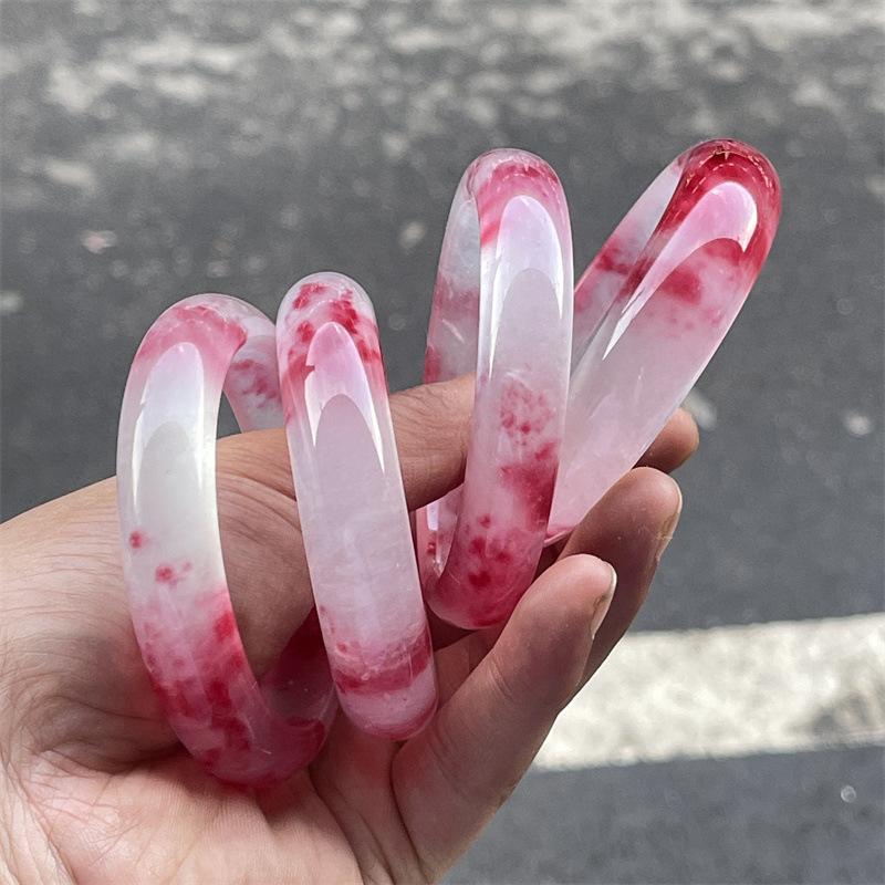 【Nombre del Bebé】Pulsera de Cuarcita Rojo Melocotón con Inclusiones