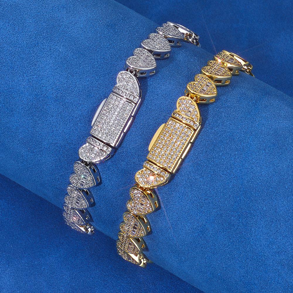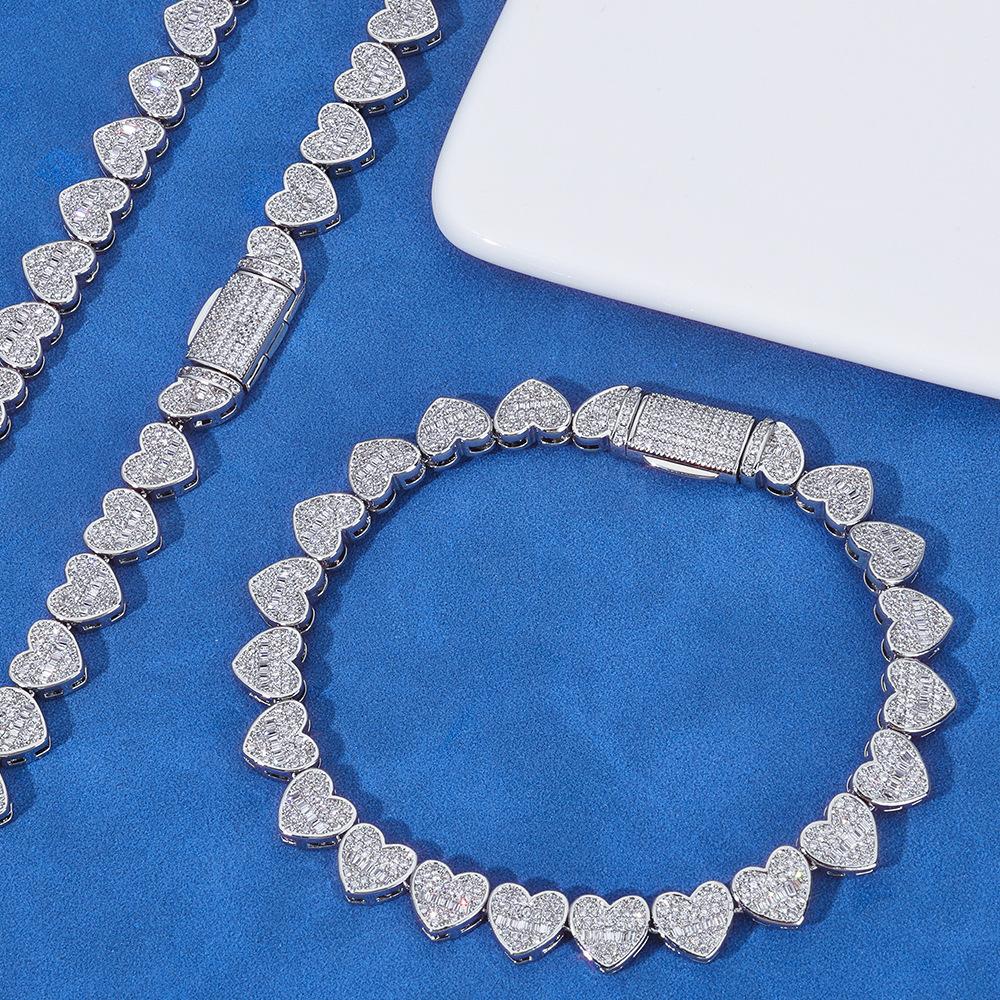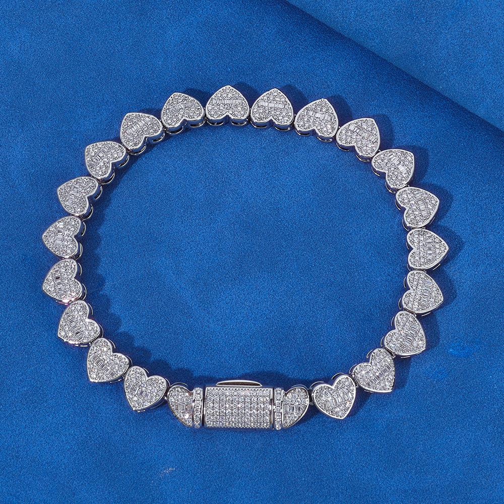 Pulsera Europea y Americana de Hip-Hop de 8 mm con Hebilla de Giro, Cadena de Corazón, Transfronteriza, Moderna, de Alta Gama, para Hombre, Accesorios de Joyería de Circonita, Personalización