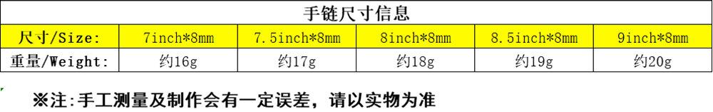Bracelet 7inch (length 17.78cm), Bracelet 8inch (length 20.32cm), Bracelet 9inch (length 22.86cm)
