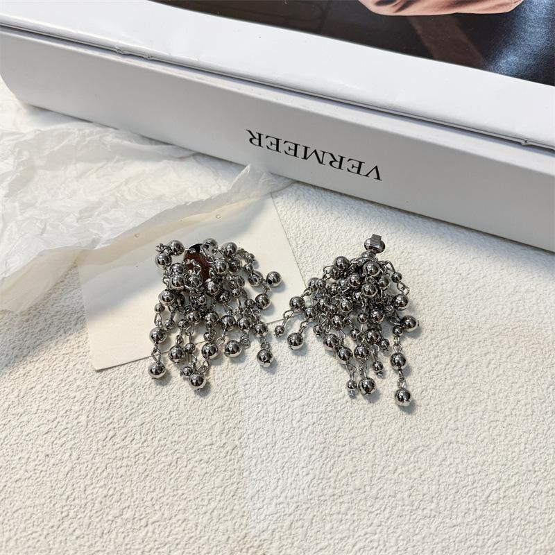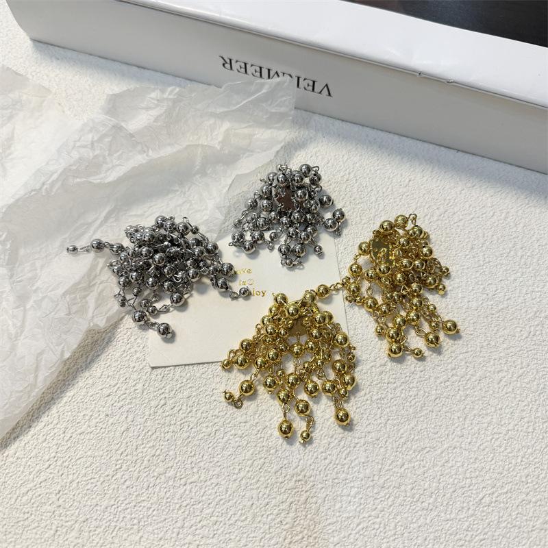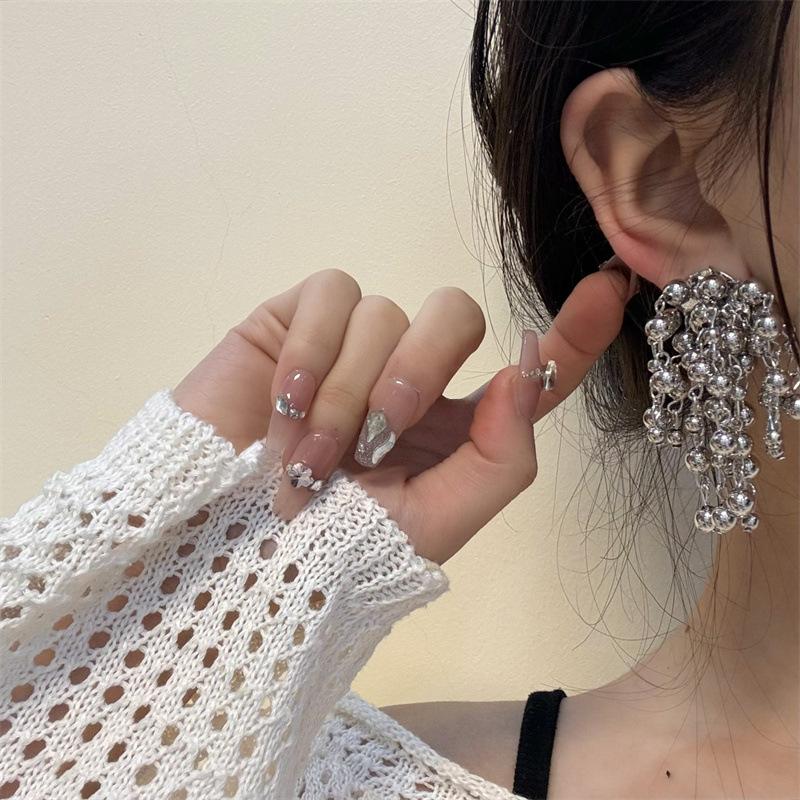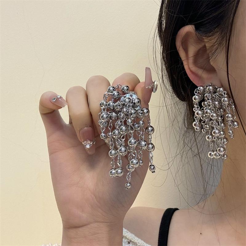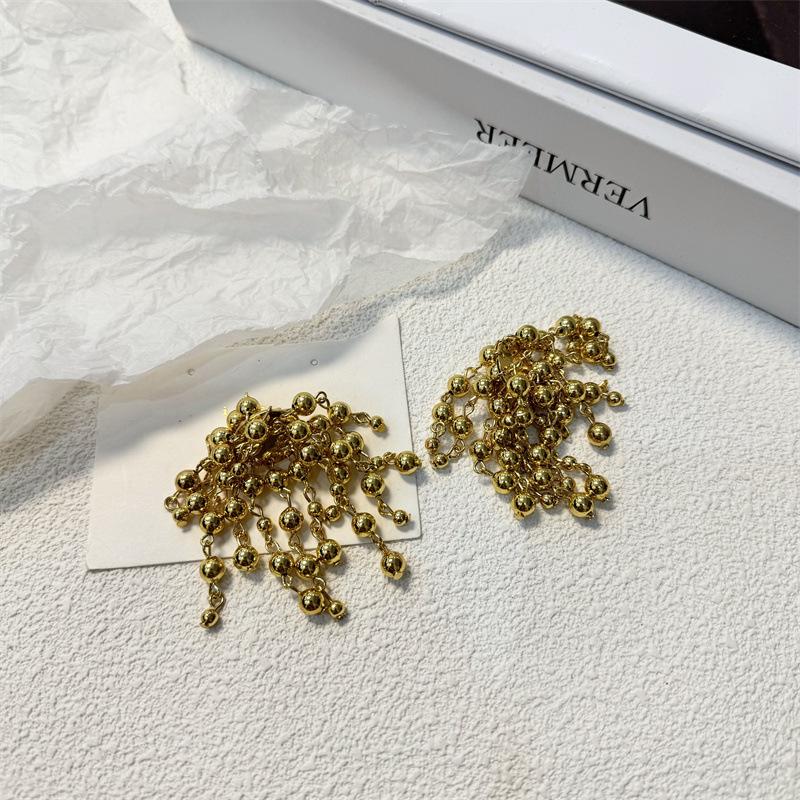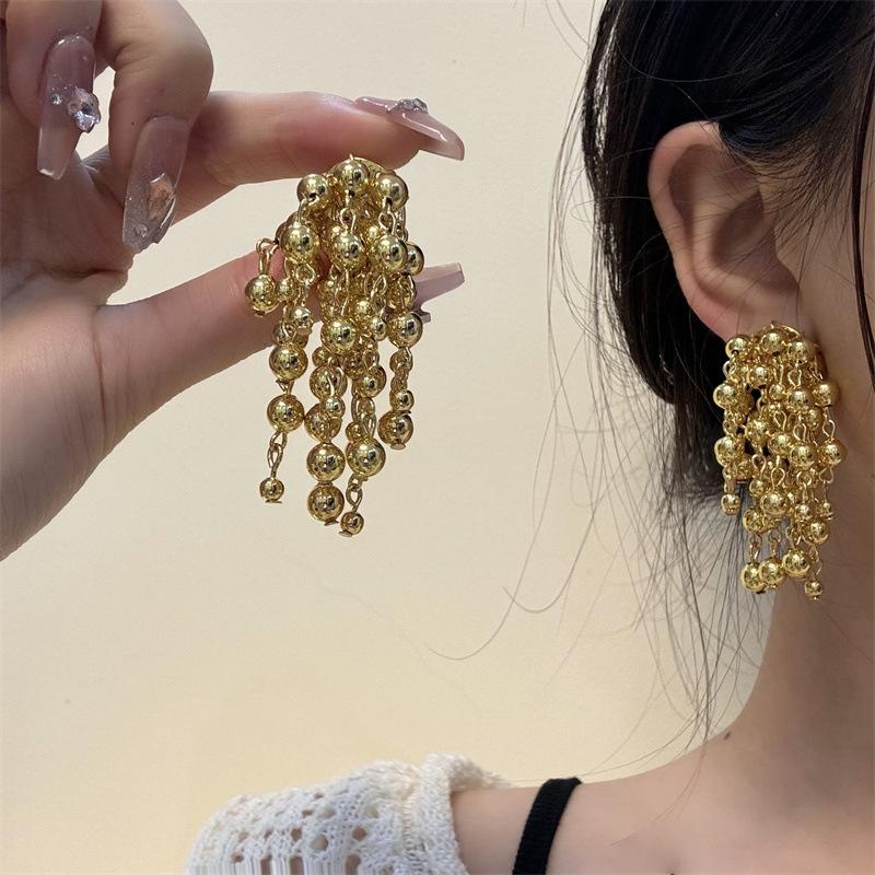 Aretes de clip europeos y americanos retro de metal con borla de cuentas, personalidad, temperamento para mujer