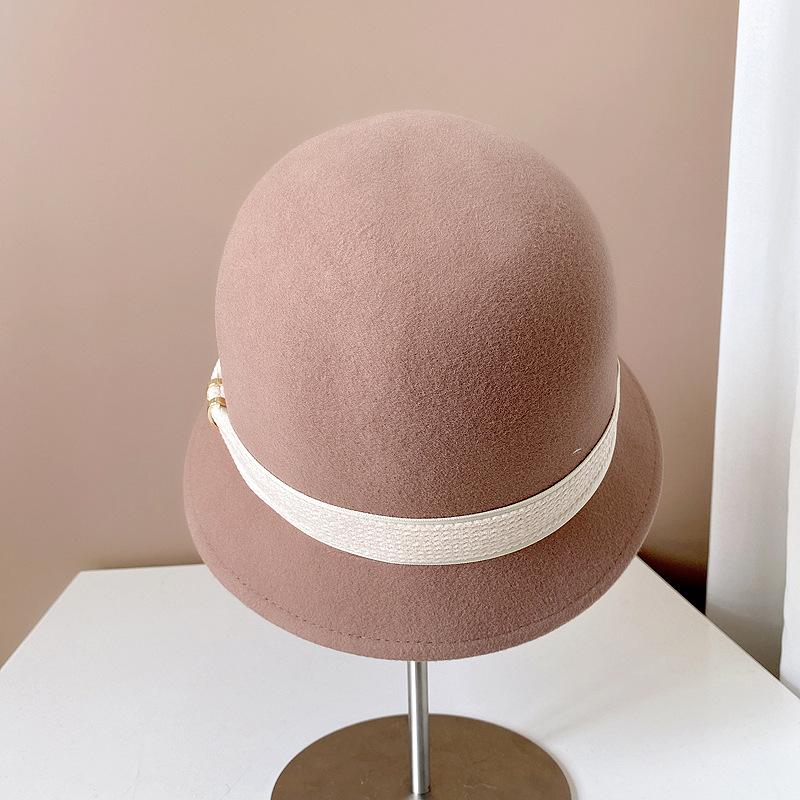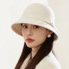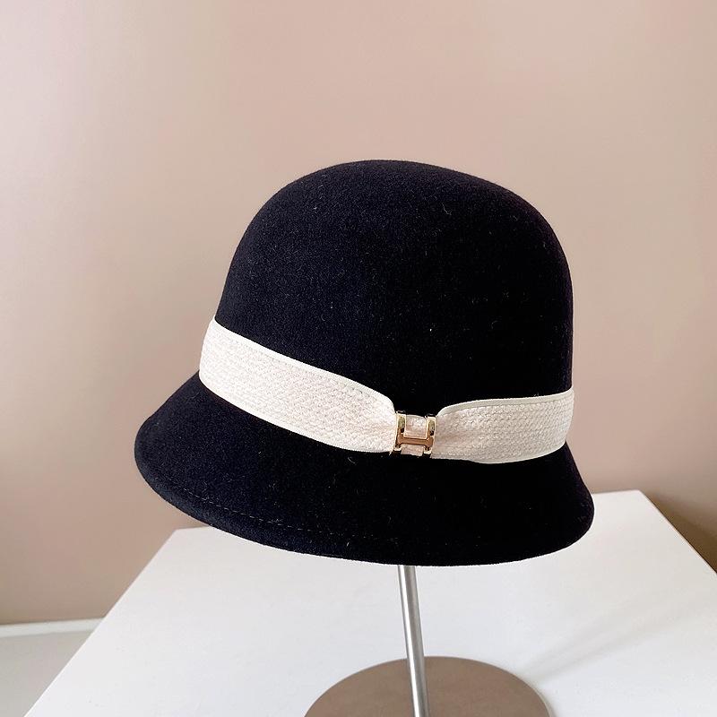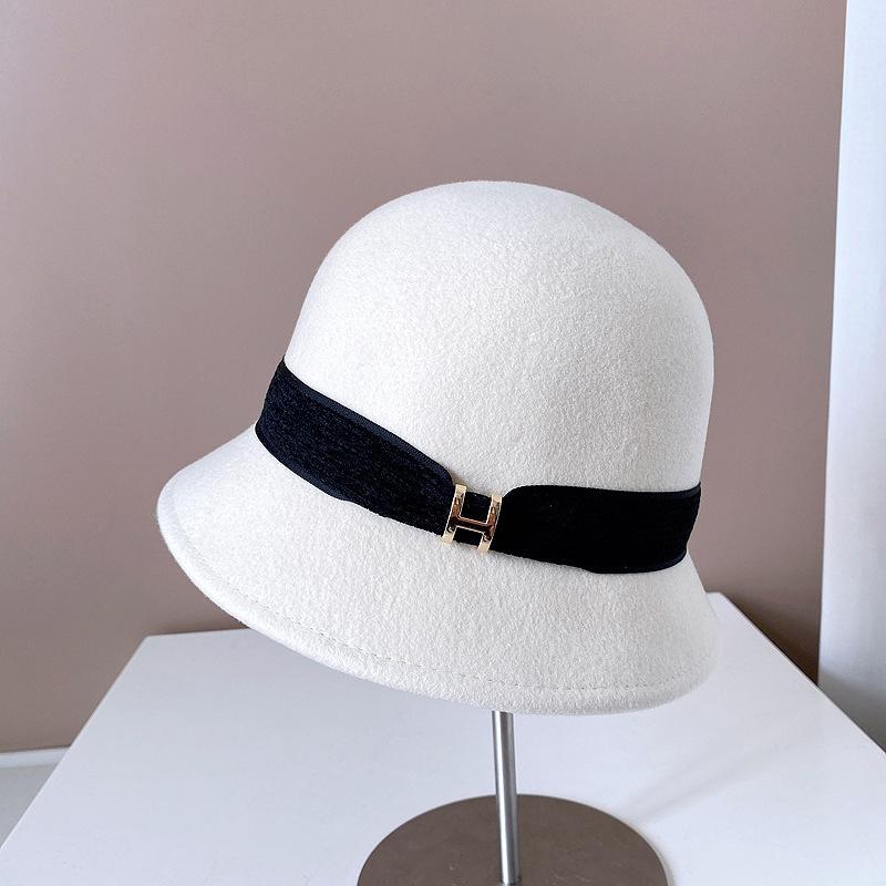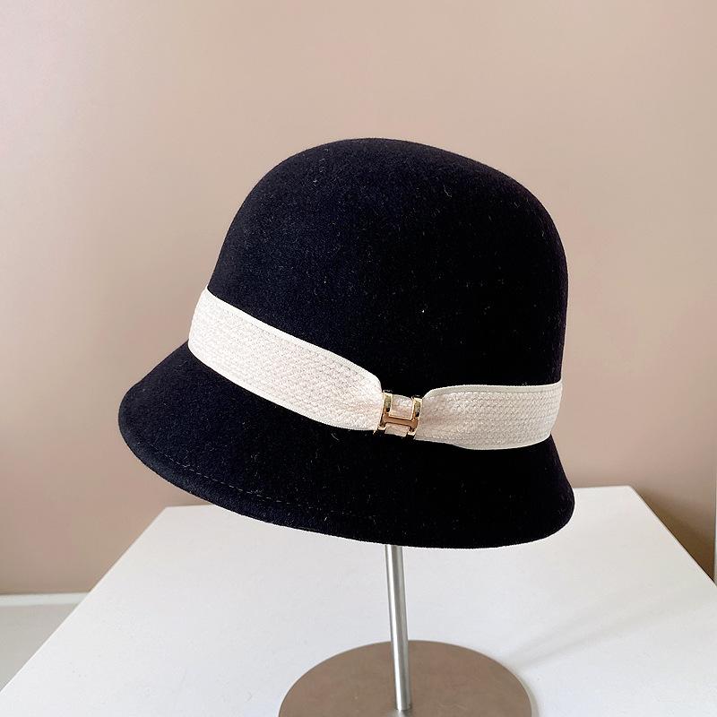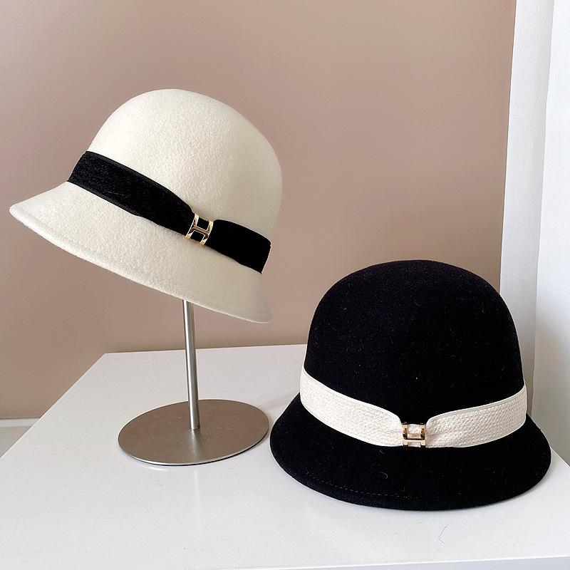 Moda japonesa Sombrero de pescador de lana con cinta y hebilla H para mujer invierno ala pequeña versátil moda sombrero de cubo elegante sombrero de fieltro
