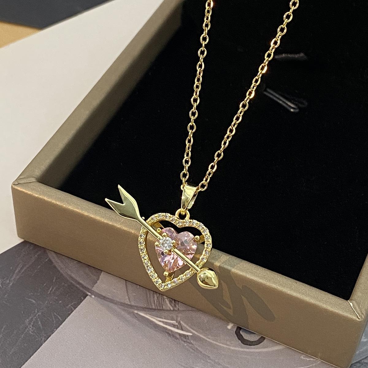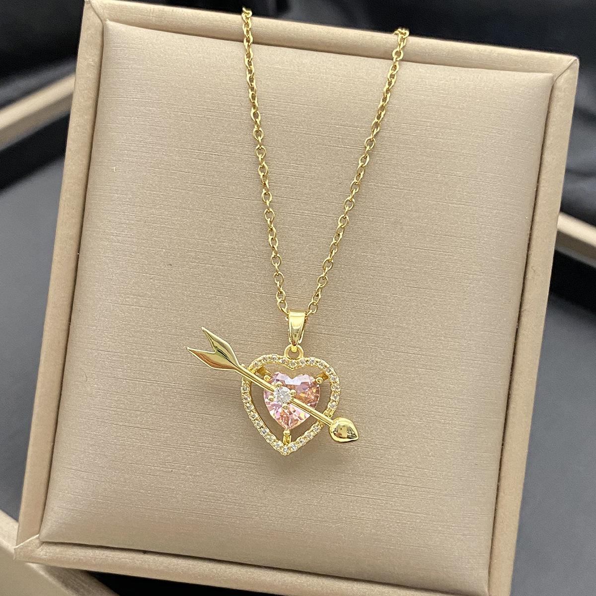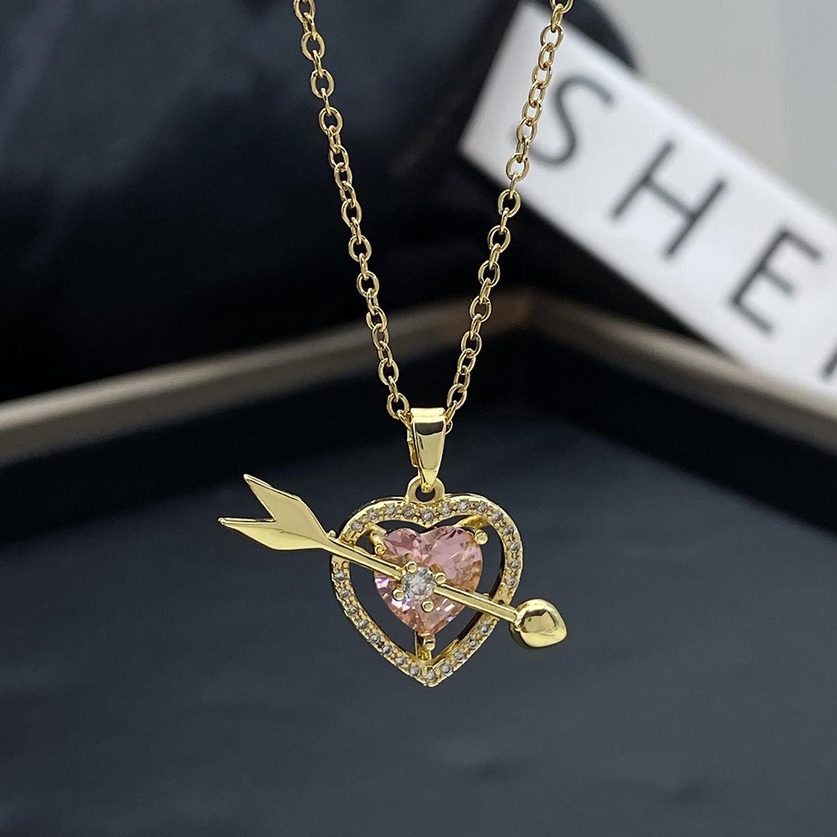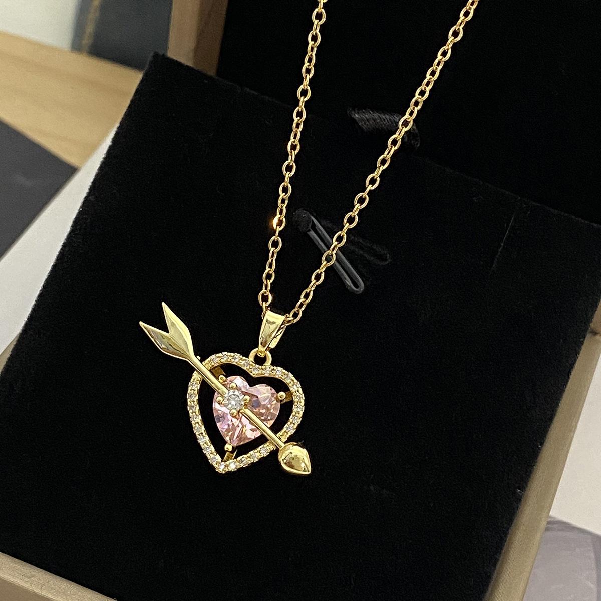 Collar Coreano Versátil Exquisito Colgante Moda Corazón Cadena Clavícula Simple Zircón Rosa Una Flecha a través del Corazón Acero de Titanio