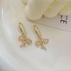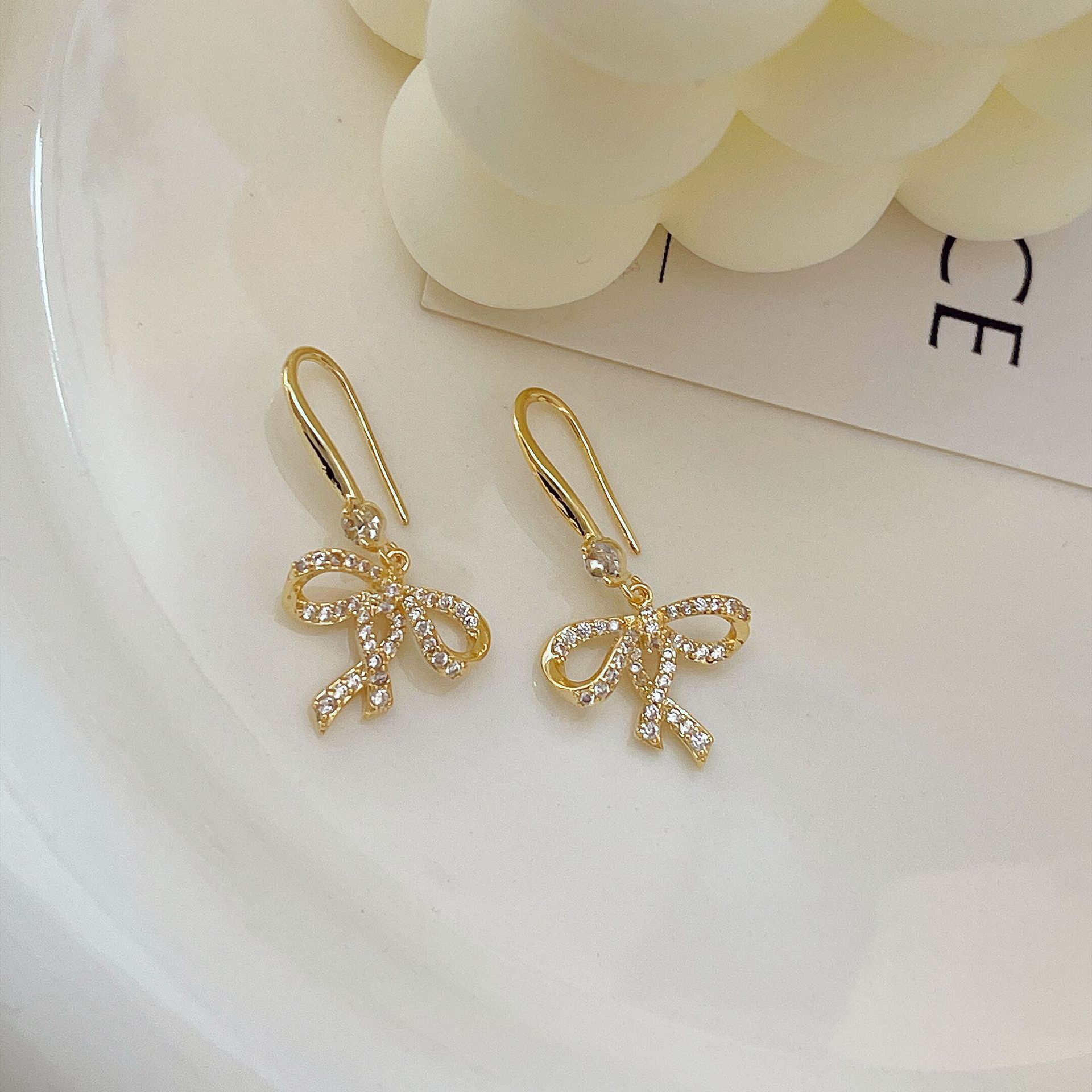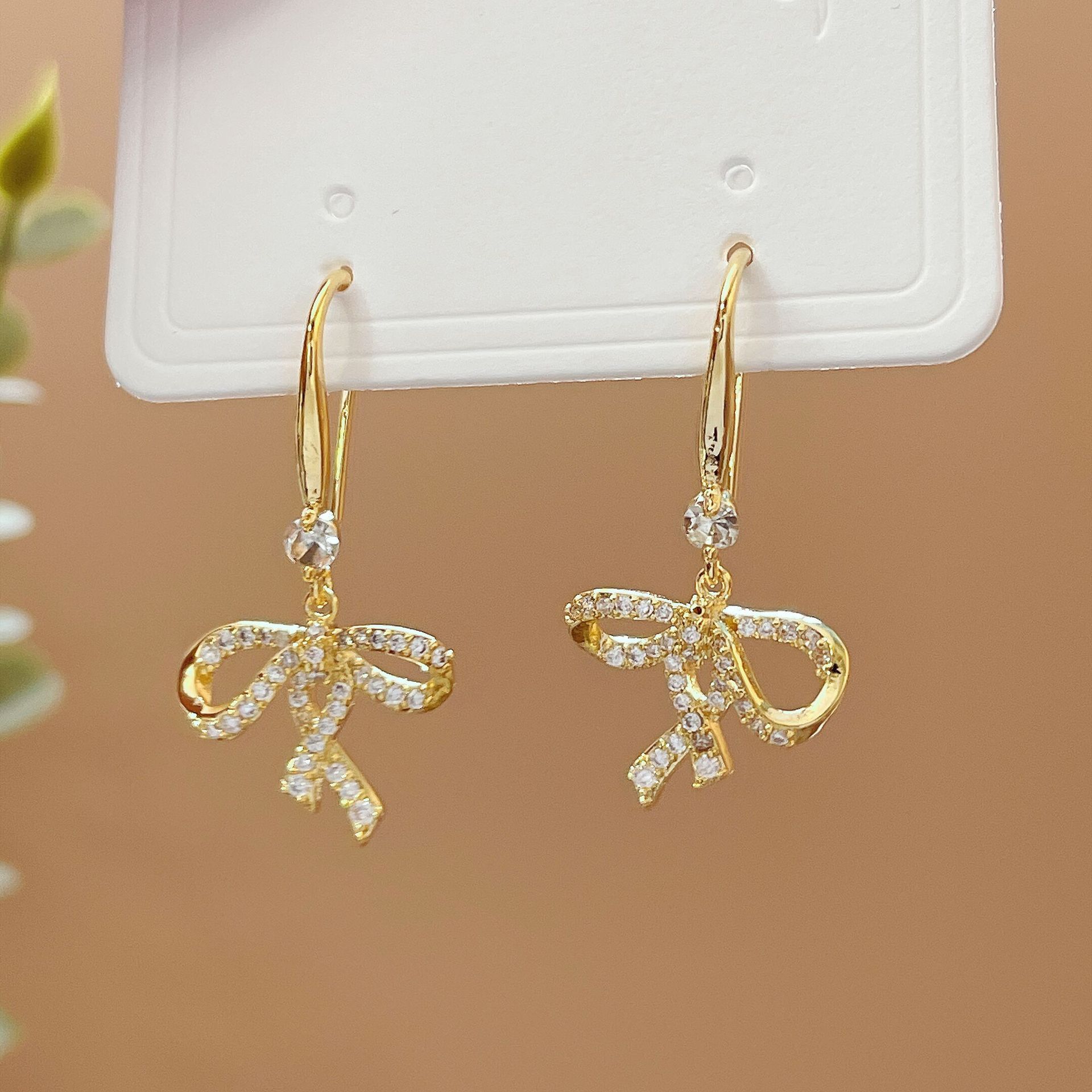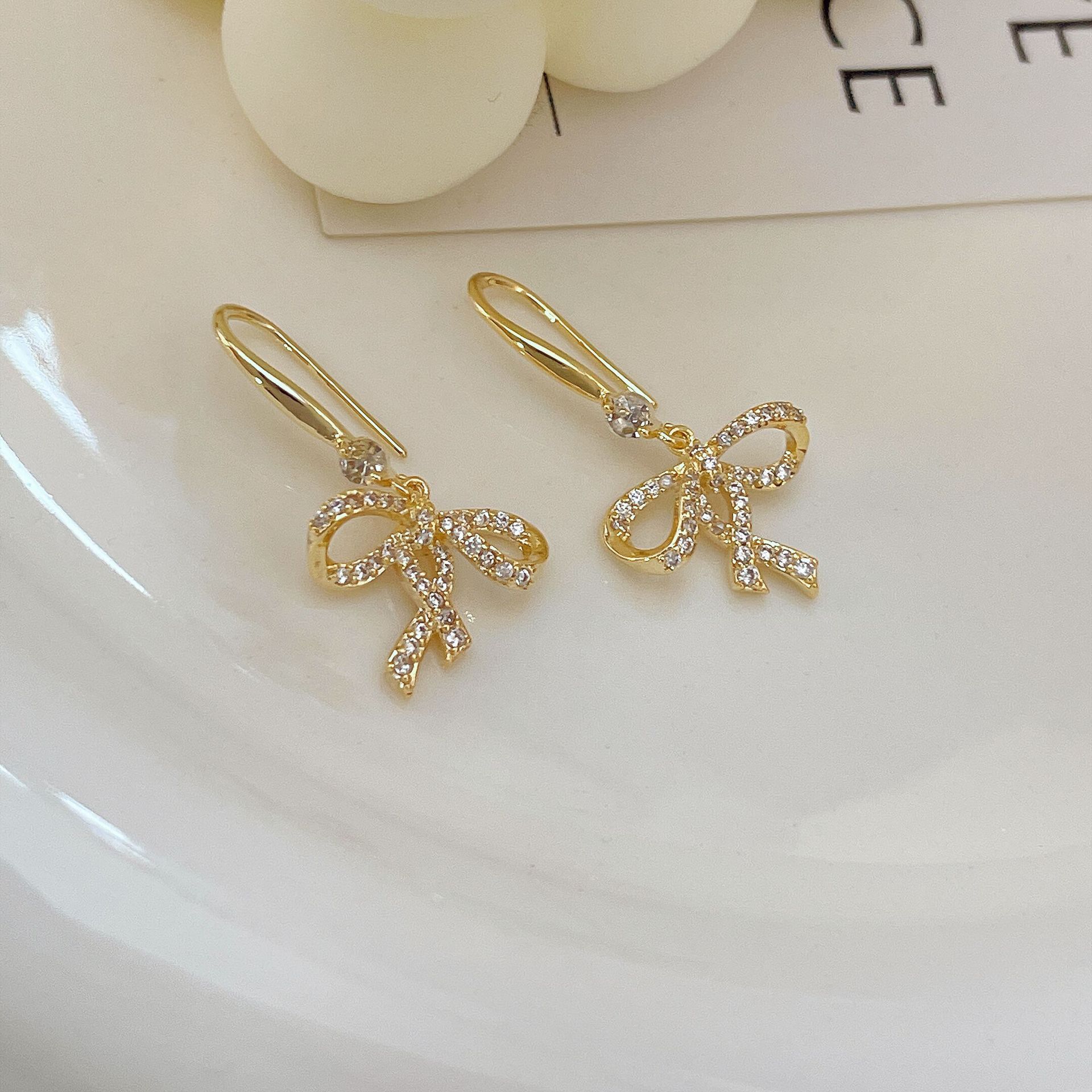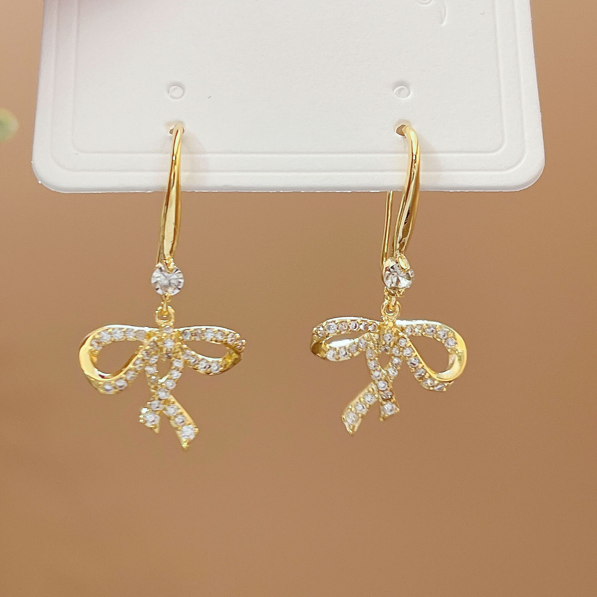 Retro Exquisito Micro-incrustado Zircon Lazo Gancho para la Oreja Temperamento Dulce Moda de Alta Gama Combinable Aretes de Dama Aretes