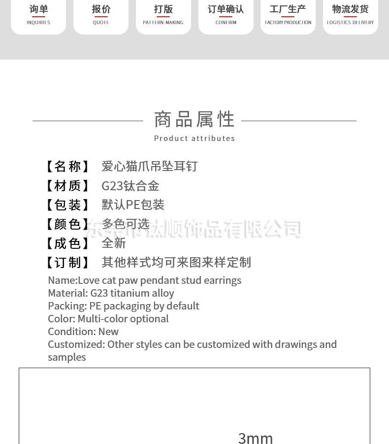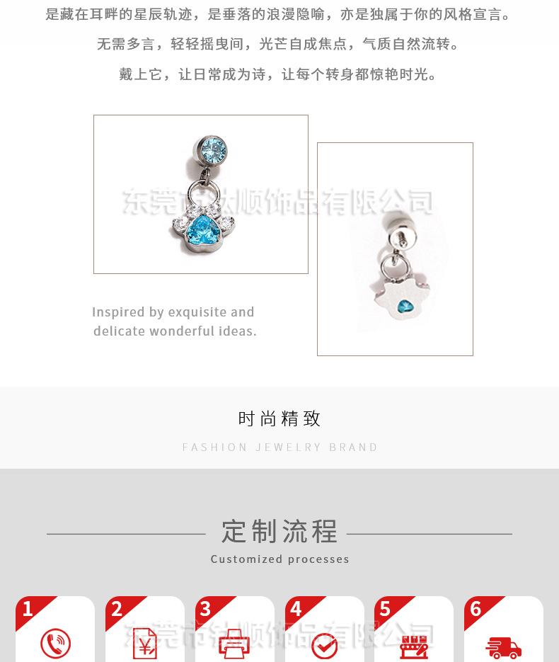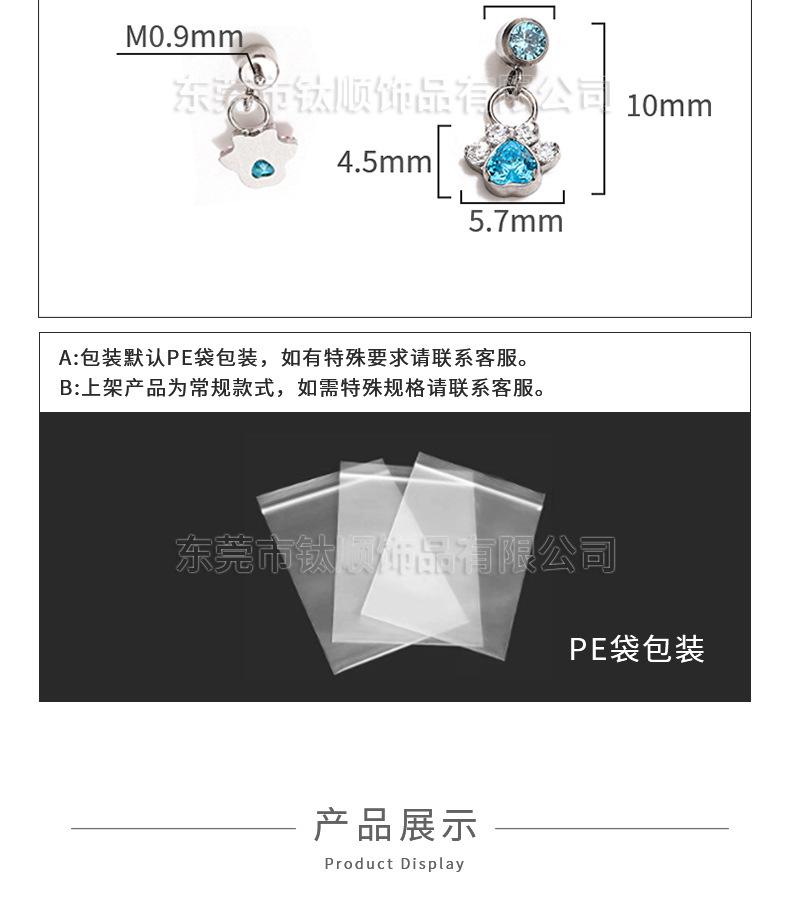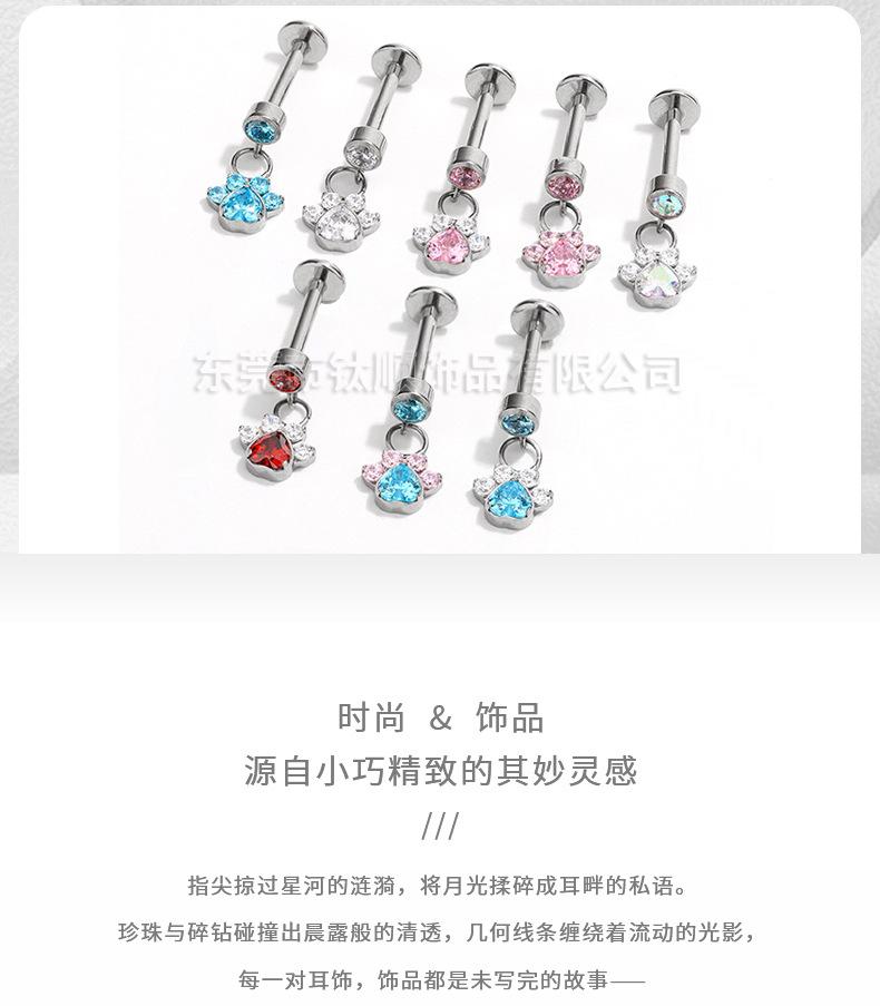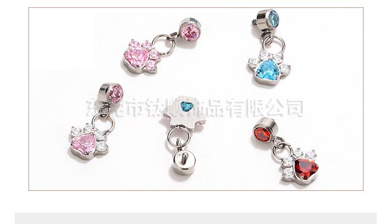 F136 aleación de titanio stock al por mayor G23 titanio corazón pata de gato colgante aretes de tuerca labrets accesorios de joyería para piercing