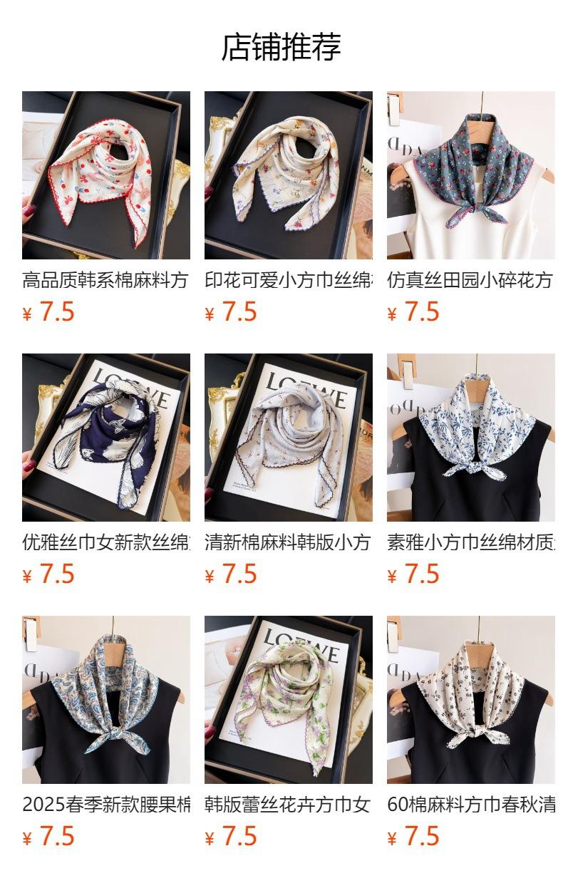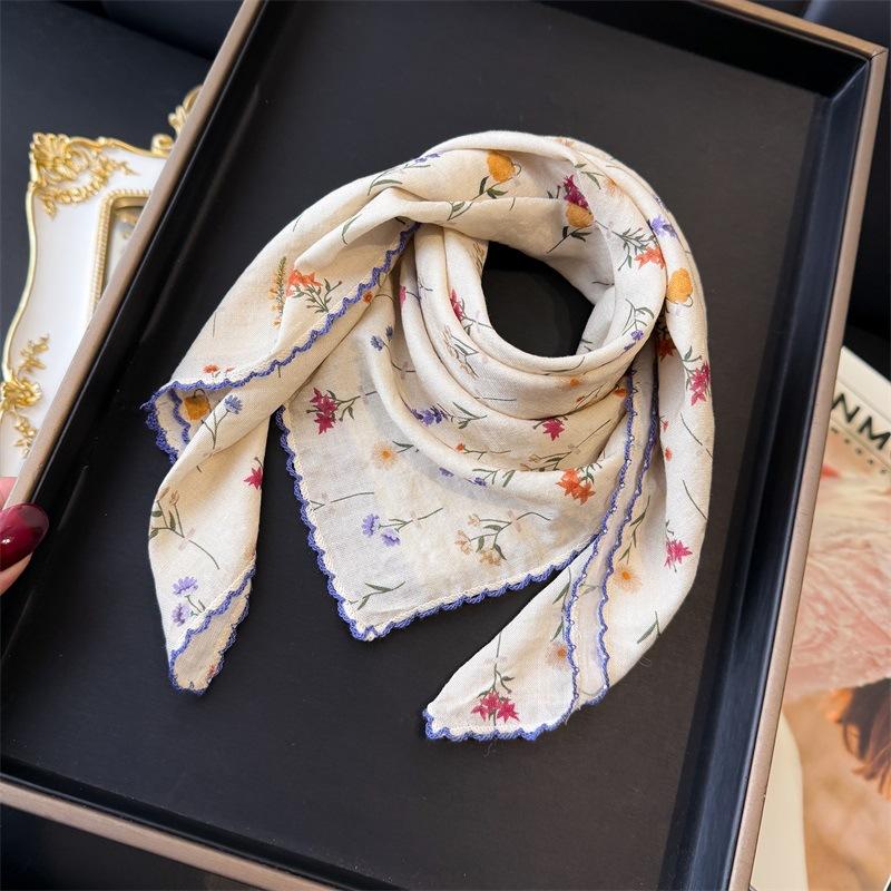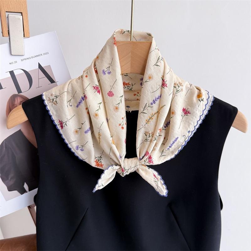 Pañuelo Cuadrado Pequeño Lindo Estampado Tela de Algodón Seda Material Tela Estampado de Plantas Retro Estilo Coreano Estilo Coreano Ropa de Verano Versátil para el Cabello