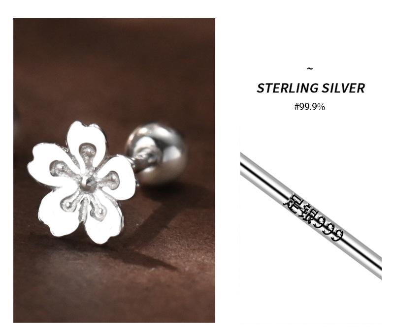 S999 Plata Pura Mini Aretes de Flor Diseño Nicho Aretes Cierre de Rosca Perforación Cartílago Oreja Mujer Plata Esterlina Perforación de Oreja