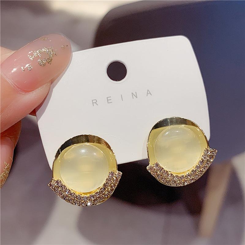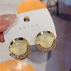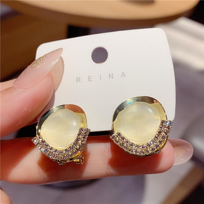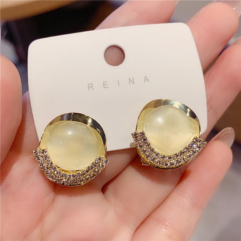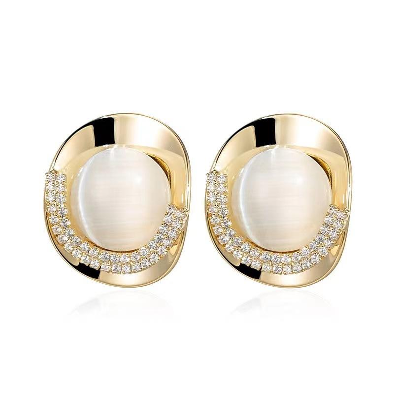 Aretes Metálicos Dorados Geométricos de Piedras Ojo de Gato Moda Combinable para Mujer 2023 Nueva Moda Aretes de Estilo Simple y Atmosférico
