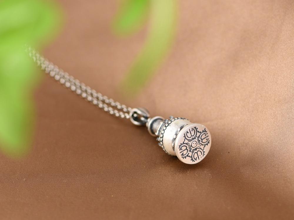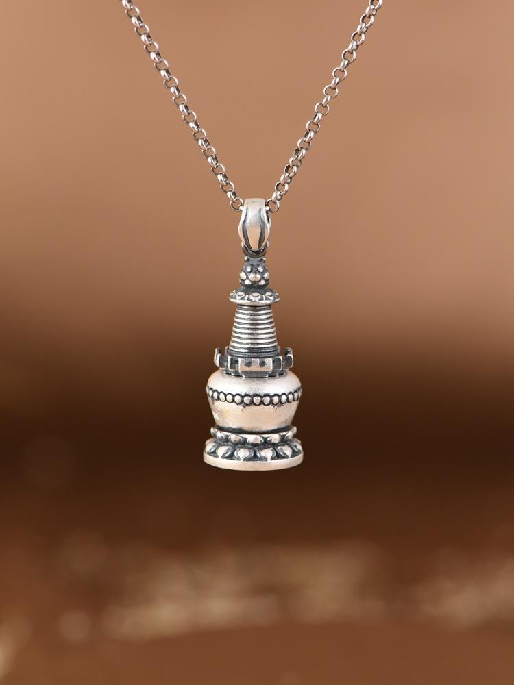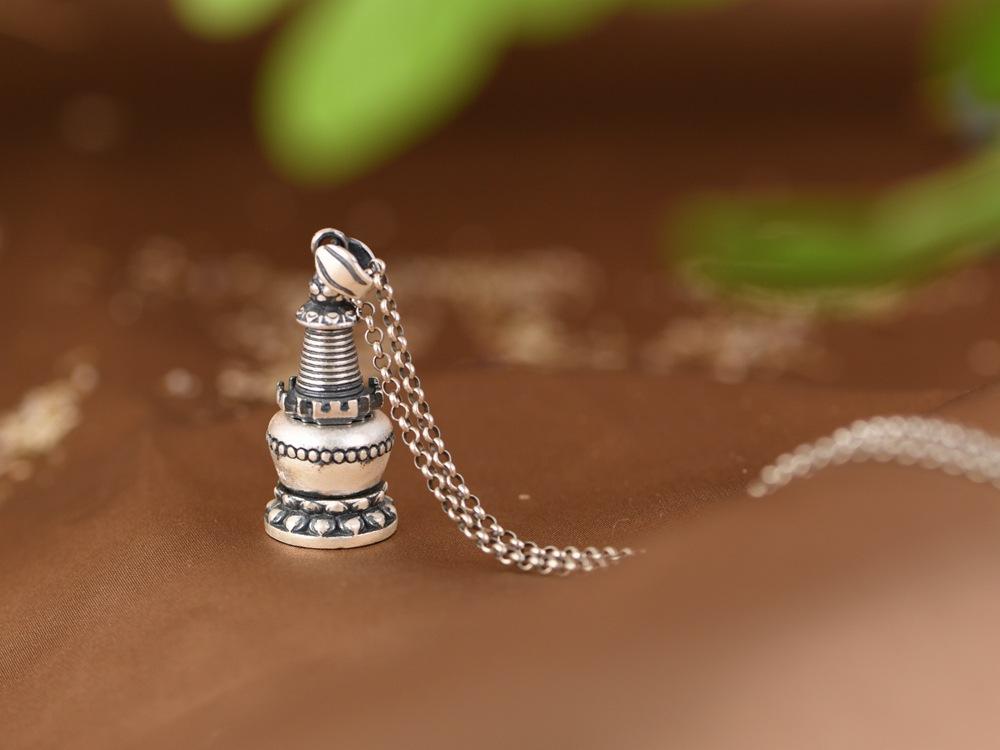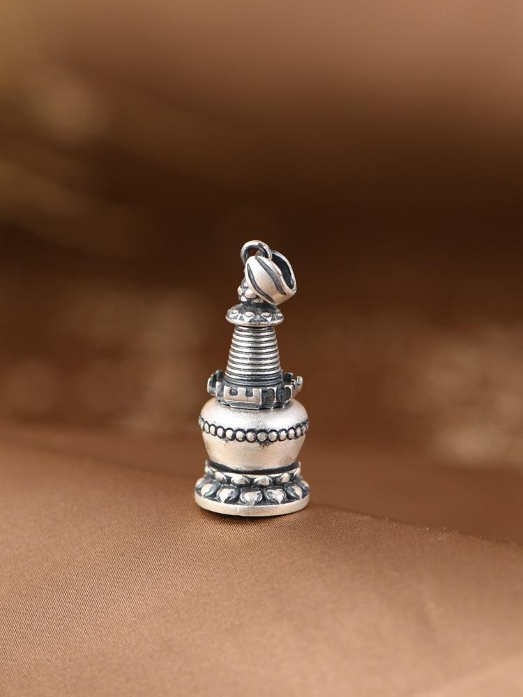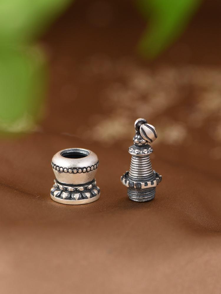 Colgante de Plata Tailandesa Estilo Chino Chiba Retro Envejecido Vajra Estupa Vintage Caja Gau Unisex Amuleto Versátil Accesorio