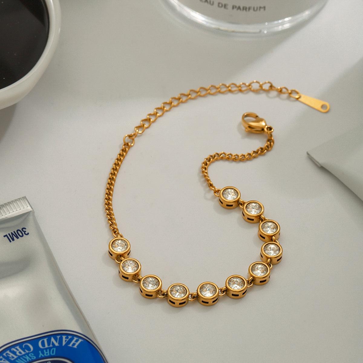 Jieding Pulsera Europea y Americana de Acero Inoxidable y Zircón Joyería de Lujo Ligero de Alta Gama Joyería de Acero de Titanio Pulsera Sin Color Mujer Transfronteriza