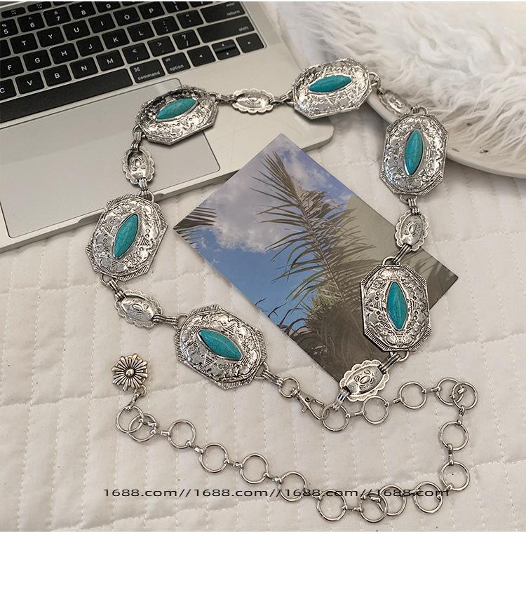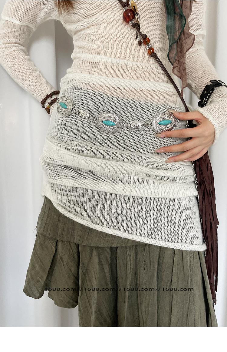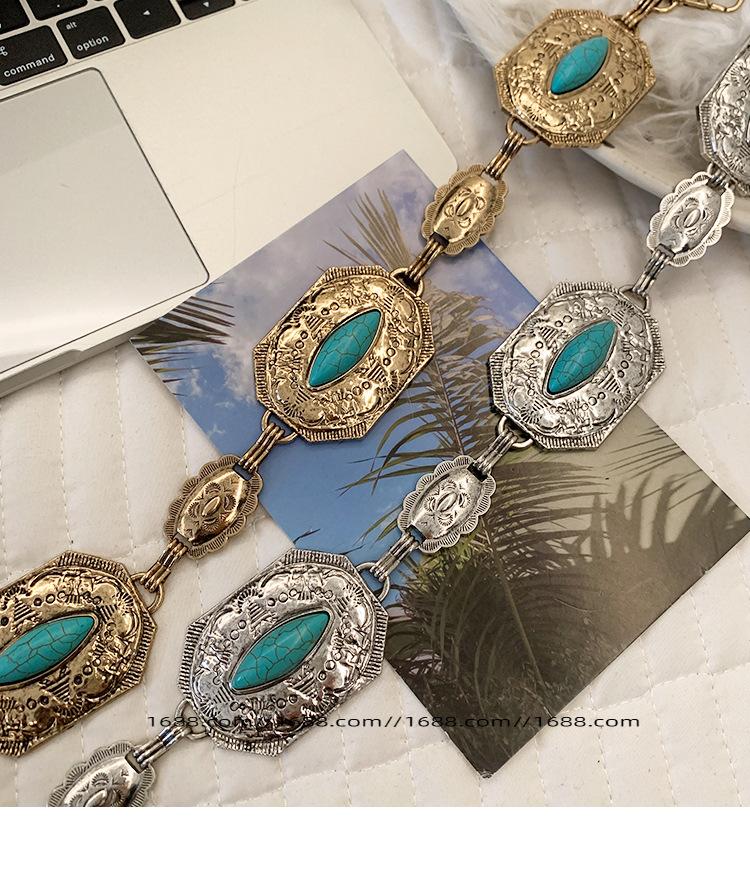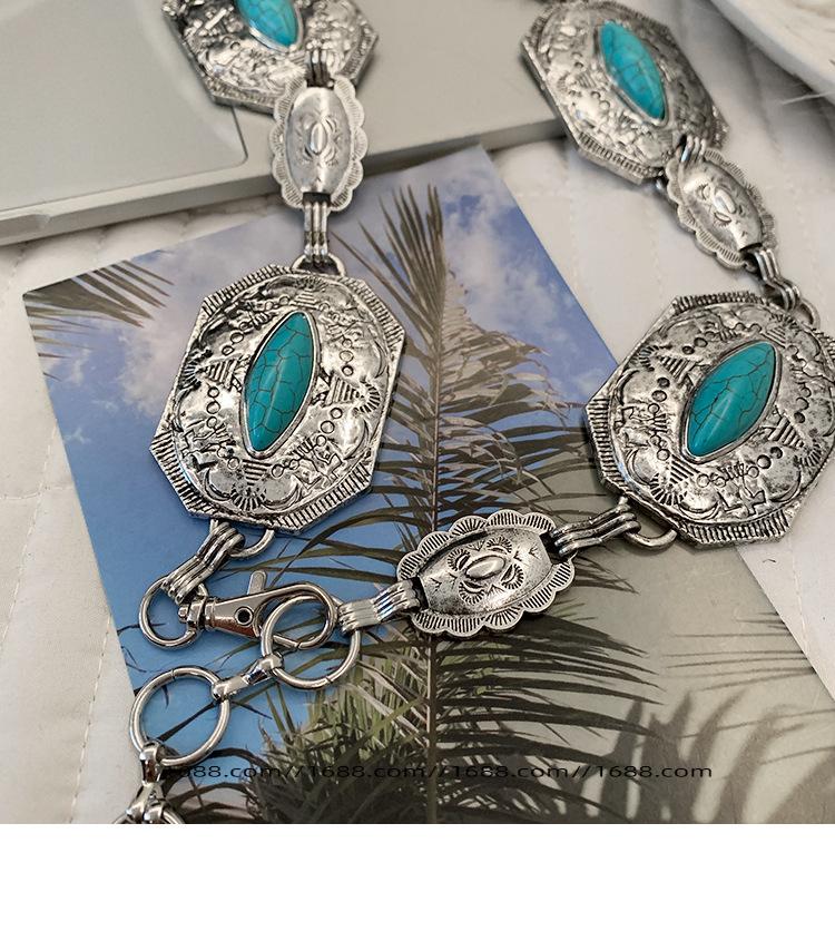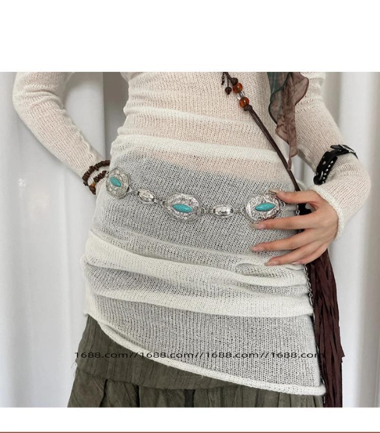 Cinturón ancho plateado retro de alta gama, accesorio para mujer para vestidos, jeans, decoración de cadena, cadena de cintura estilo étnico bohemio