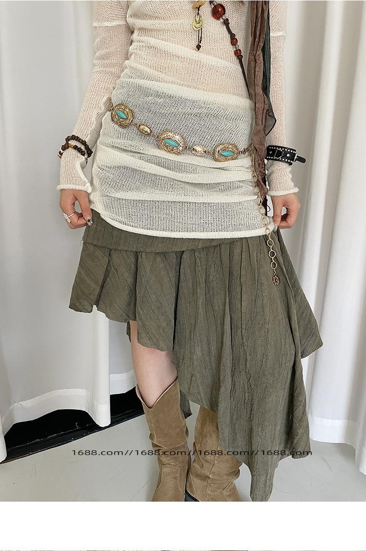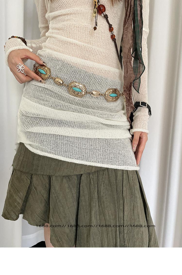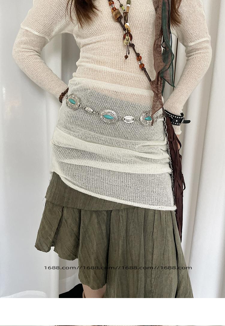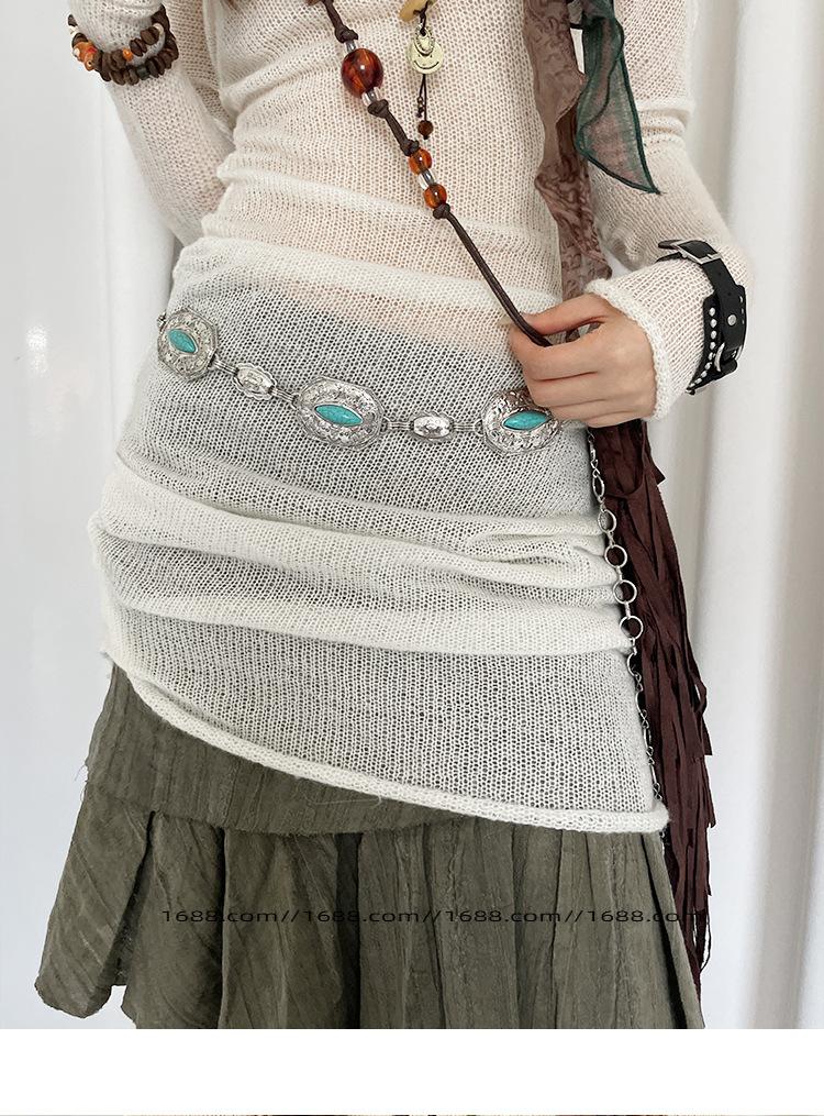 Cinturón ancho plateado retro de alta gama, accesorio para mujer para vestidos, jeans, decoración de cadena, cadena de cintura estilo étnico bohemio