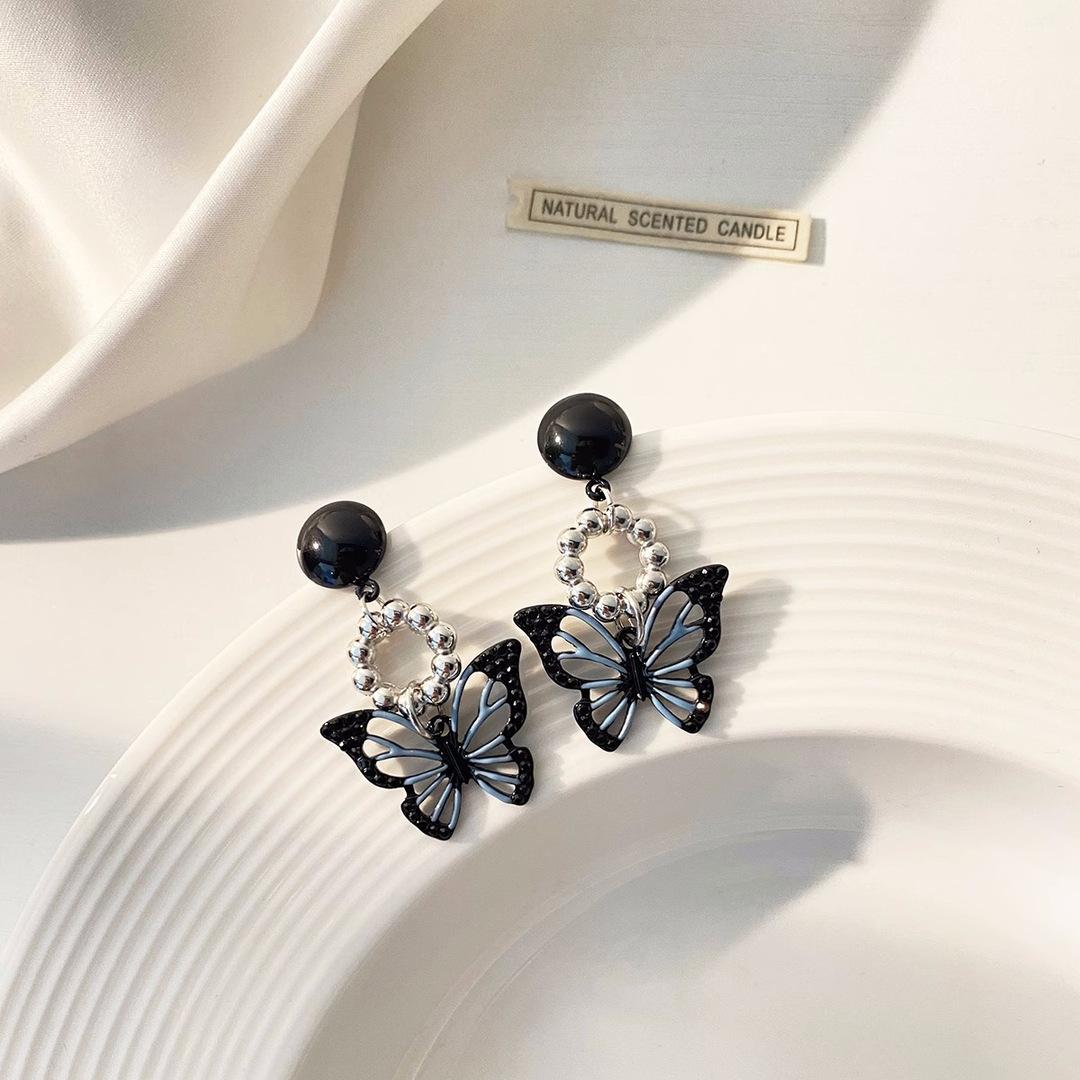 Compra Aretes de mariposa negra aretes dulces y geniales para Mujer Nuevos aretes de clip para la oreja de nicho elegantes de alto sentido personalizados aretes de aguja de plata aretes al por mayor en Joom.pro