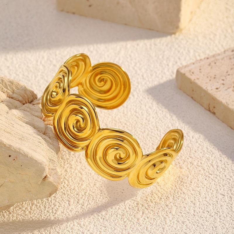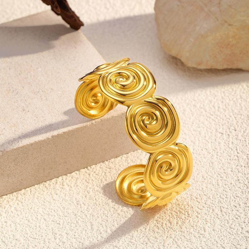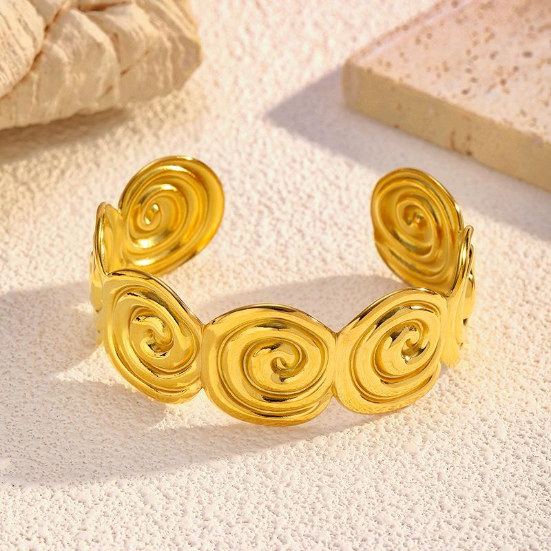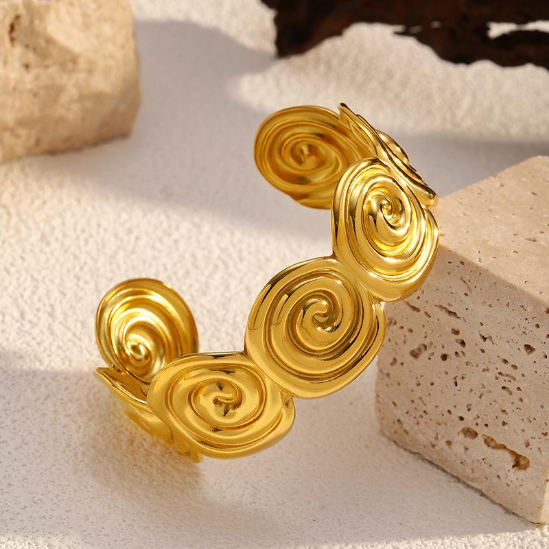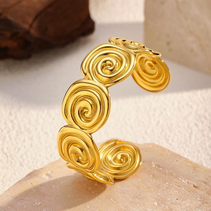 Pulsera Brazalete Espiral Dorada Transfronteriza Europea y Americana Lujo Ligero Simple Acero Titanio Chapado en Oro 18K Joyería Acero Inoxidable Mujer Venta al por Mayor