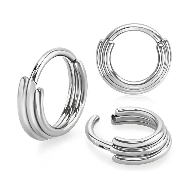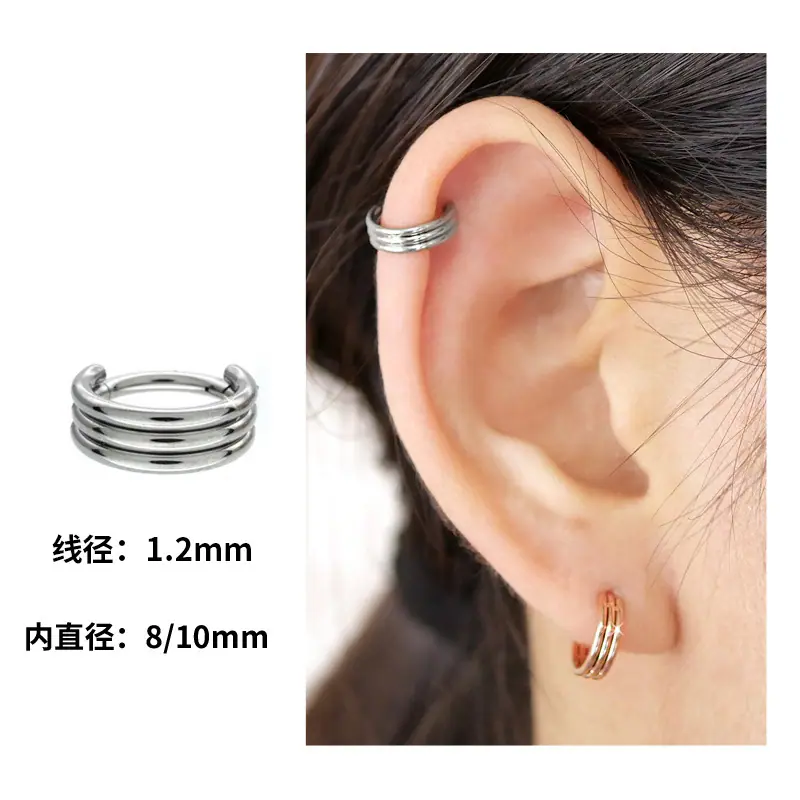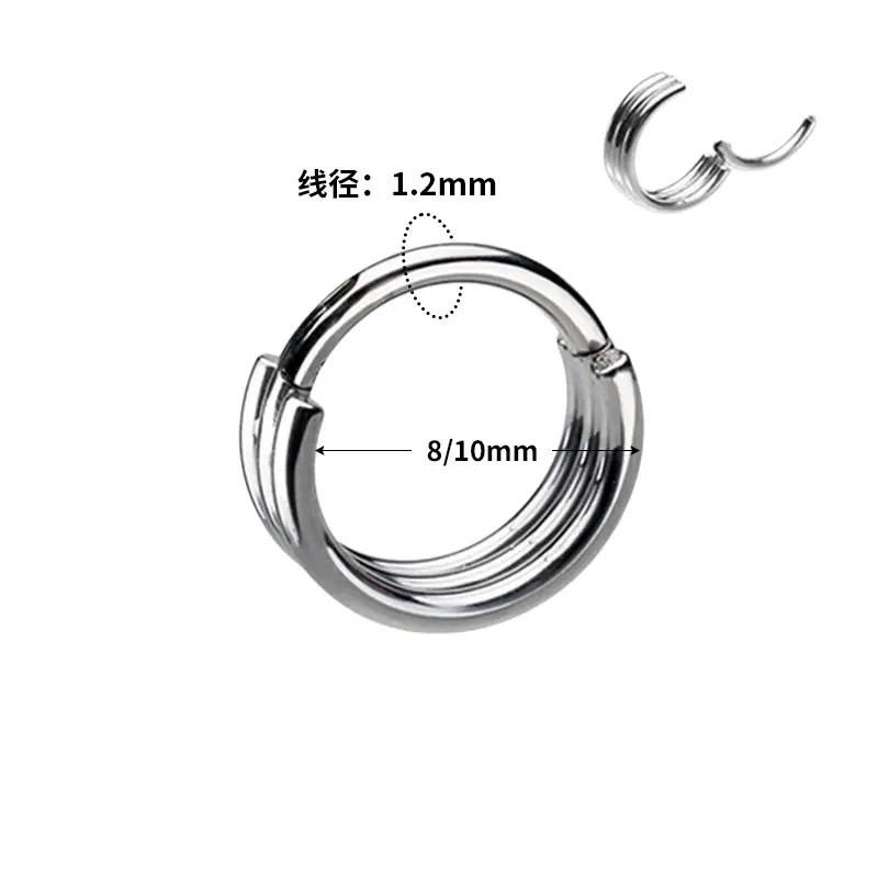 Aretes de Aro Simple Apilados de Tres Filas de Aleación de Titanio F136 Transfronterizos Anillos para la Nariz Aretes Redondos Moda Trendy Versátil