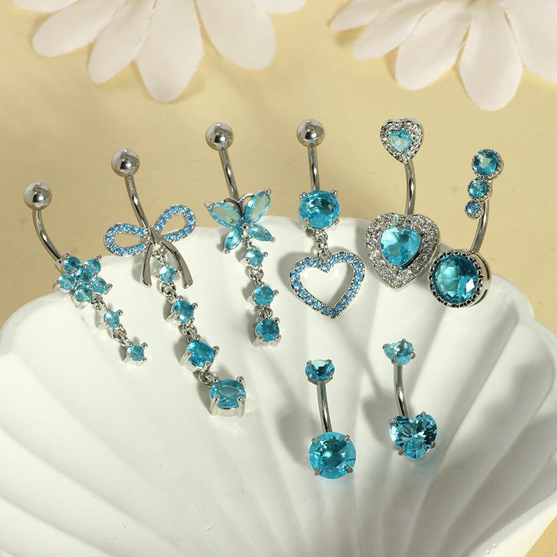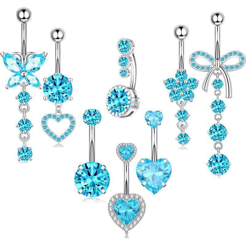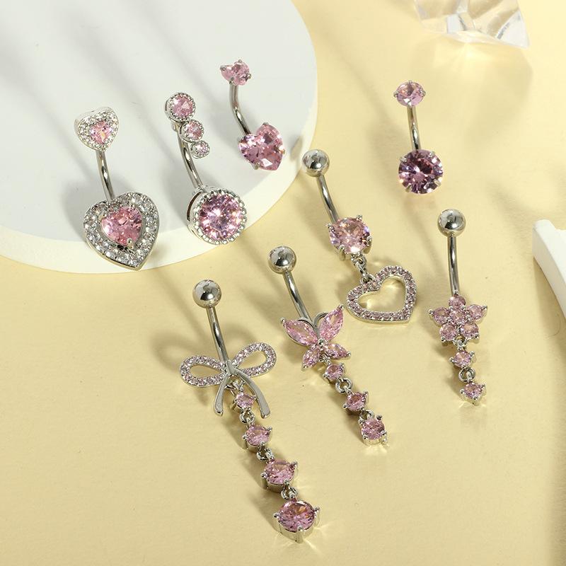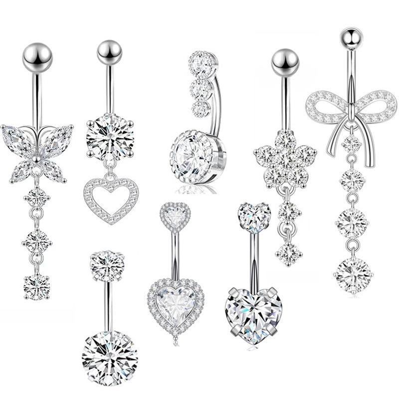 Juego de 8 piezas Anillos para el Ombligo Acero Inoxidable Corazón de Durazno Mariposa Zircón Incrustado Super Brillante Joyería de Moda para Perforación del Ombligo Estilo Coreano