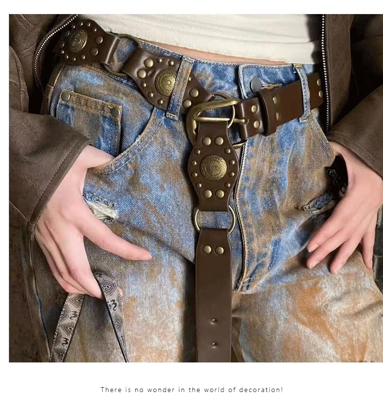 Cinturón de Hebilla Retro Estilo Americano para Mujer Remache Nuevo Cinturón Marrón con Jeans Estilo Coreano Combinación Total Cadena de Cintura Moderna