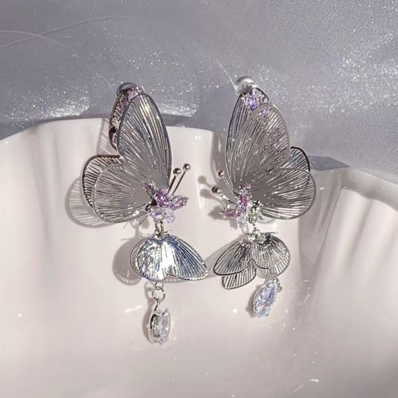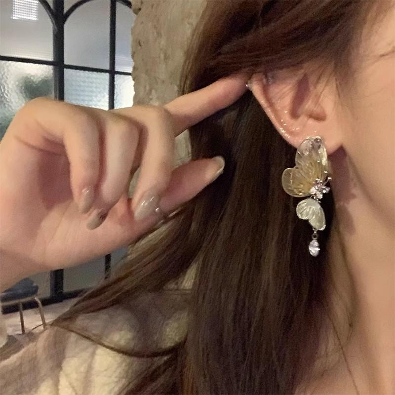 Nuevos Aretes de Borla de Gota de Agua de Mariposa Media de Temperamento Super Hada a la Moda Aretes Exquisitos de Hada Inteligente Dulces de Lujo Ligero
