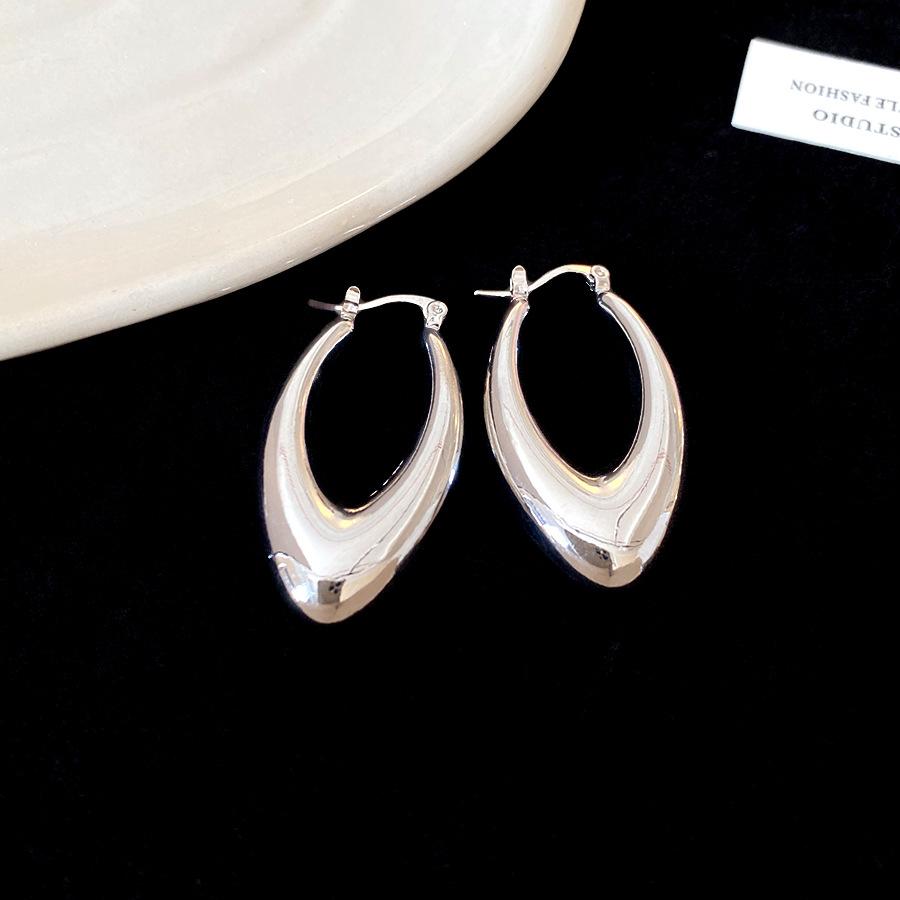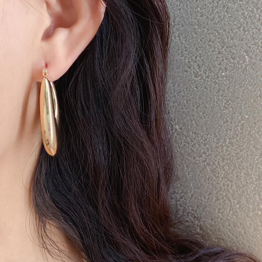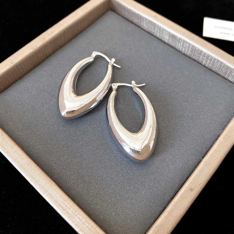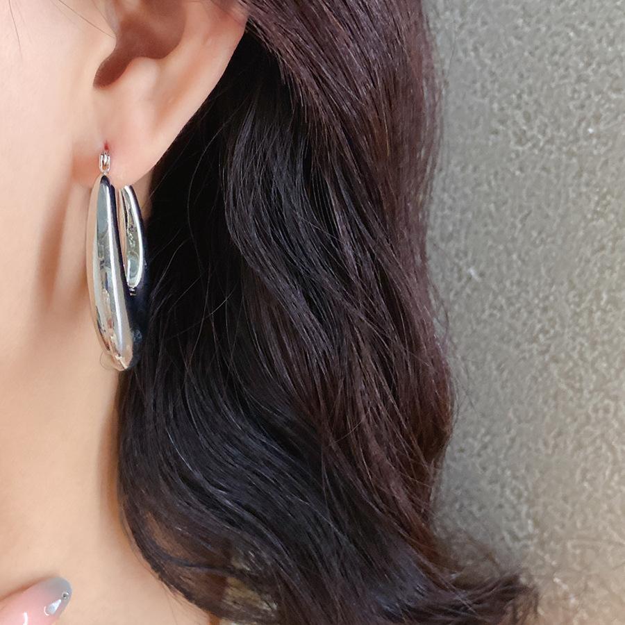 Aretes de puño europeos y americanos estilo ins con colgante de gota de agua de superficie metálica reflectante de la luz, aretes de moda, aretes minimalistas para mujer, sentido del diseño nicho