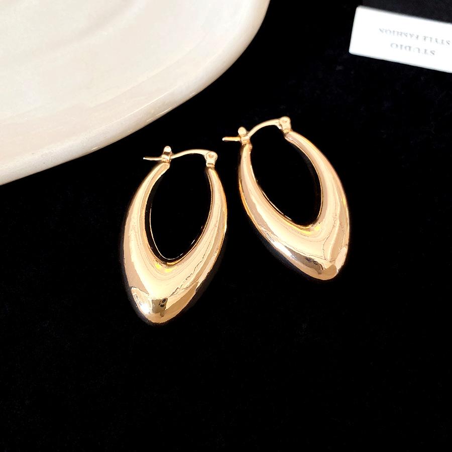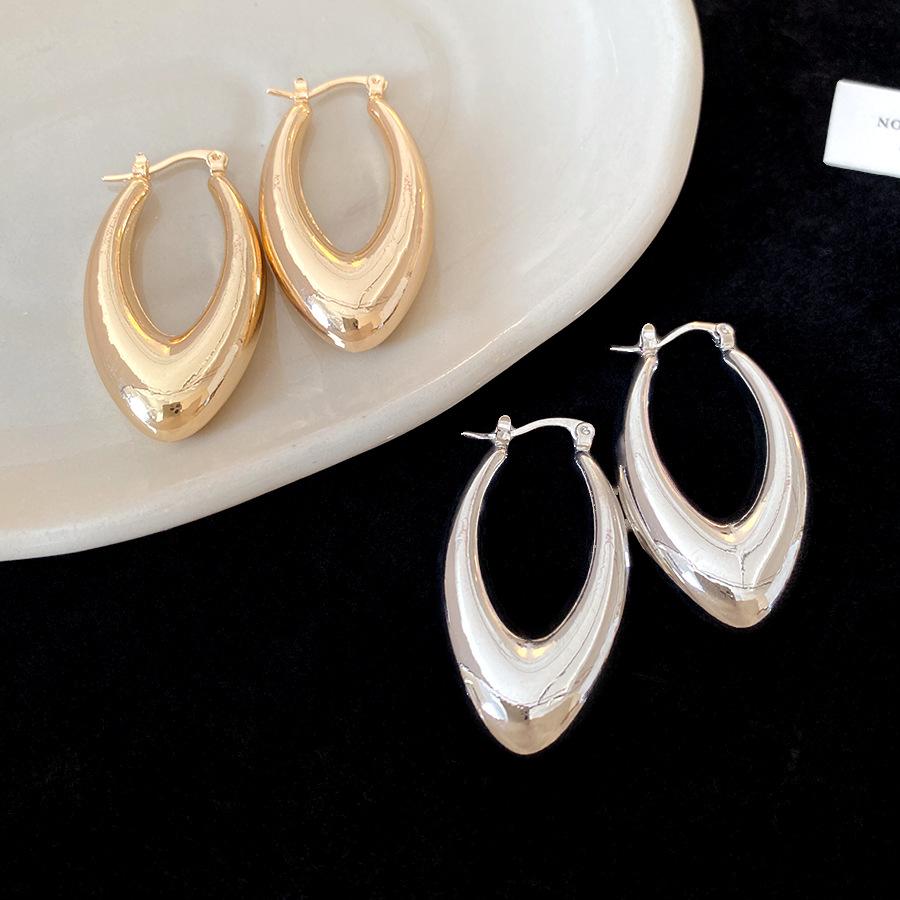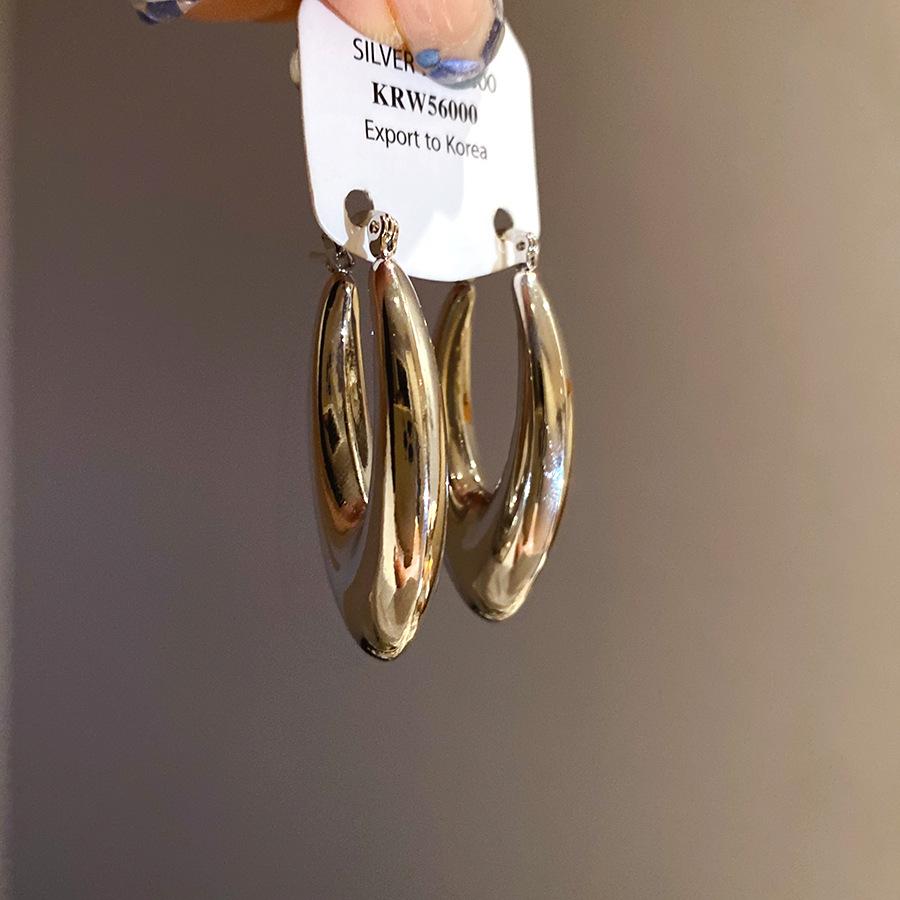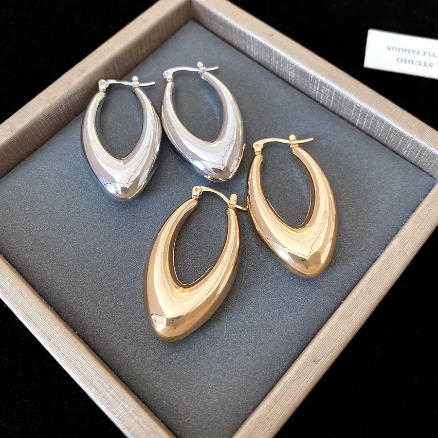 Aretes de puño europeos y americanos estilo ins con colgante de gota de agua de superficie metálica reflectante de la luz, aretes de moda, aretes minimalistas para mujer, sentido del diseño nicho