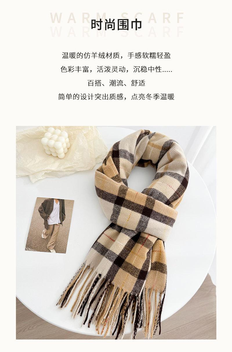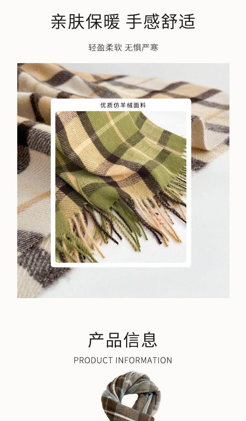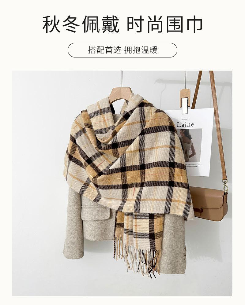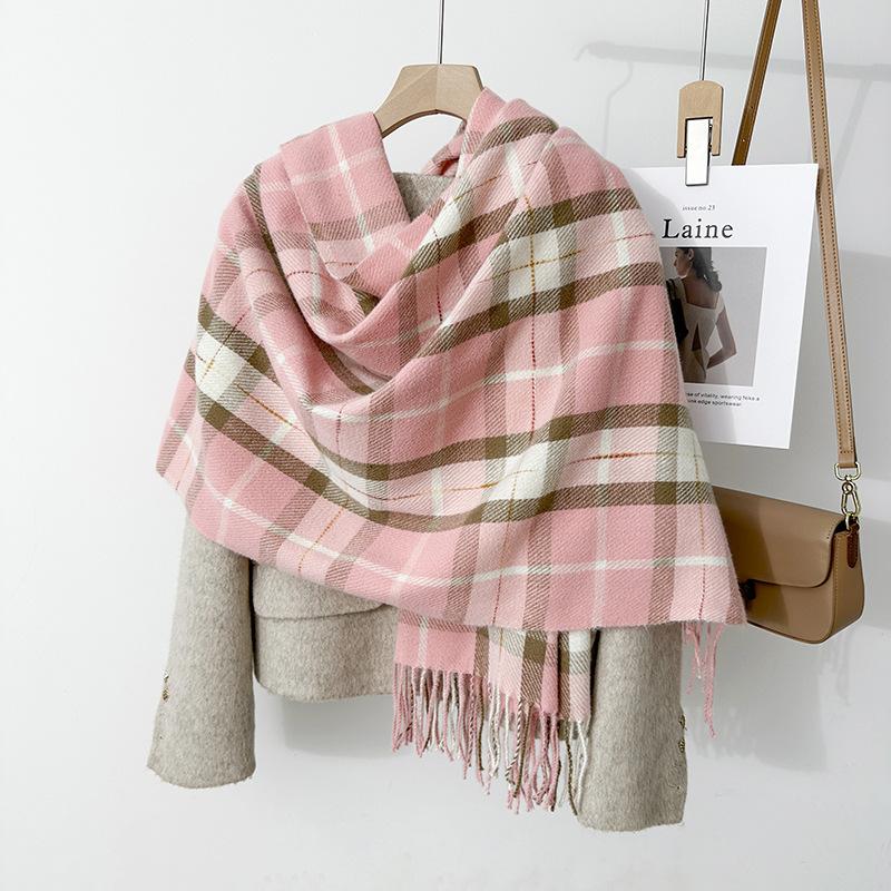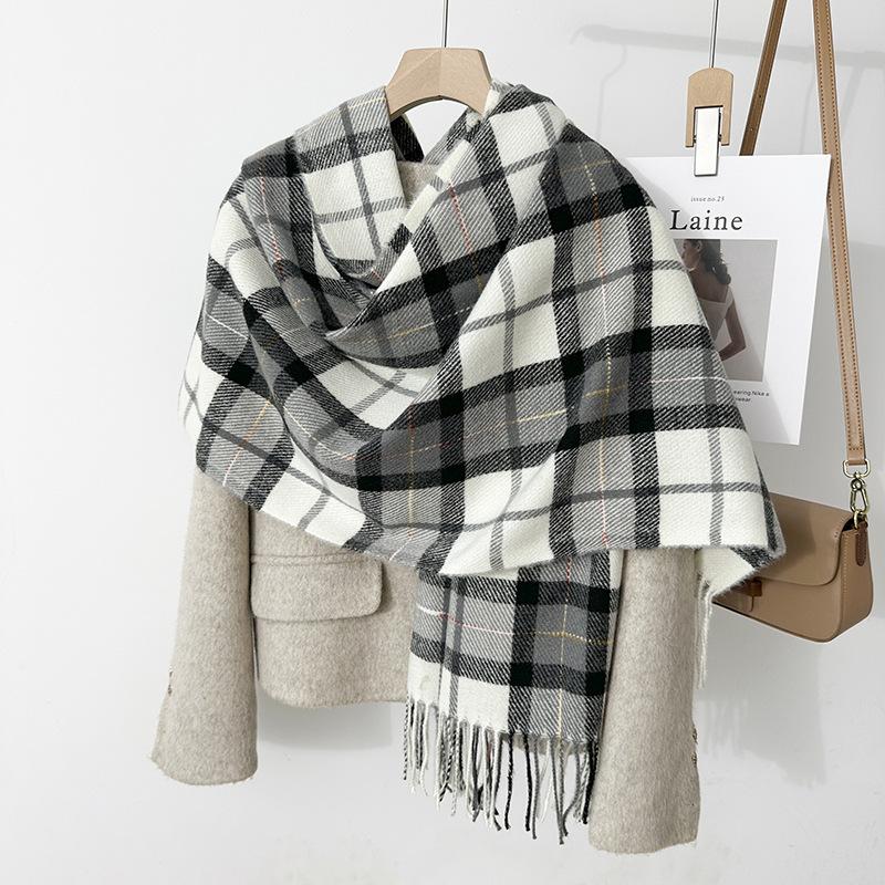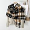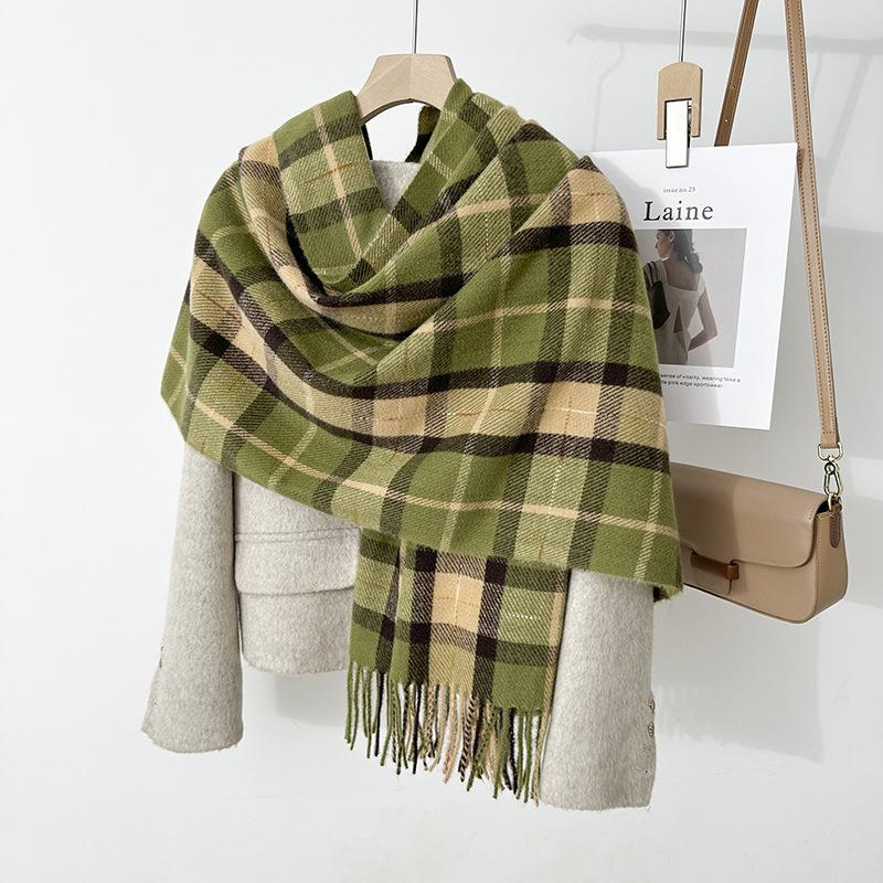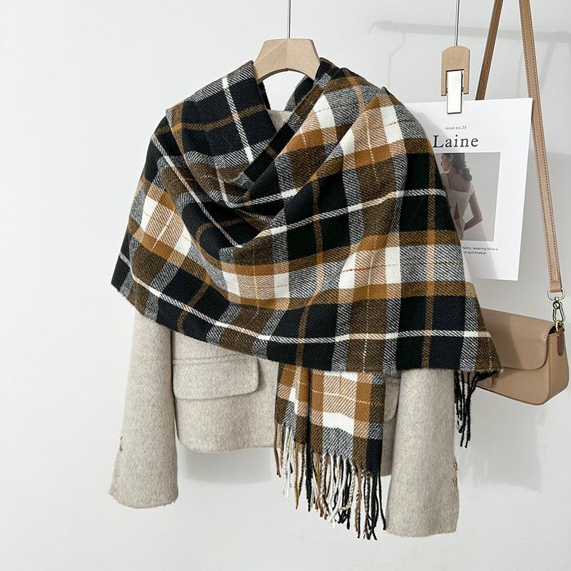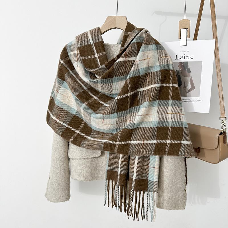 Bufanda Nueva Británica Retro de Cuadros para Mujer Invierno Imitación Cachemira Gruesa Cálida Protección para el Cuello Bufanda Temperamento Borla Chal
