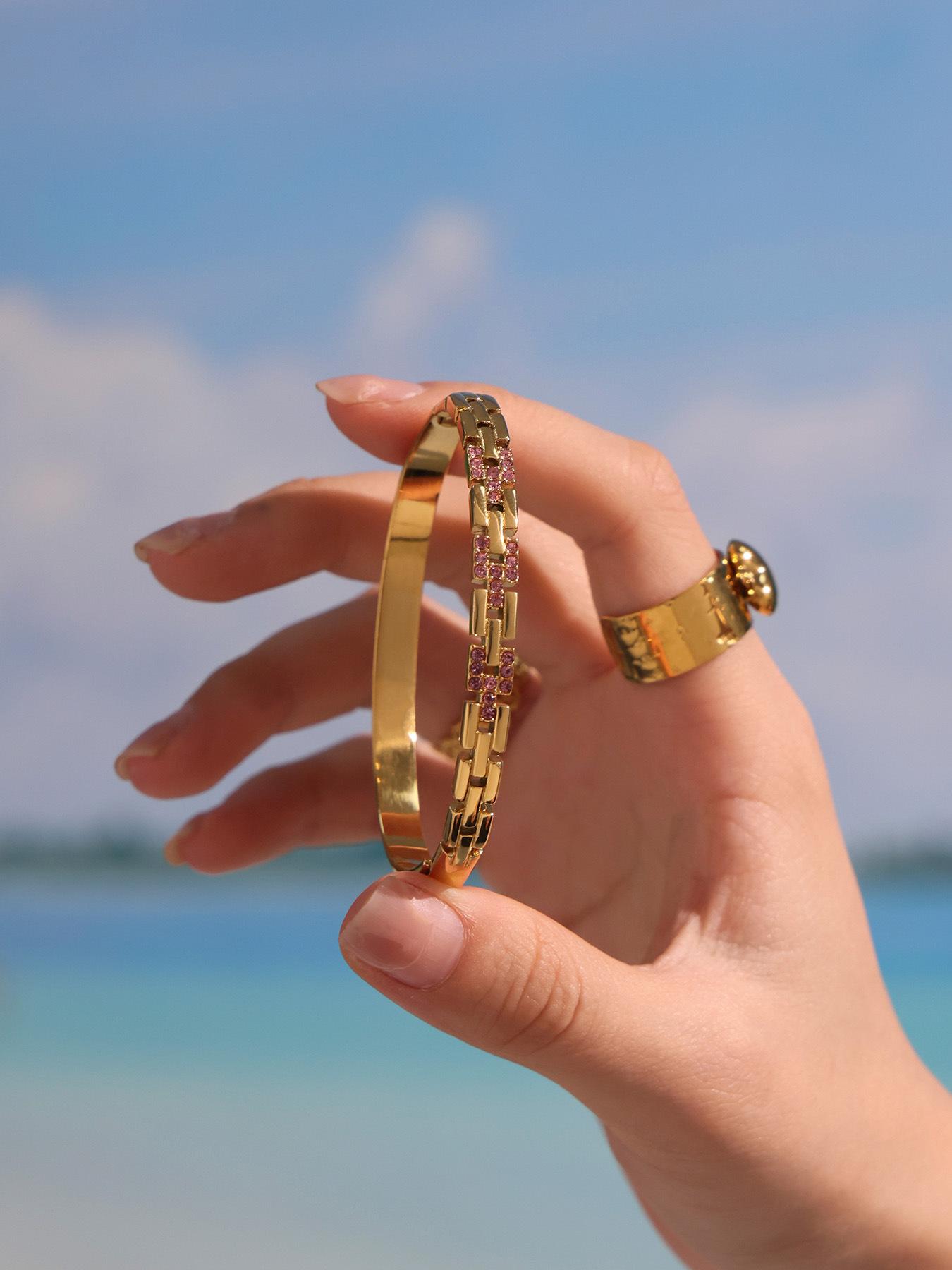 Z423-gold white zircon bracelet, Z423-gold pink zircon bracelet, Z423-steel color white zircon bracelet, Z423-...