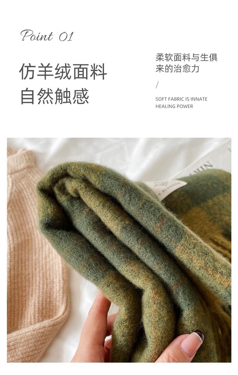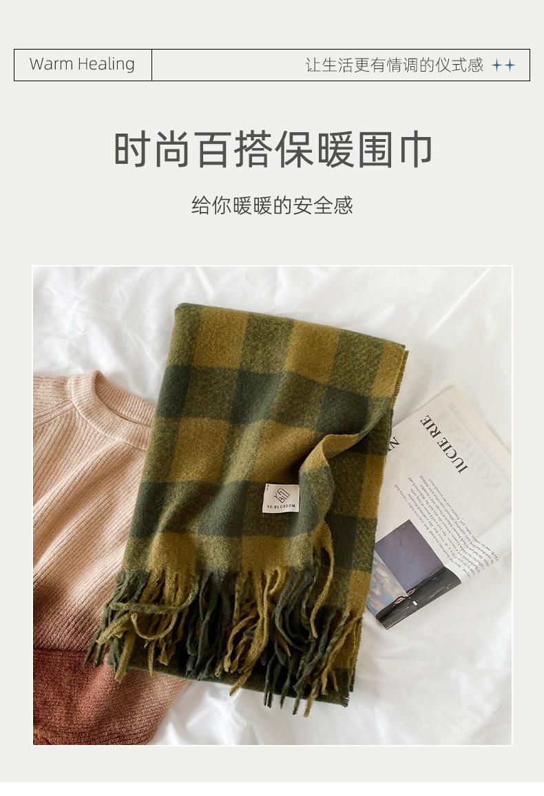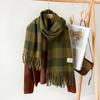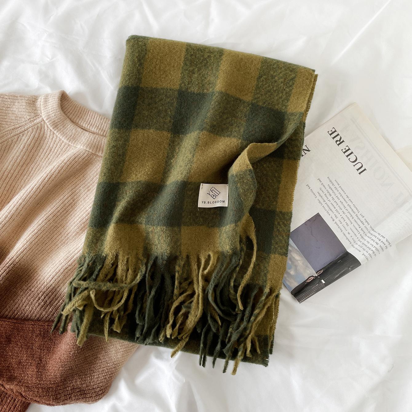 Bufanda Nueva de Cachemira Imitación Verde a Cuadros Estilo Coreano Atmósfera Invierno Chal Versátil Bufanda para Estudiantes Venta al por Mayor de Fábrica