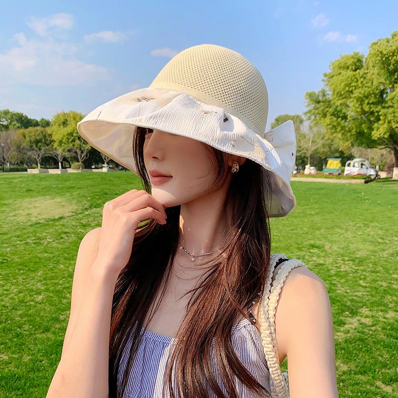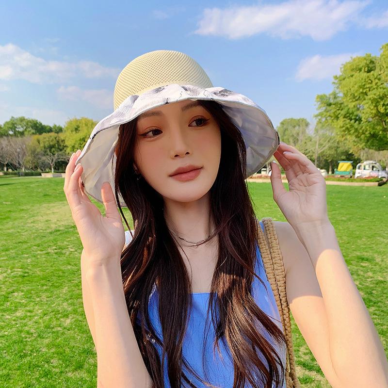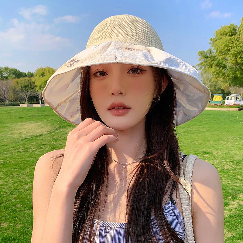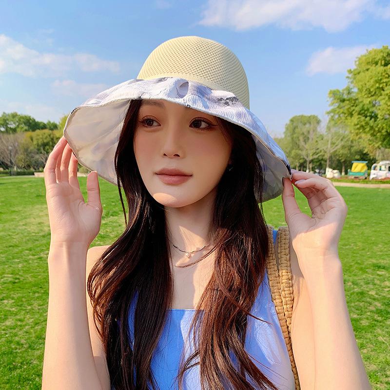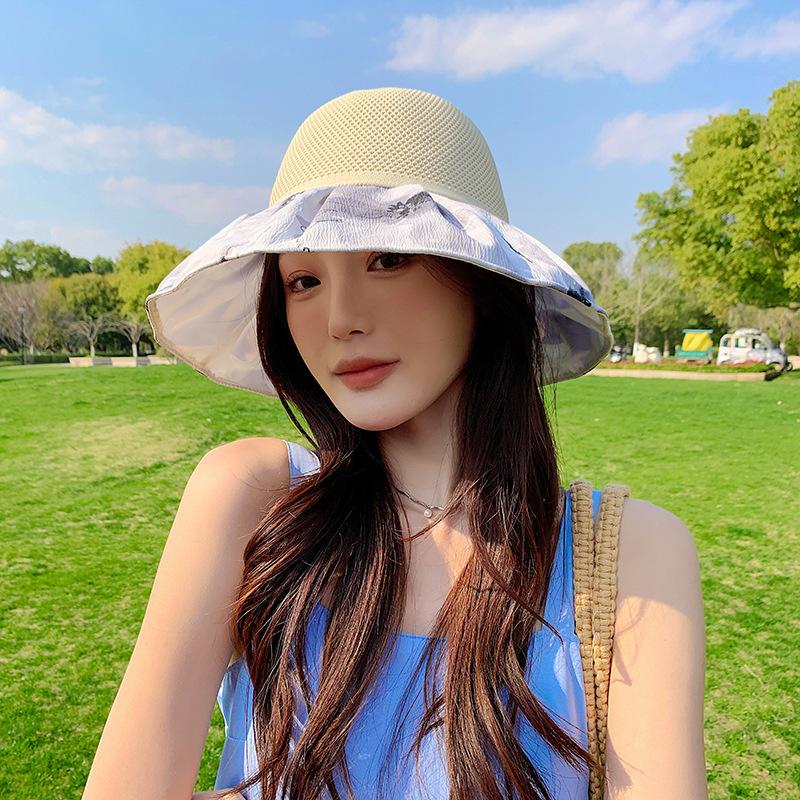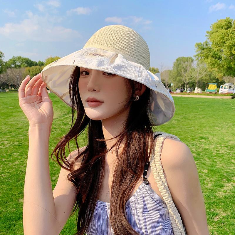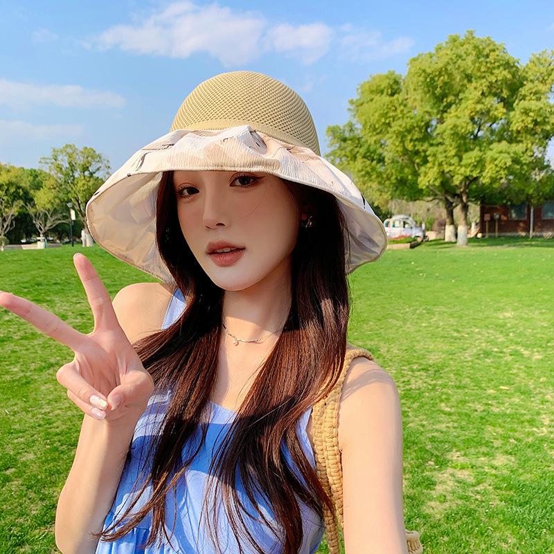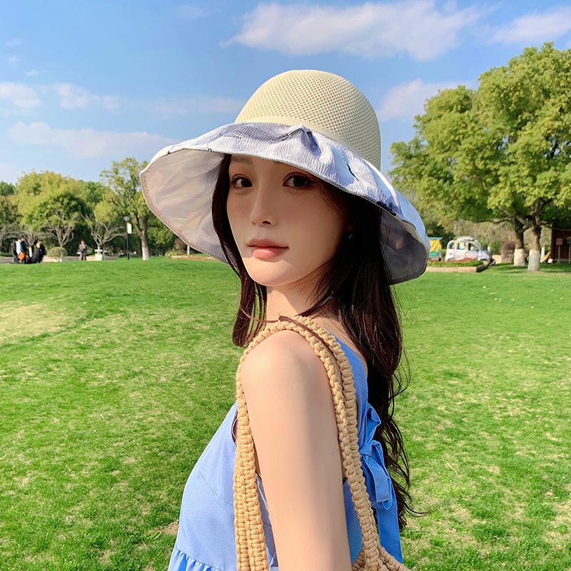 Compra 25 Sombrero para el sol súper atractivo para mujer Nuevo color Pegamento Sombrero protector solar Estilo coreano Combinable Transpirable Sombrero de ala ancha plegable Sombrero de moda al por mayor en Joom.pro