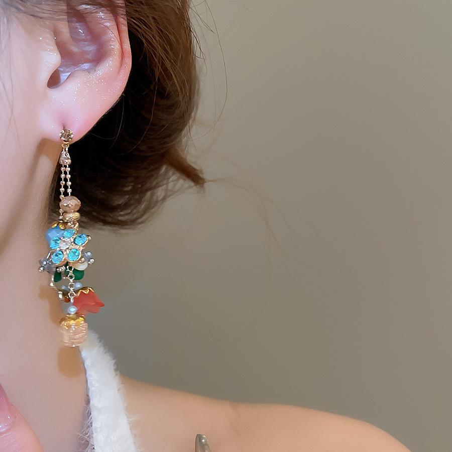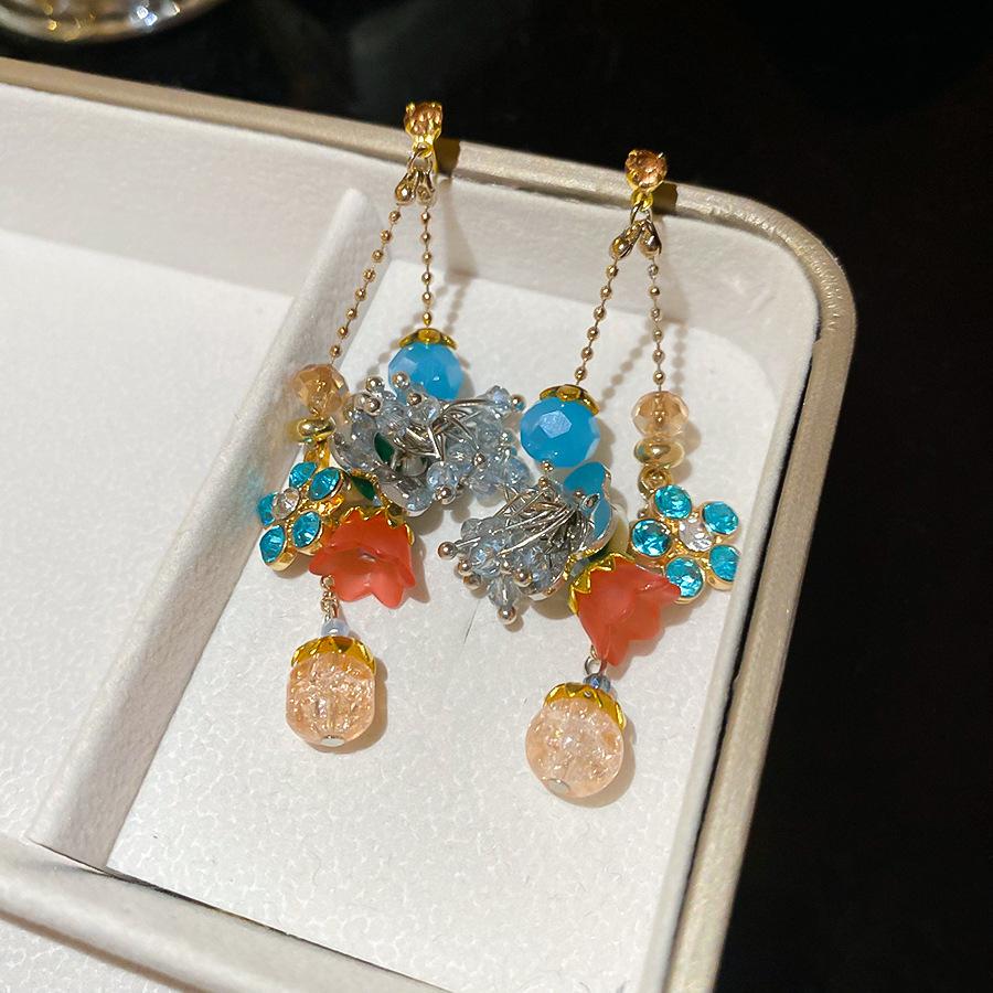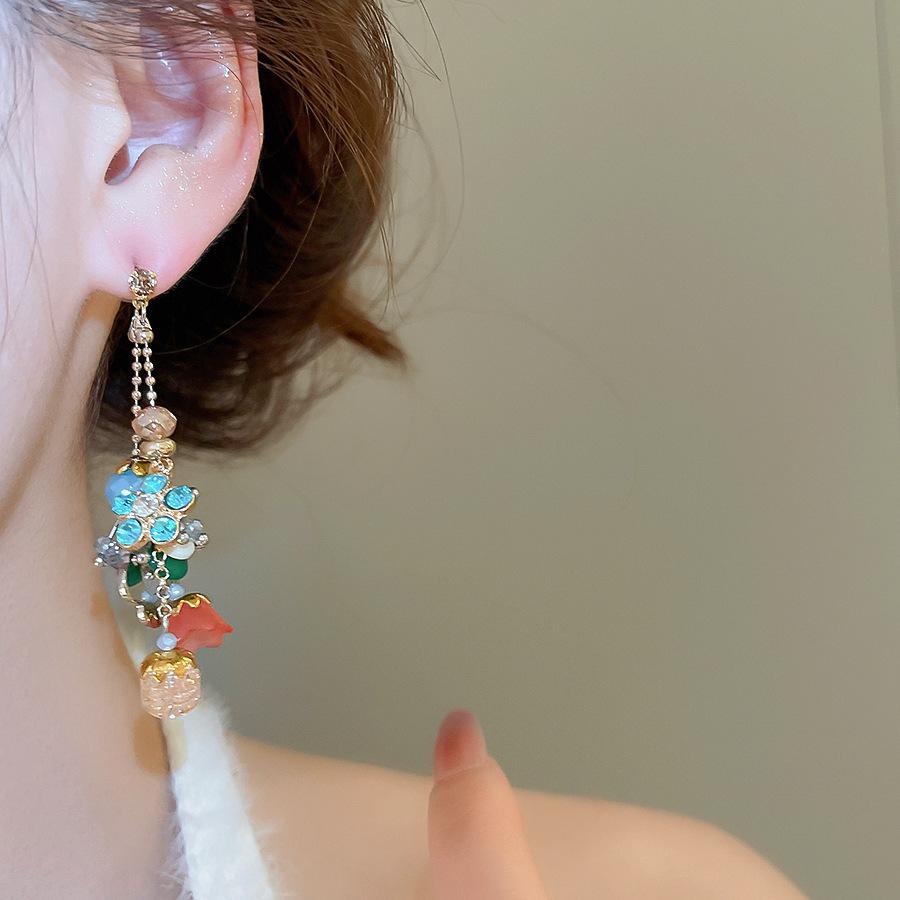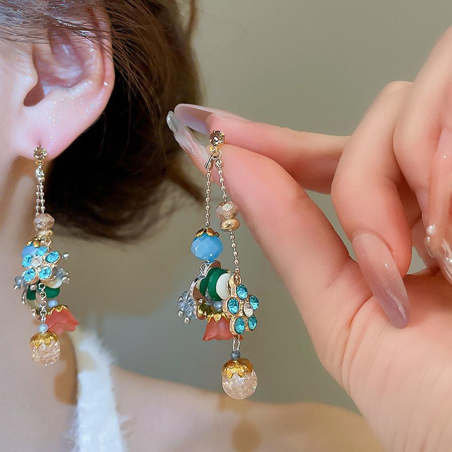 Compra Pendientes de Borla de Gota de Agua con Flor de Cristal Diamante con Aguja de Plata, Pendientes de Estilo Étnico Retro, Lujo Accesible, Pendientes Exquisitos de Alta Gama al por mayor en Joom.pro