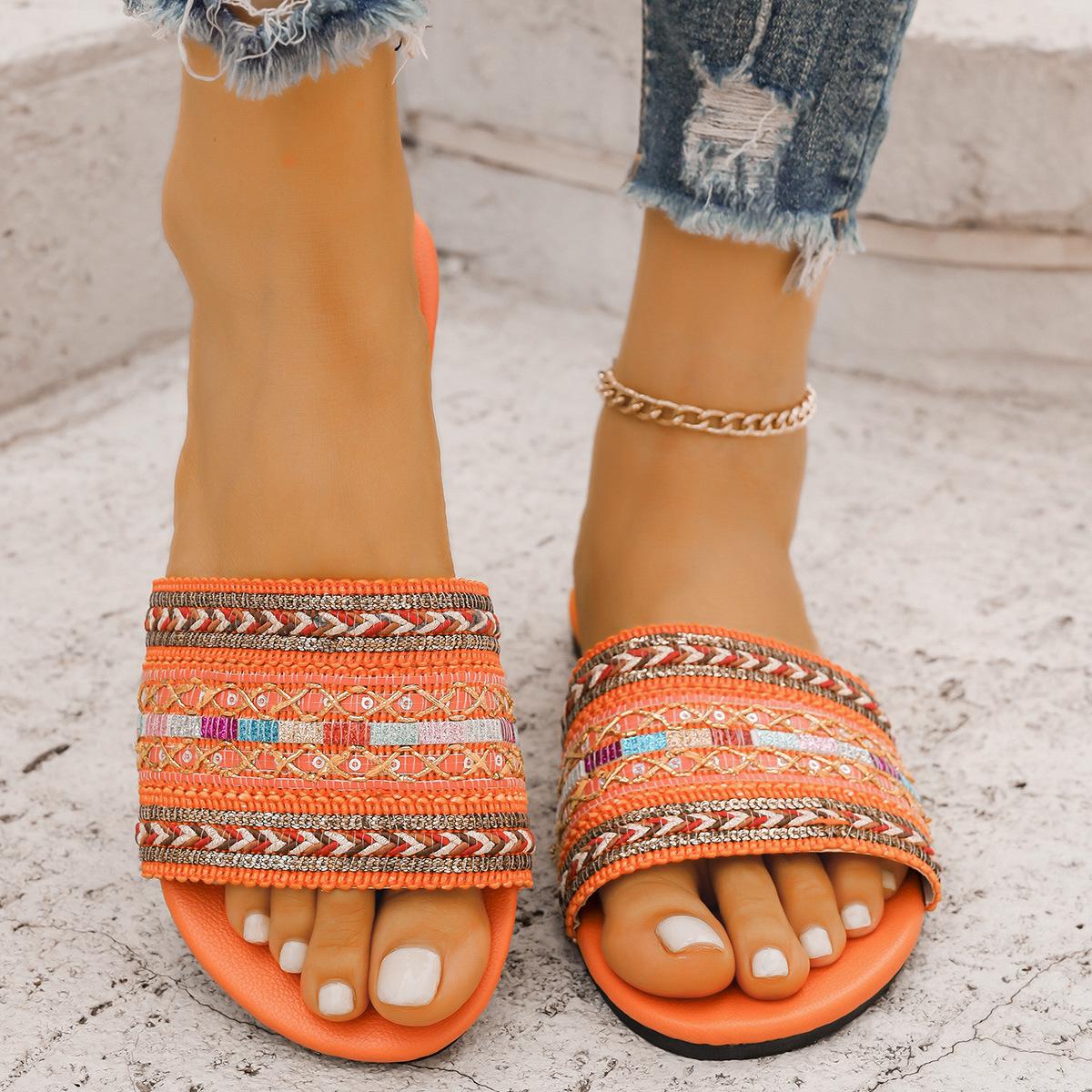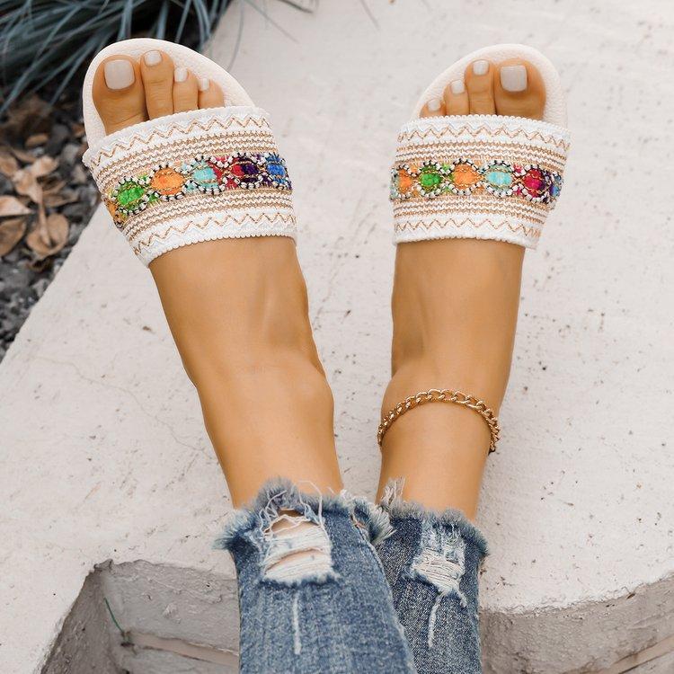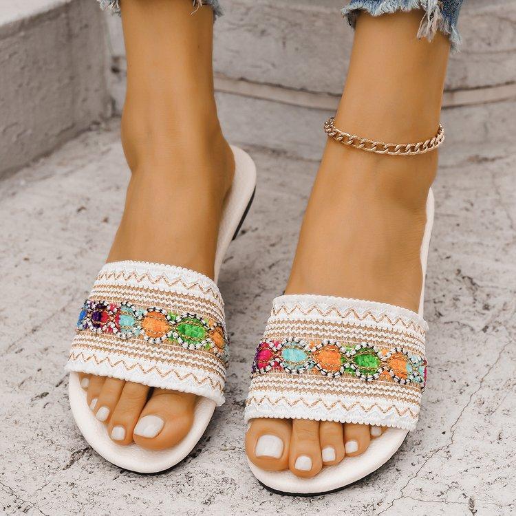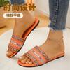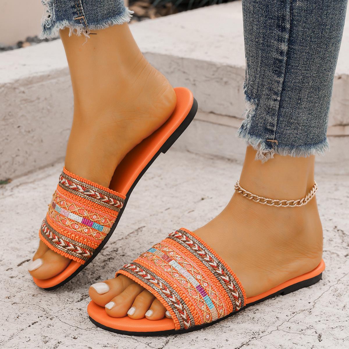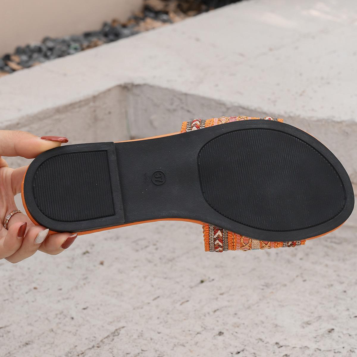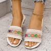 Pantuflas planas de estilo étnico de comercio exterior para mujer, moda, talla grande, transpirables, estilo bohemio, de una tira, para meter el pie, con puntera abierta