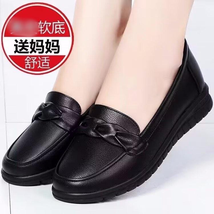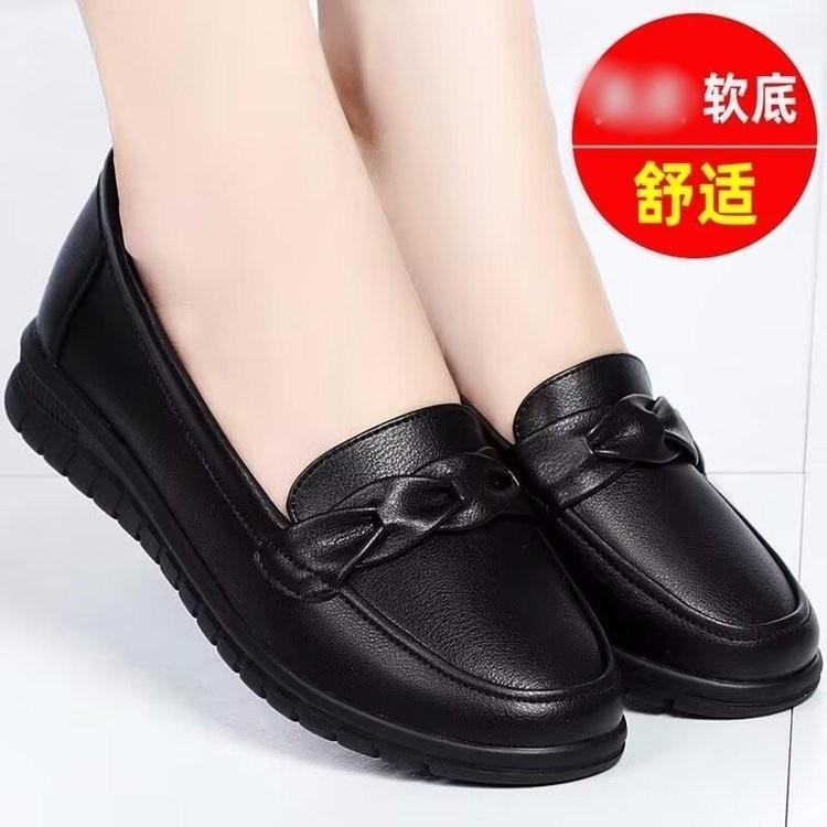 Zapatos de Cuero Suave Antideslizantes para Mediana Edad y Ancianos 2025 Otoño Nuevos Zapatos Individuales de Cuero Cómodos de Suela Plana Talla Grande Zapatos Casuales para Mamá