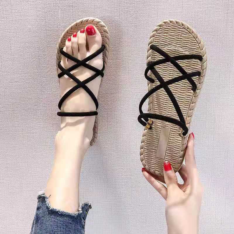 Zapatillas versátiles de red para mujer 2025 verano nuevas sandalias mujer estilo hada suela plana para exterior playa sandalias junto al mar