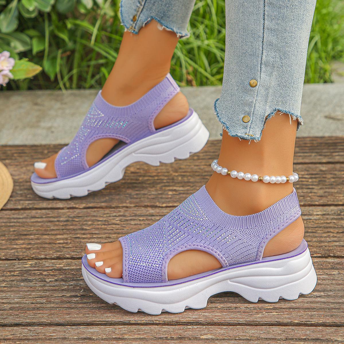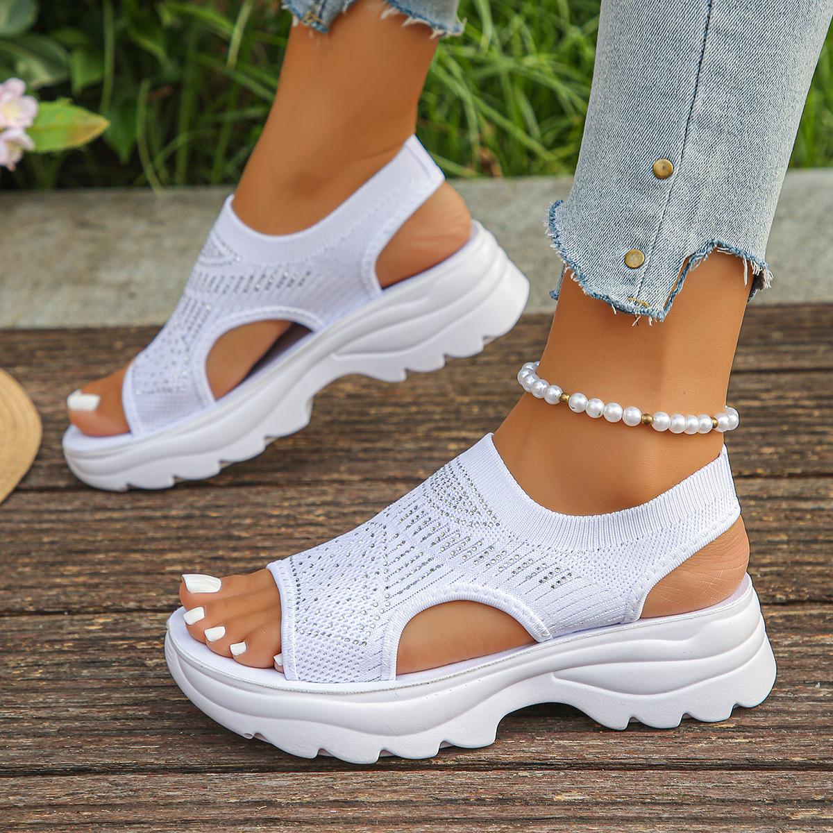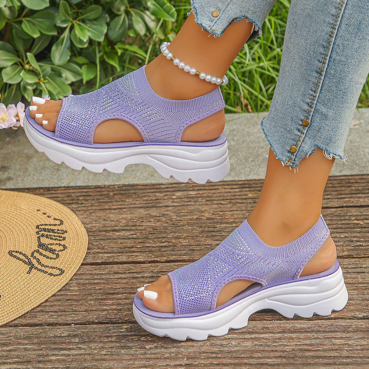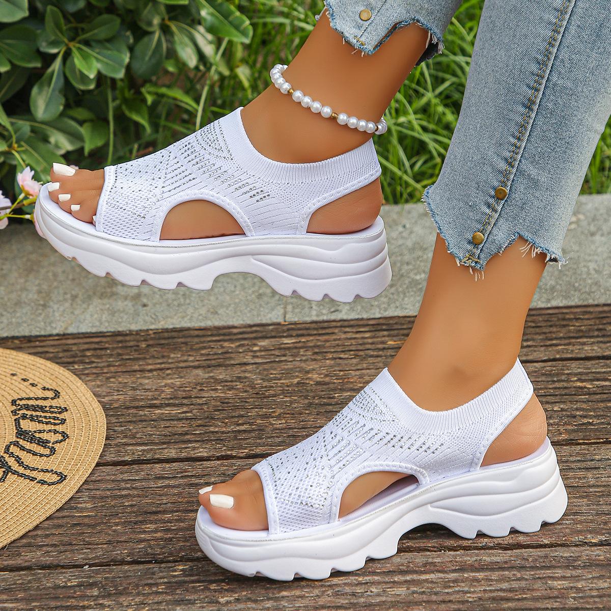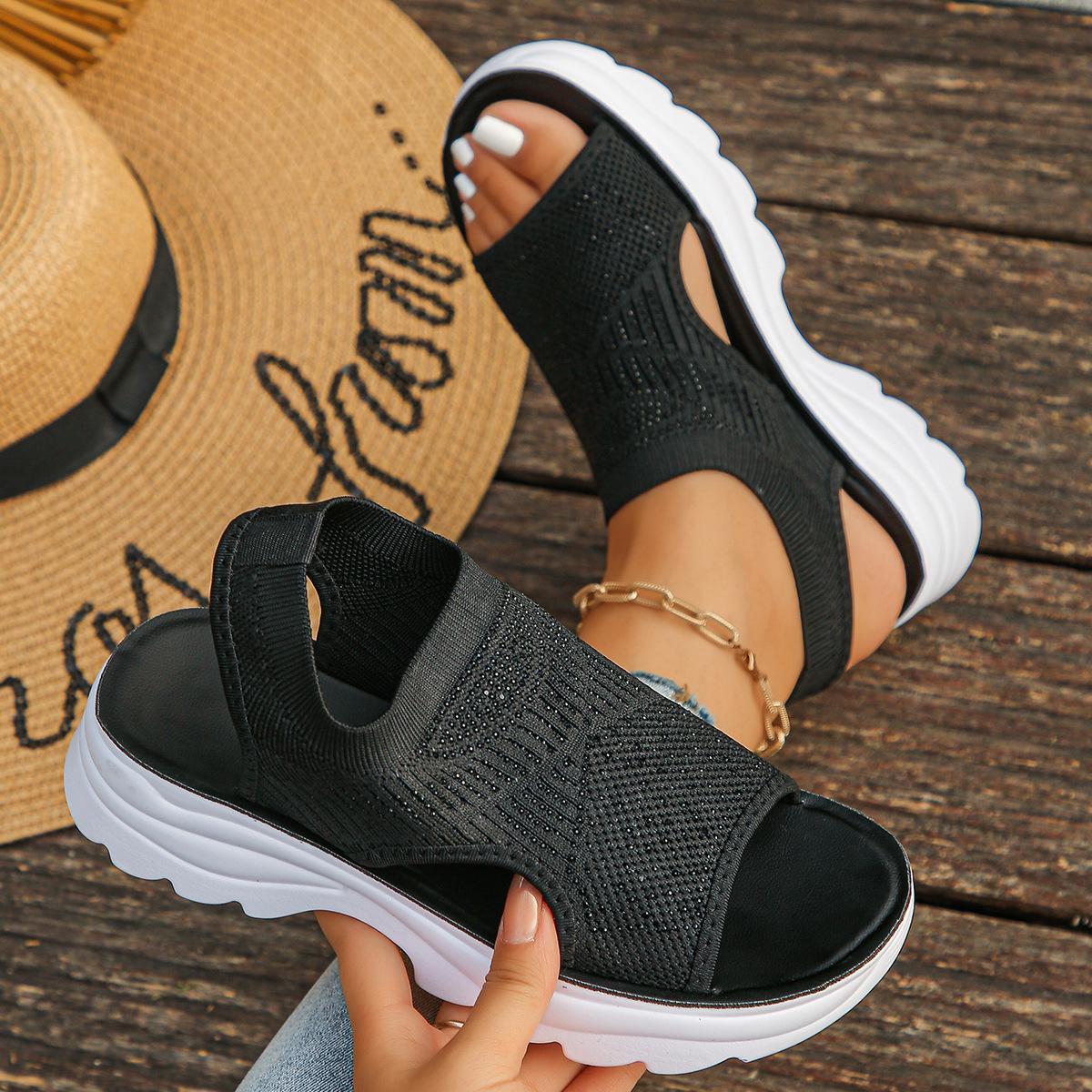 Compra 2025 Verano Nuevo Transfronterizo Europeo y Americano Comercio Exterior Talla Grande Tejido Elástico Sandalias Slip-on Suela Gruesa Sandalias Casuales de Mujer al por mayor en Joom.pro