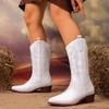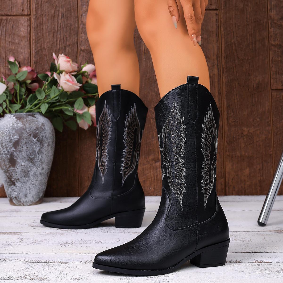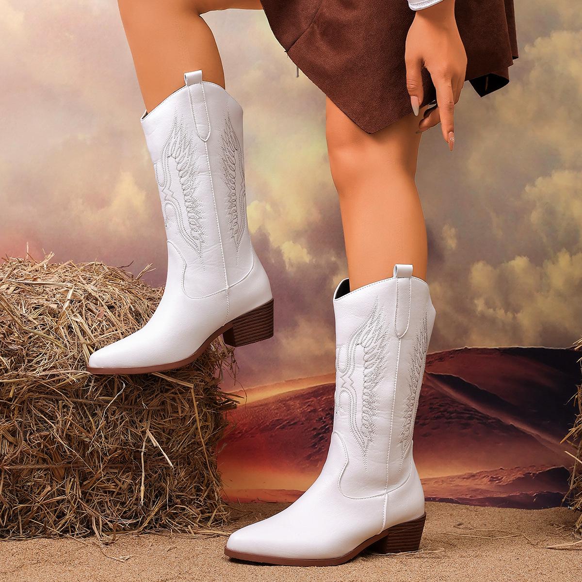 Botas vaqueras de tacón alto estilo otoño transfronterizo de comercio exterior, moda resistente bordado, estilo de mujer