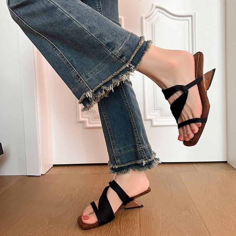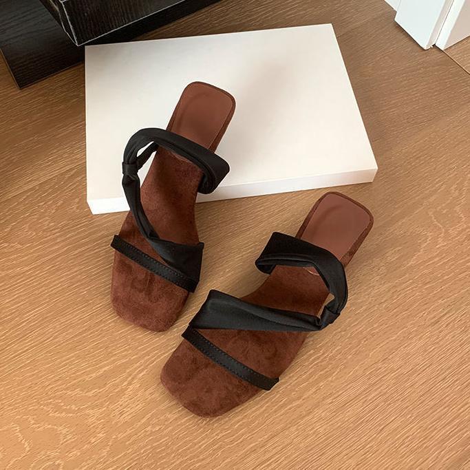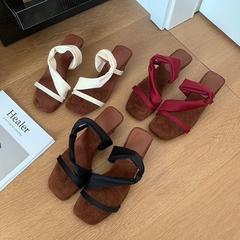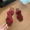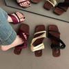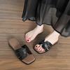Sandalias francesas de punta cuadrada para mujer, adelgazantes, estilo cien, moda, vestido, una palabra, cuña, zapatillas, temperamento, combinación