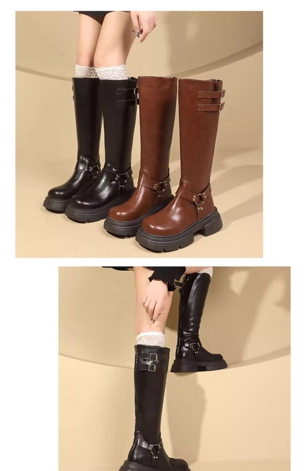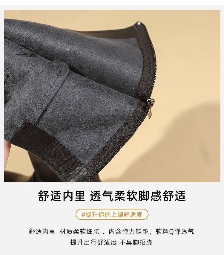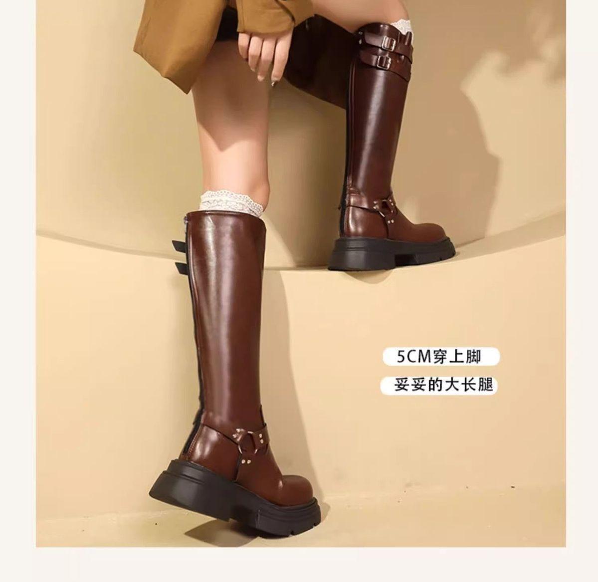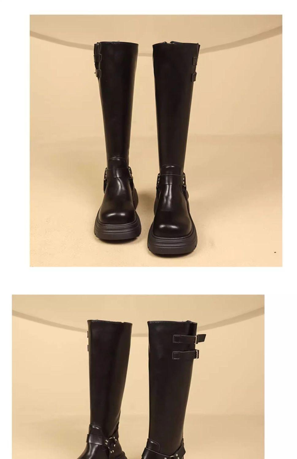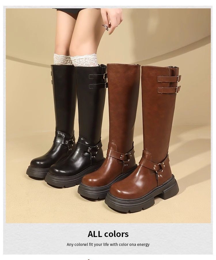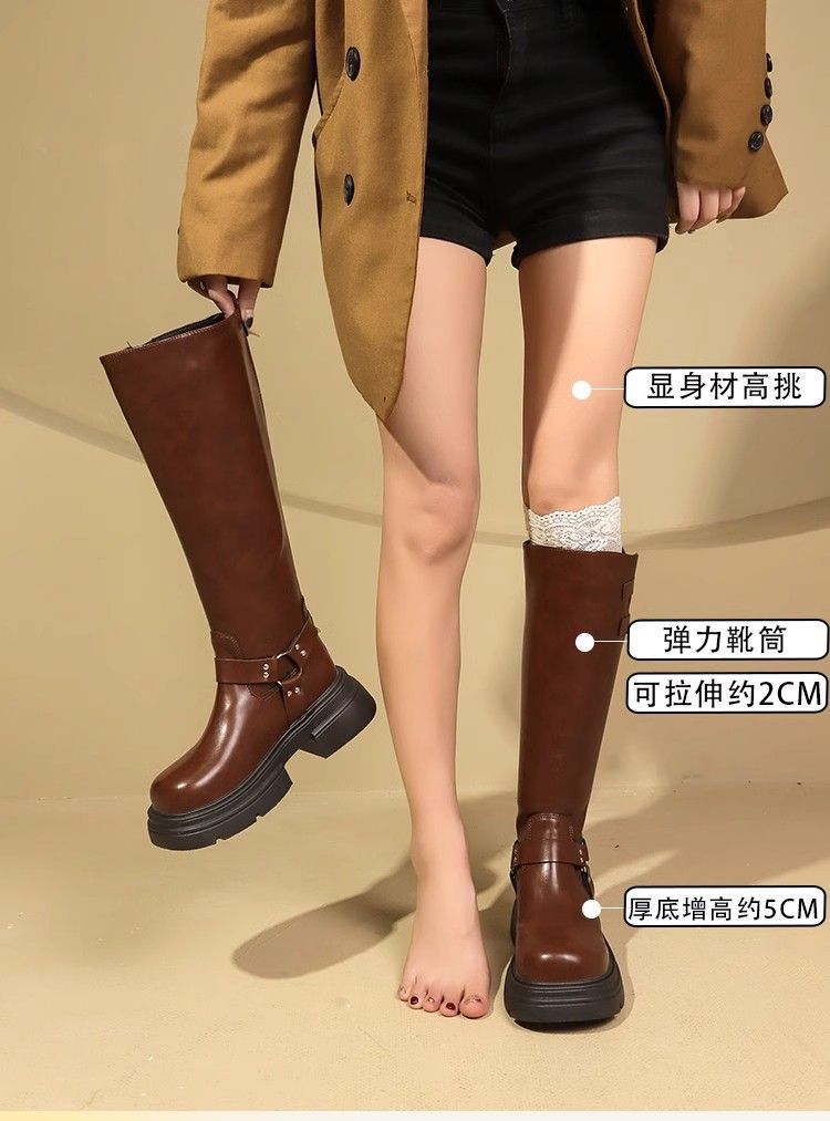 Botas cómodas estilo coreano con cremallera trasera para mujer 2024 Otoño e Invierno Moda popular Retro Botas altas Suela gruesa Aumento de altura Botas de caballero