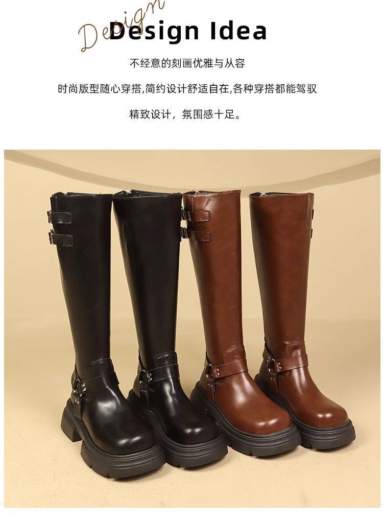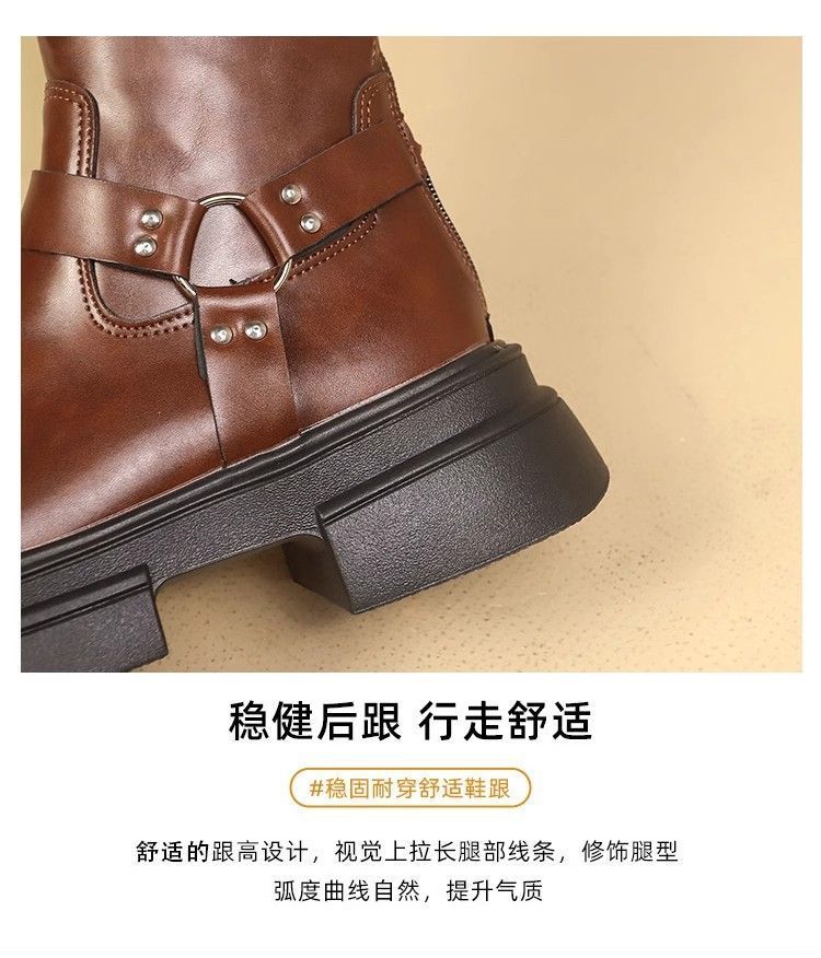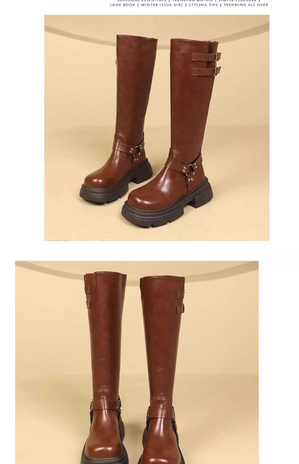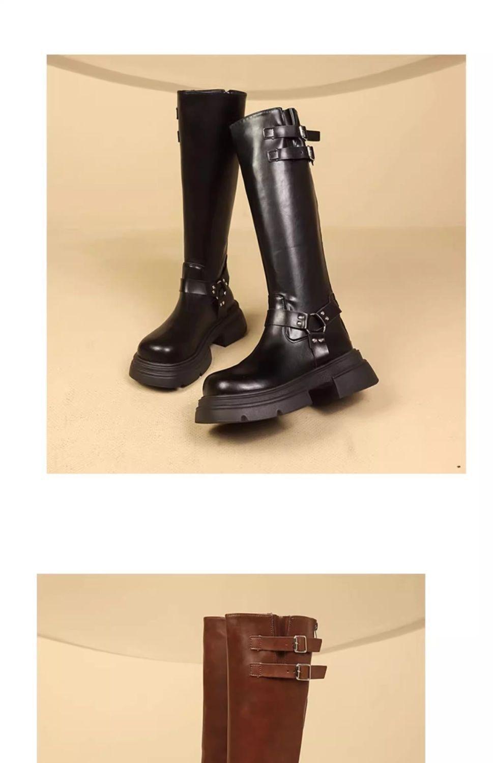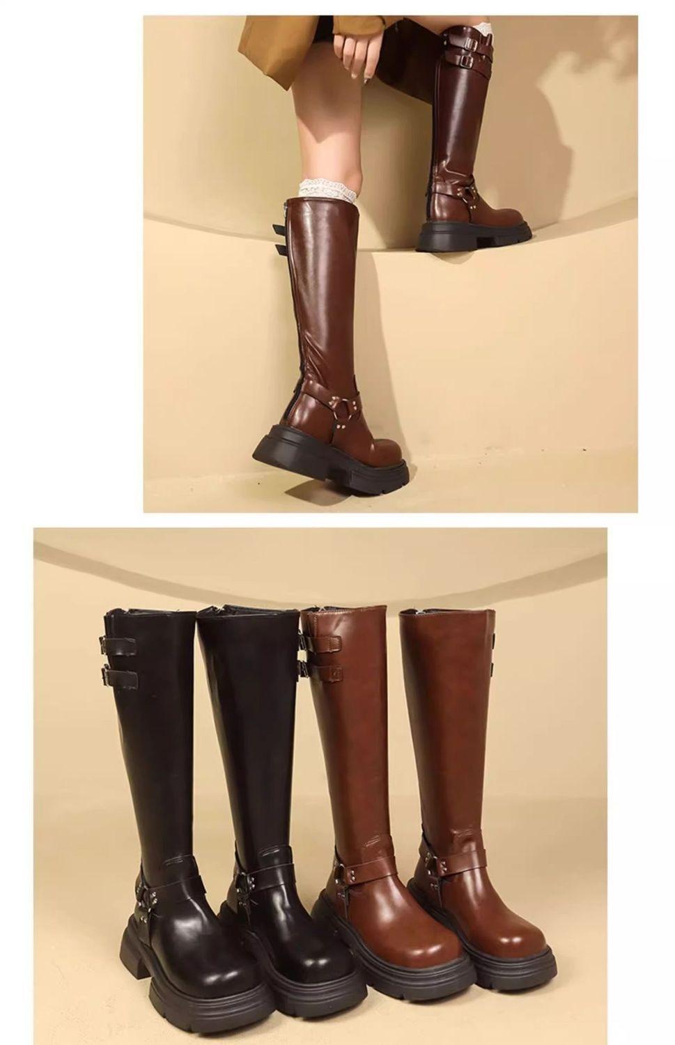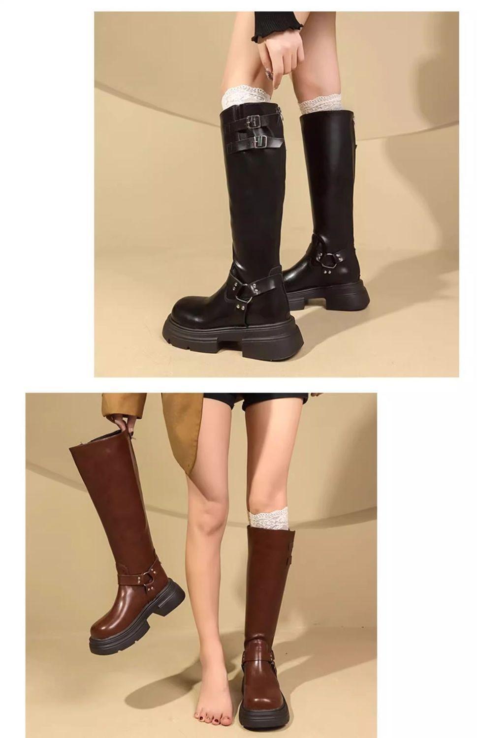 Botas cómodas estilo coreano con cremallera trasera para mujer 2024 Otoño e Invierno Moda popular Retro Botas altas Suela gruesa Aumento de altura Botas de caballero