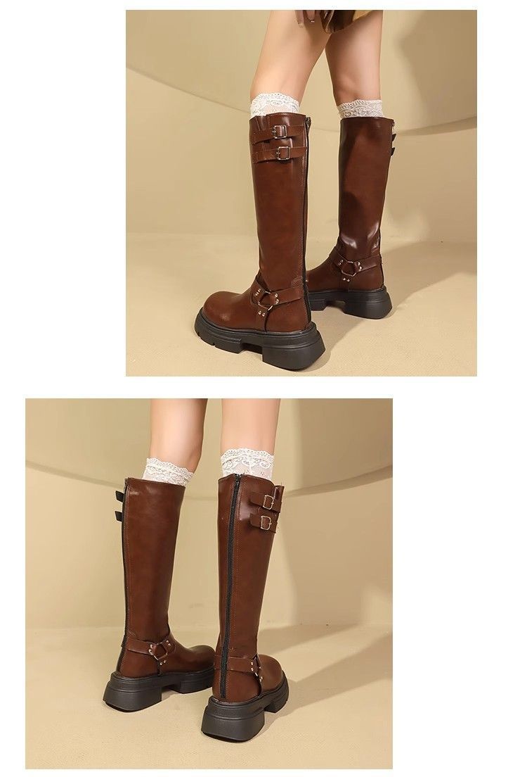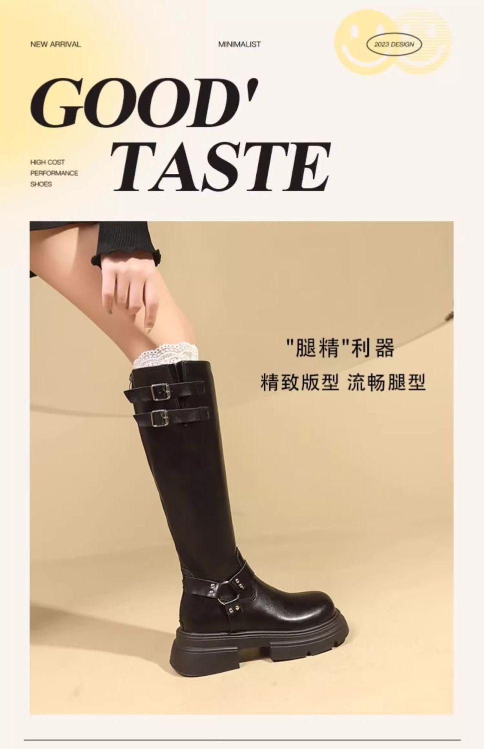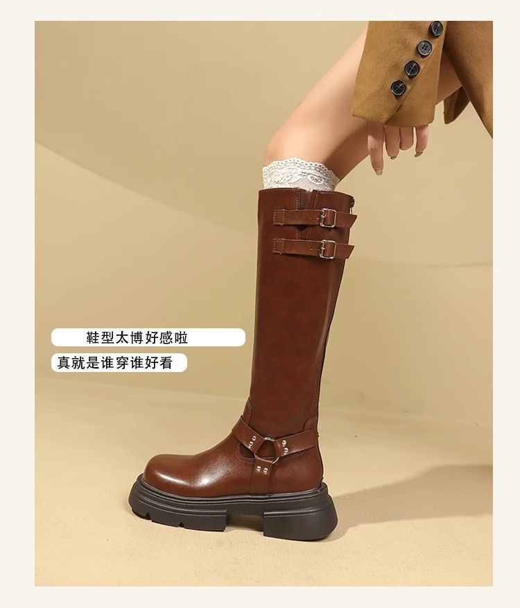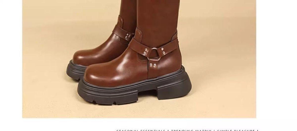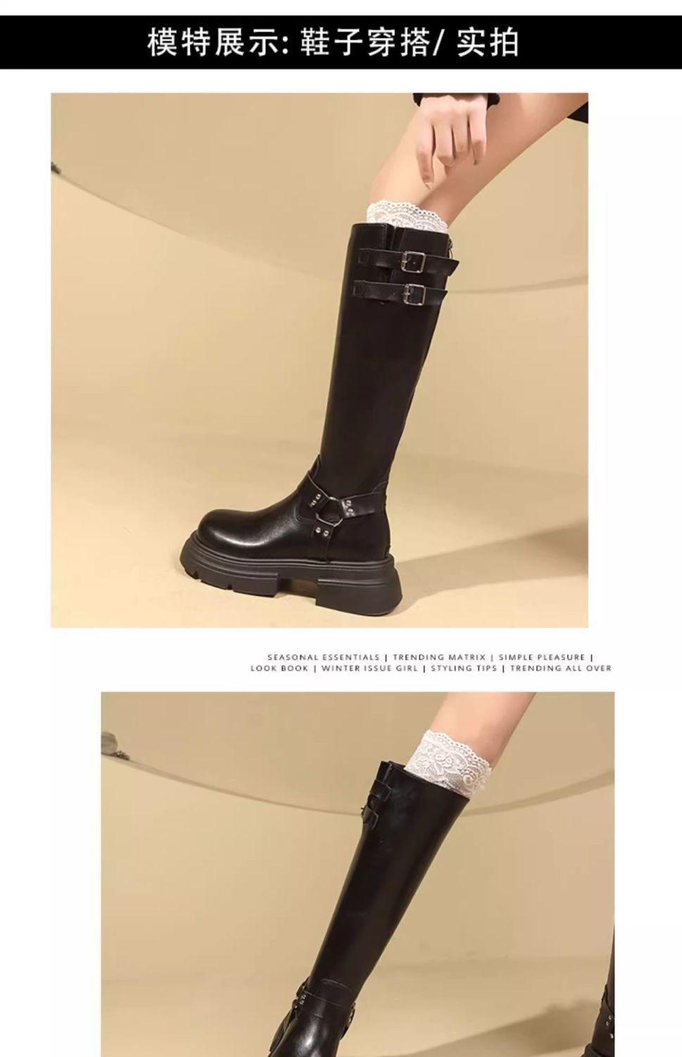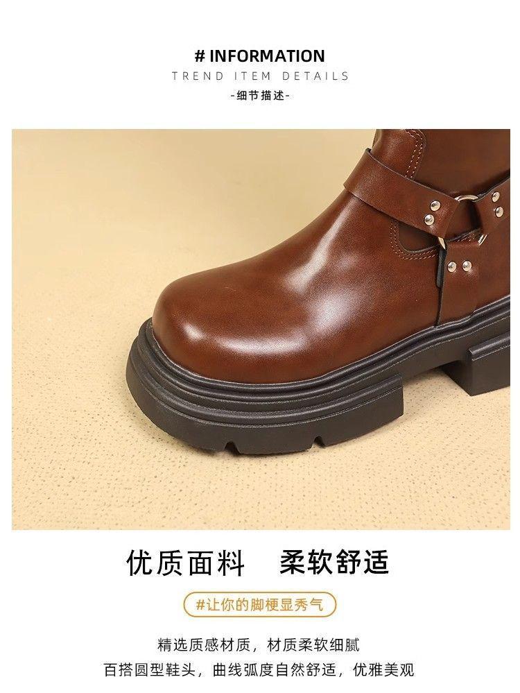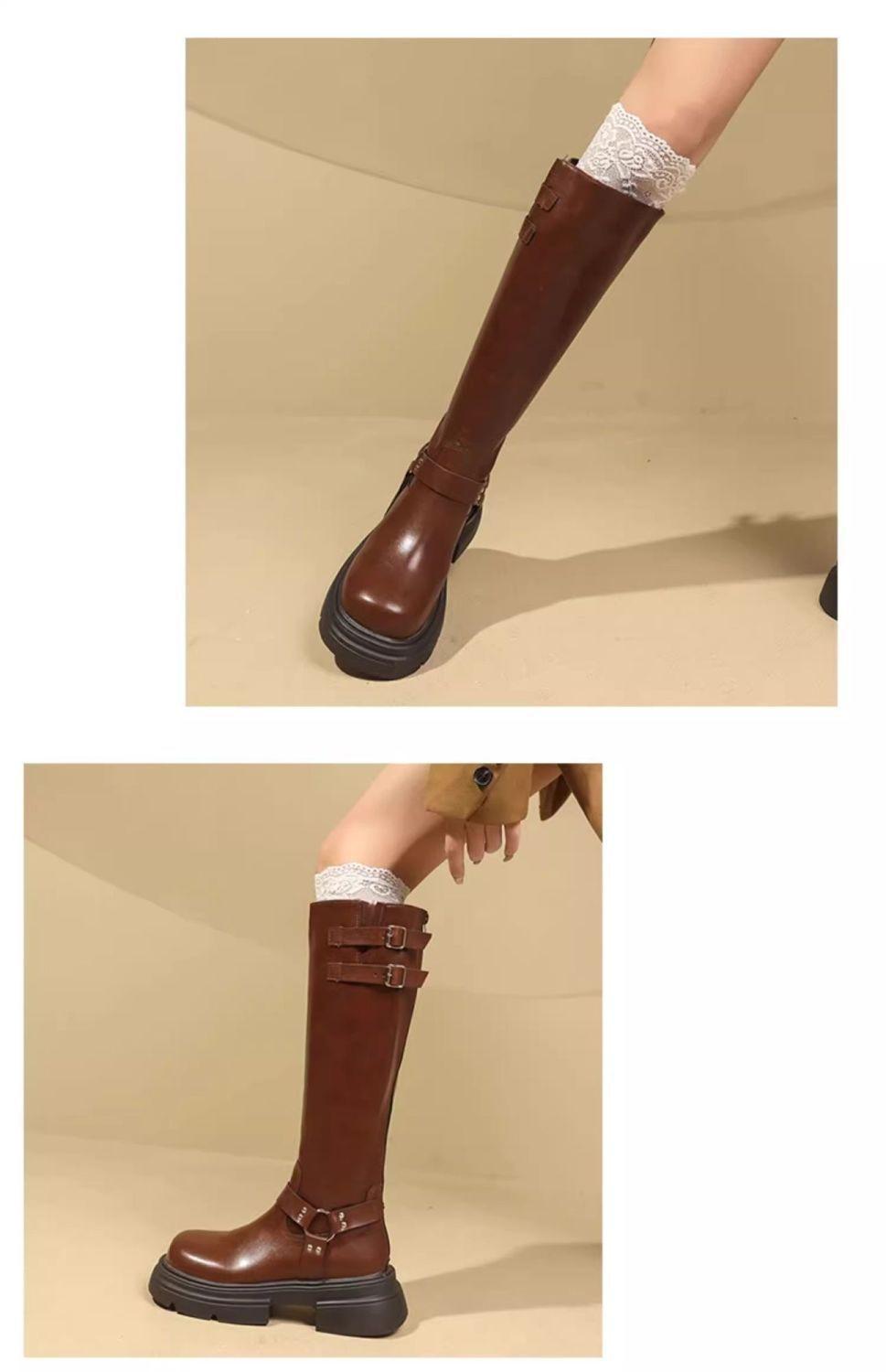 Botas cómodas estilo coreano con cremallera trasera para mujer 2024 Otoño e Invierno Moda popular Retro Botas altas Suela gruesa Aumento de altura Botas de caballero