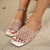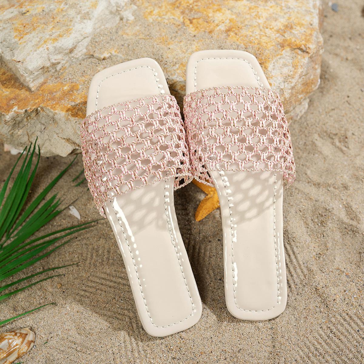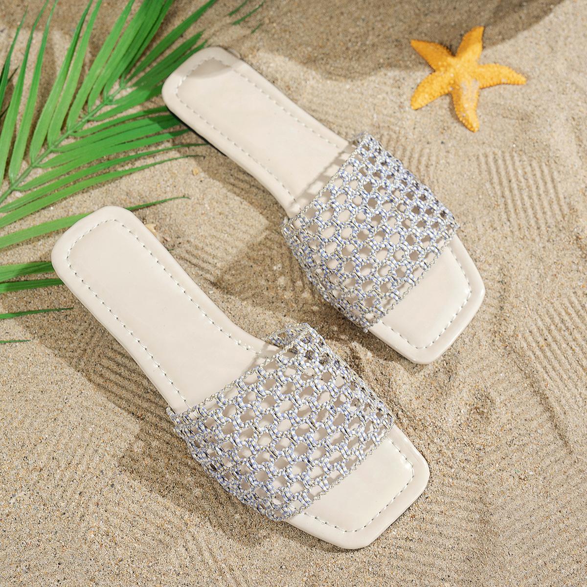 Nuevas Sandalias de Verano Transfronterizas de Comercio Exterior Planas de Malla Caladas con Bloques de Color de Punta Redonda sin Cordones para Mujer Talla Grande