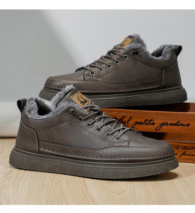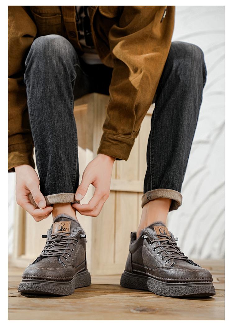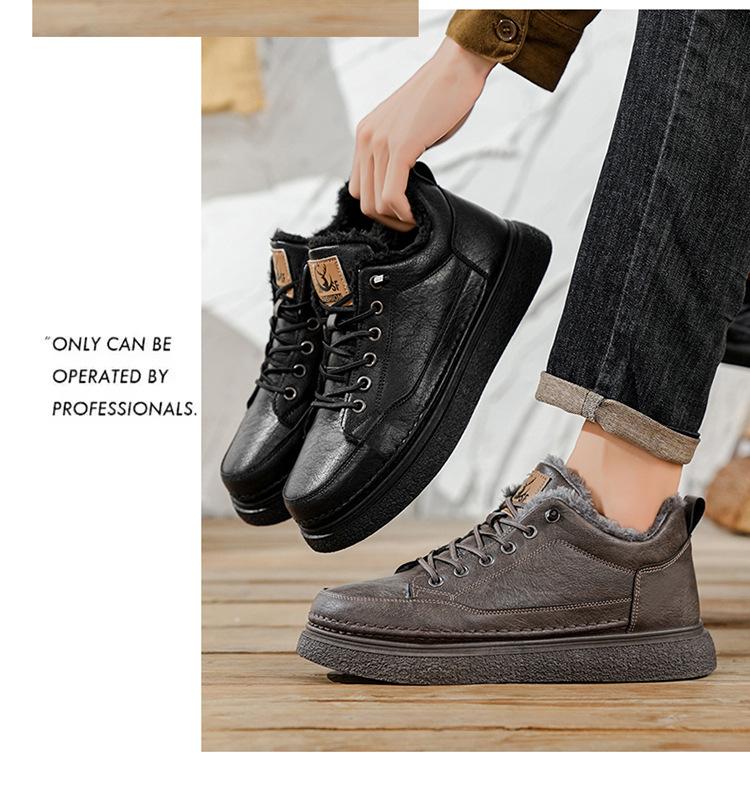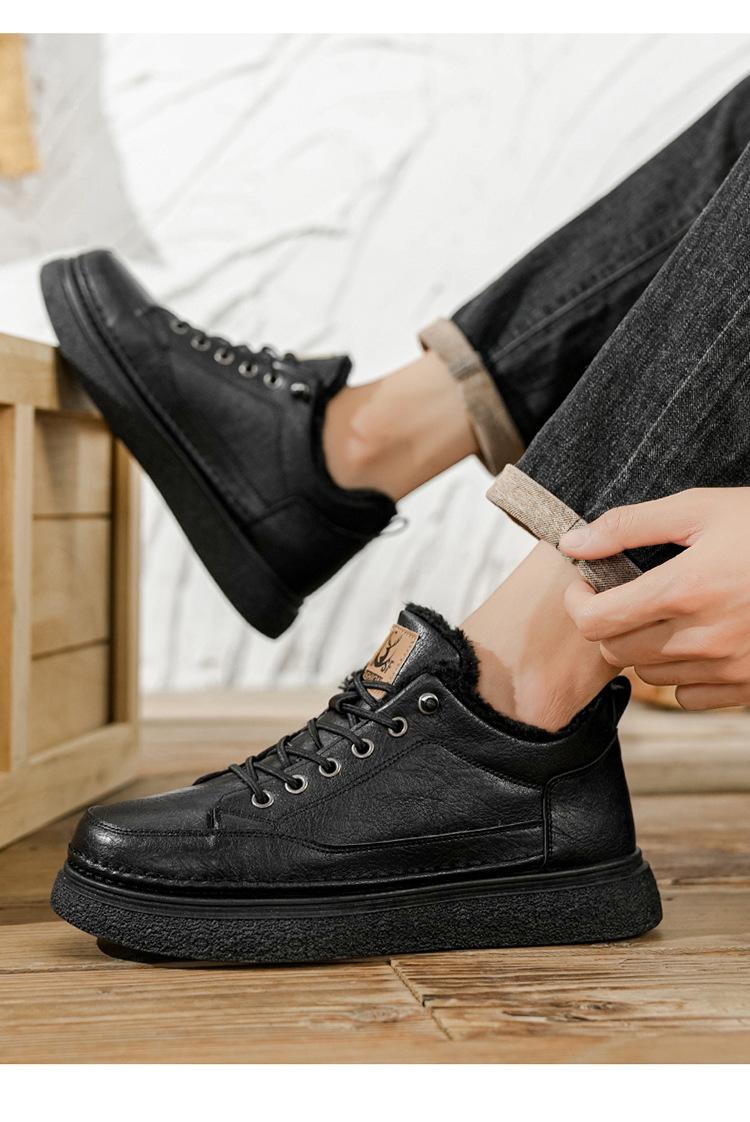Botas Martin de Invierno con Forro Polar para Hombre Impermeables Antideslizantes Botines Modernos Versátiles Engrosados Cálidos Zapatos de Algodón Zapatos de Cuero Negros Botines