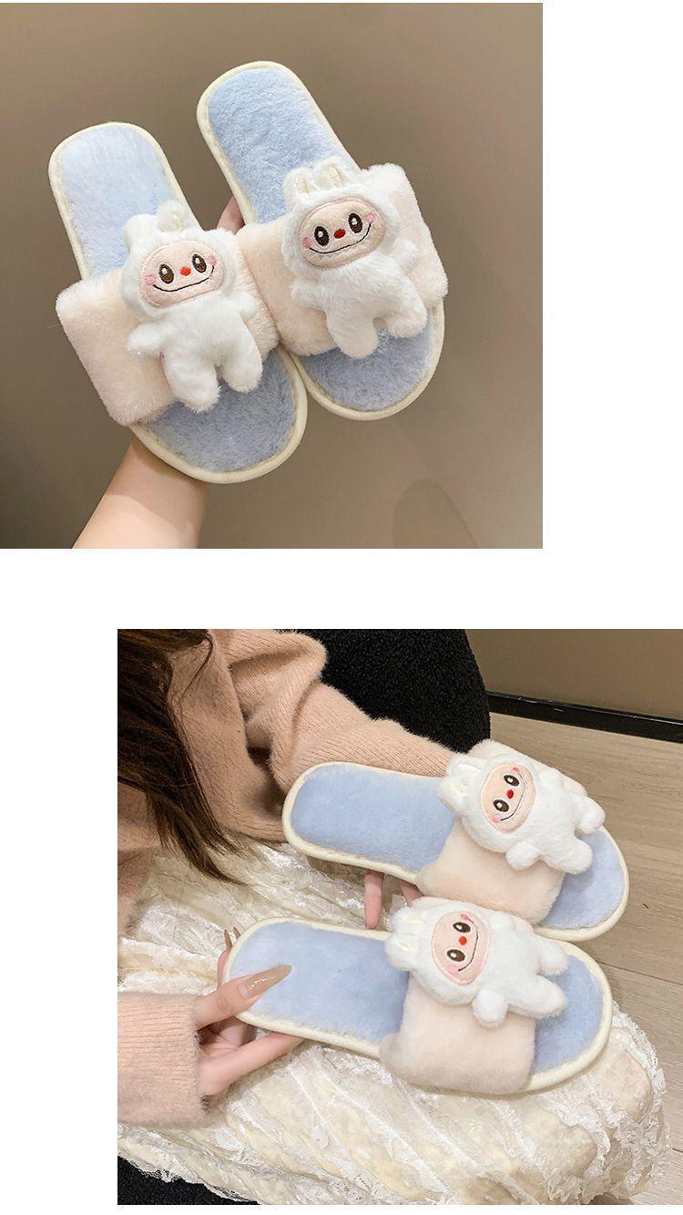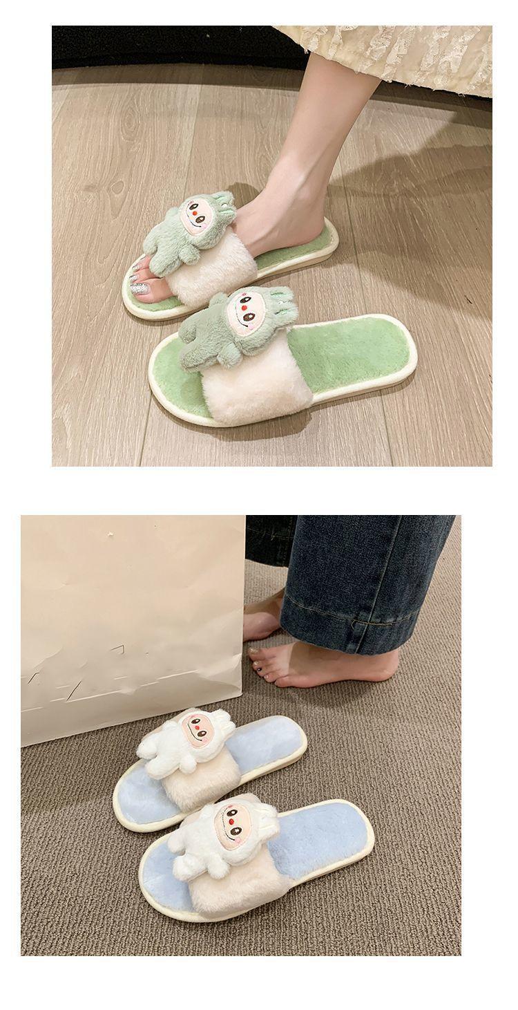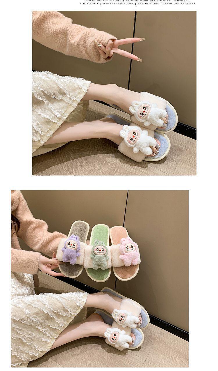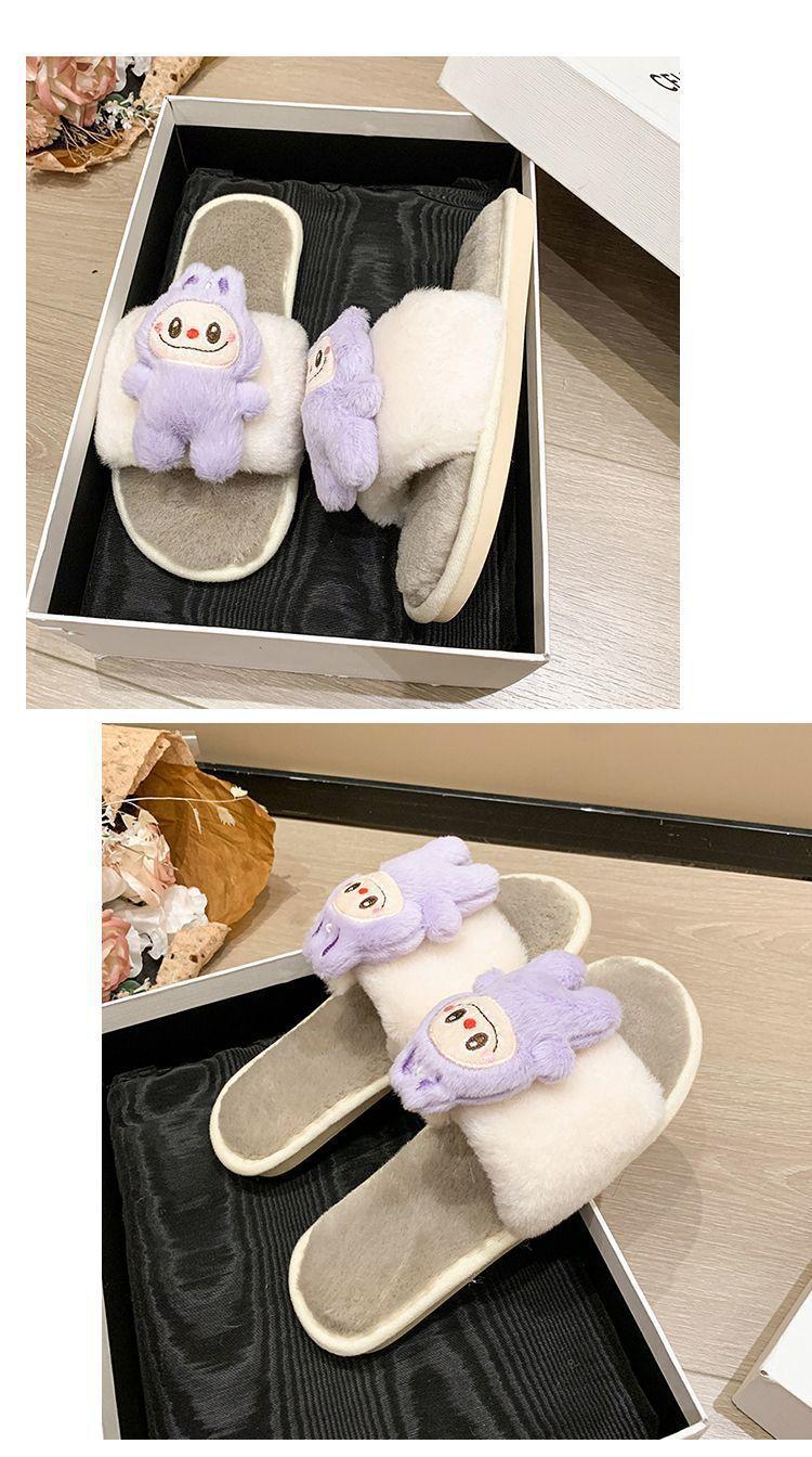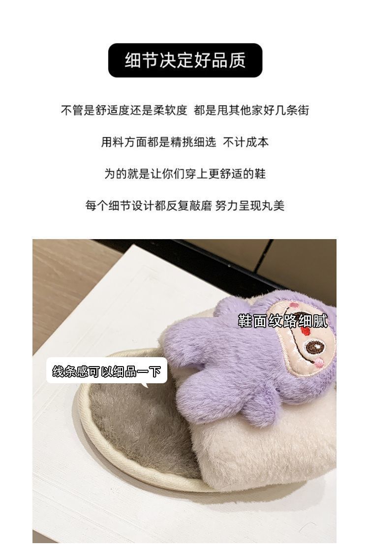 Pantuflas planas antideslizantes cálidas de algodón con una tira, estilo popular de celebridad de internet, pantuflas peludas lindas de dibujos animados para mujer, nuevo otoño/invierno 2025