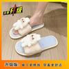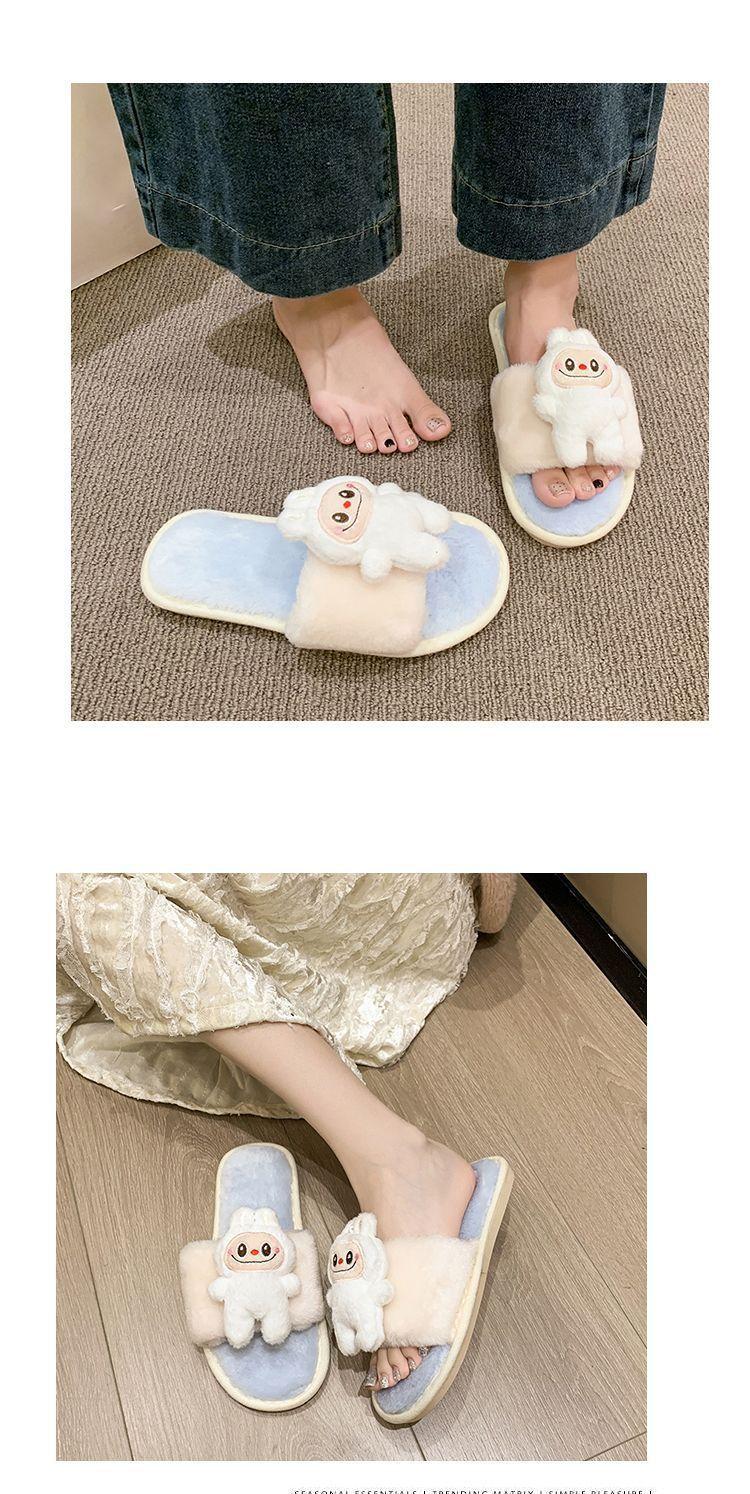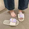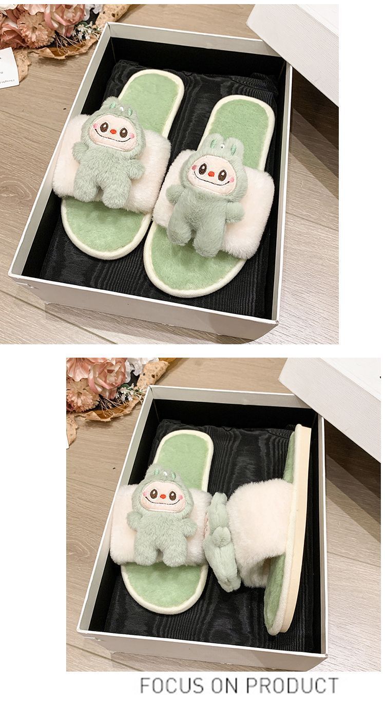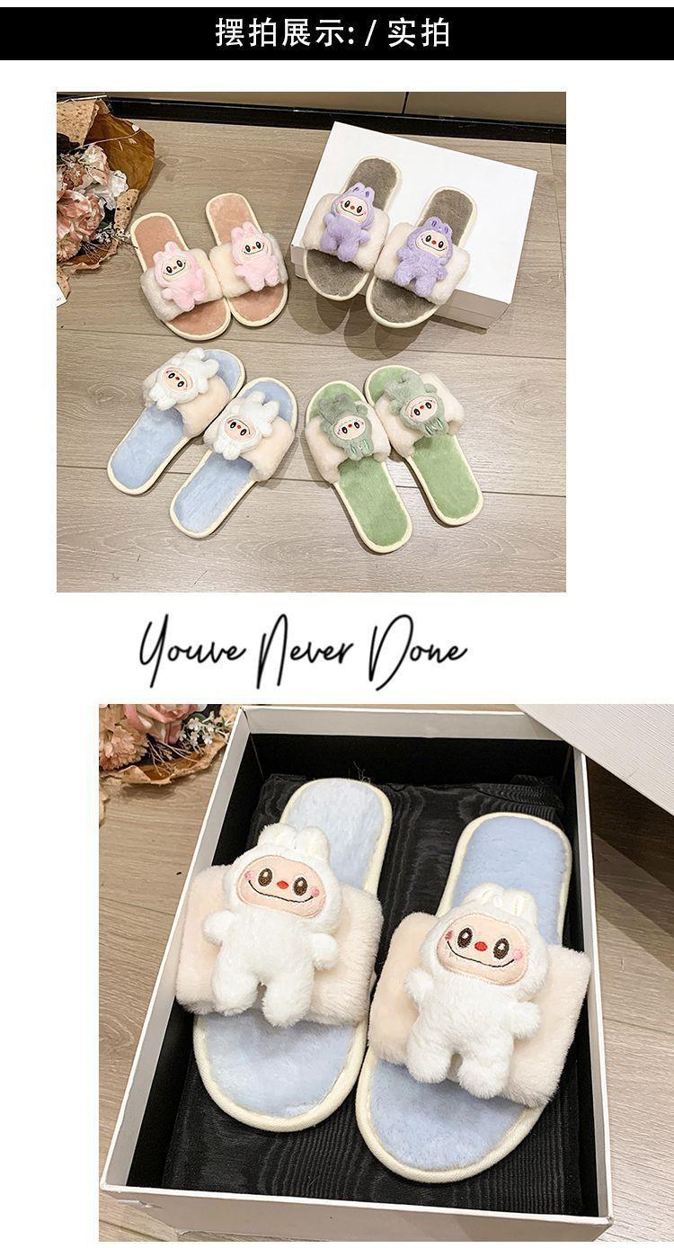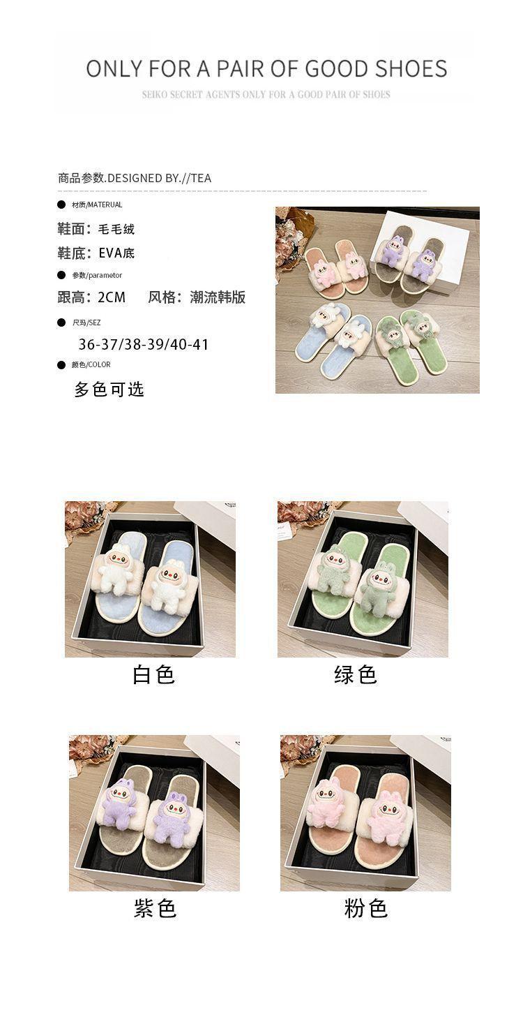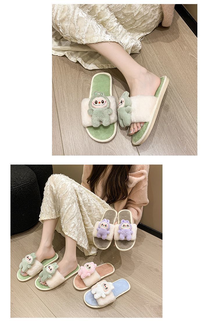 Pantuflas planas antideslizantes cálidas de algodón con una tira, estilo popular de celebridad de internet, pantuflas peludas lindas de dibujos animados para mujer, nuevo otoño/invierno 2025